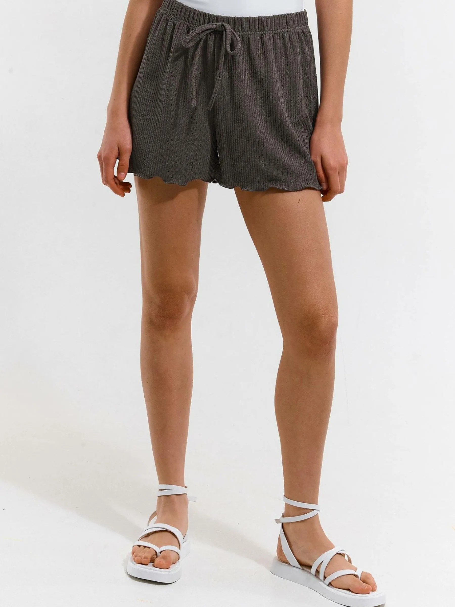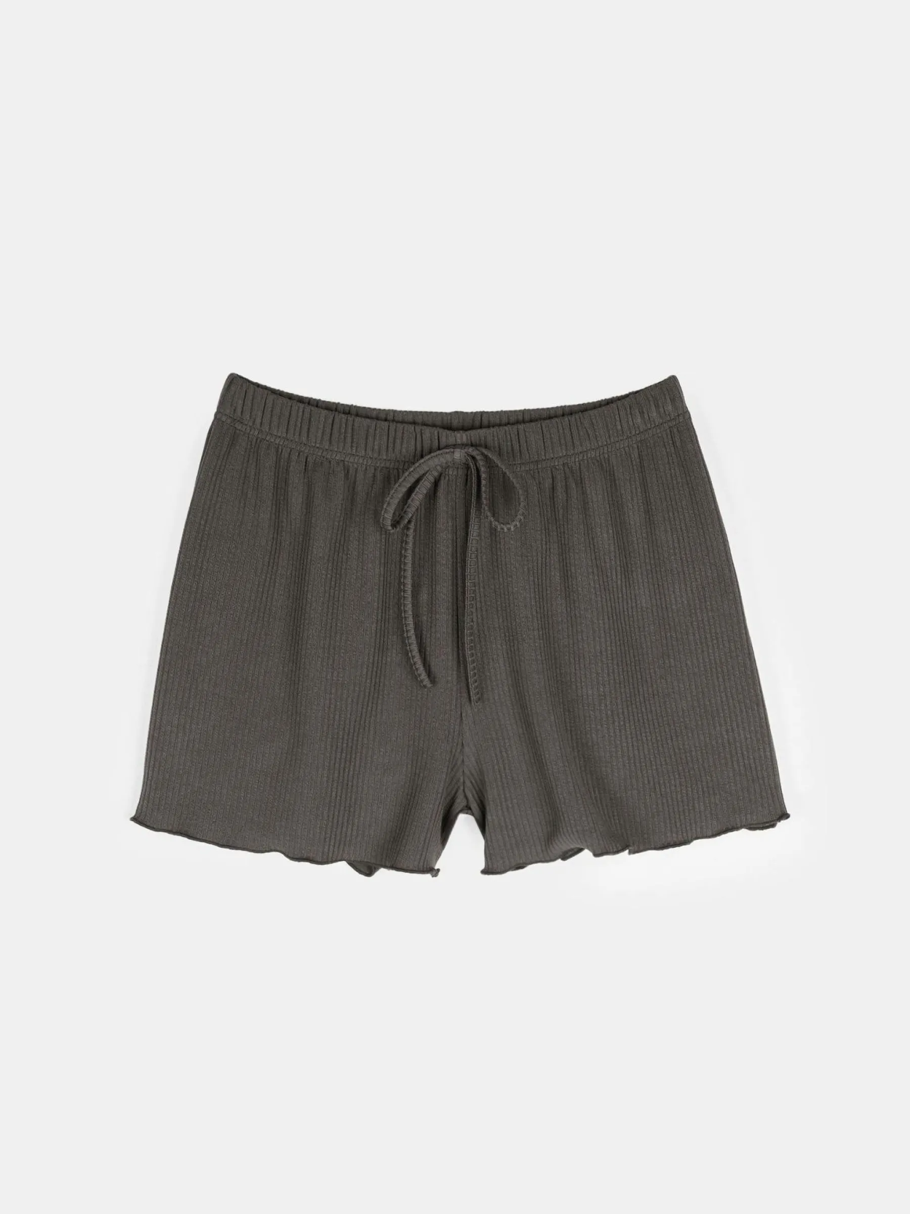 Kolor: szaryKrój: straightTyp: spodenkiDługość: krótkiPattern style: pojedynczy kolor, żebrowanyDetal: ze sznurowa…