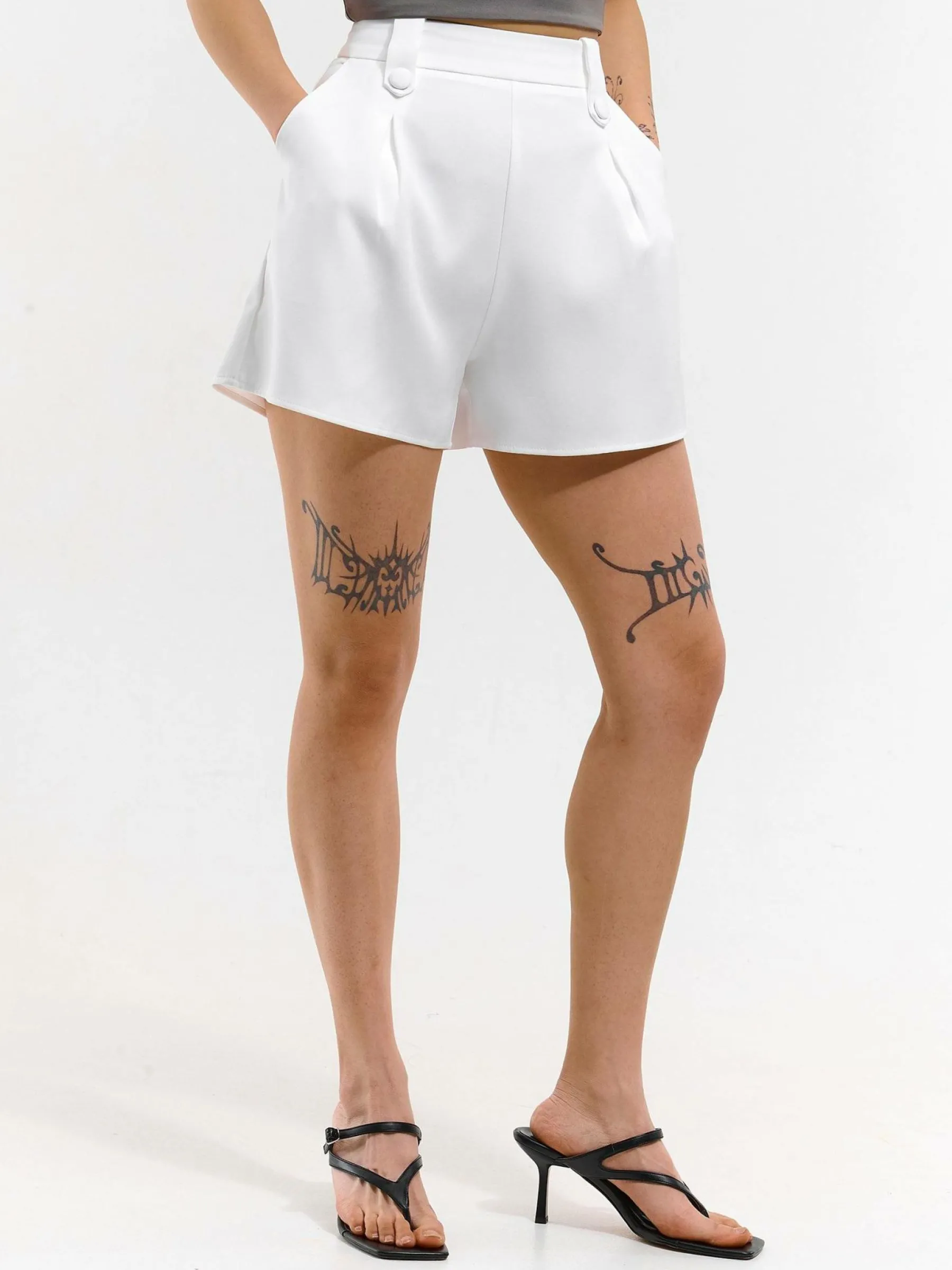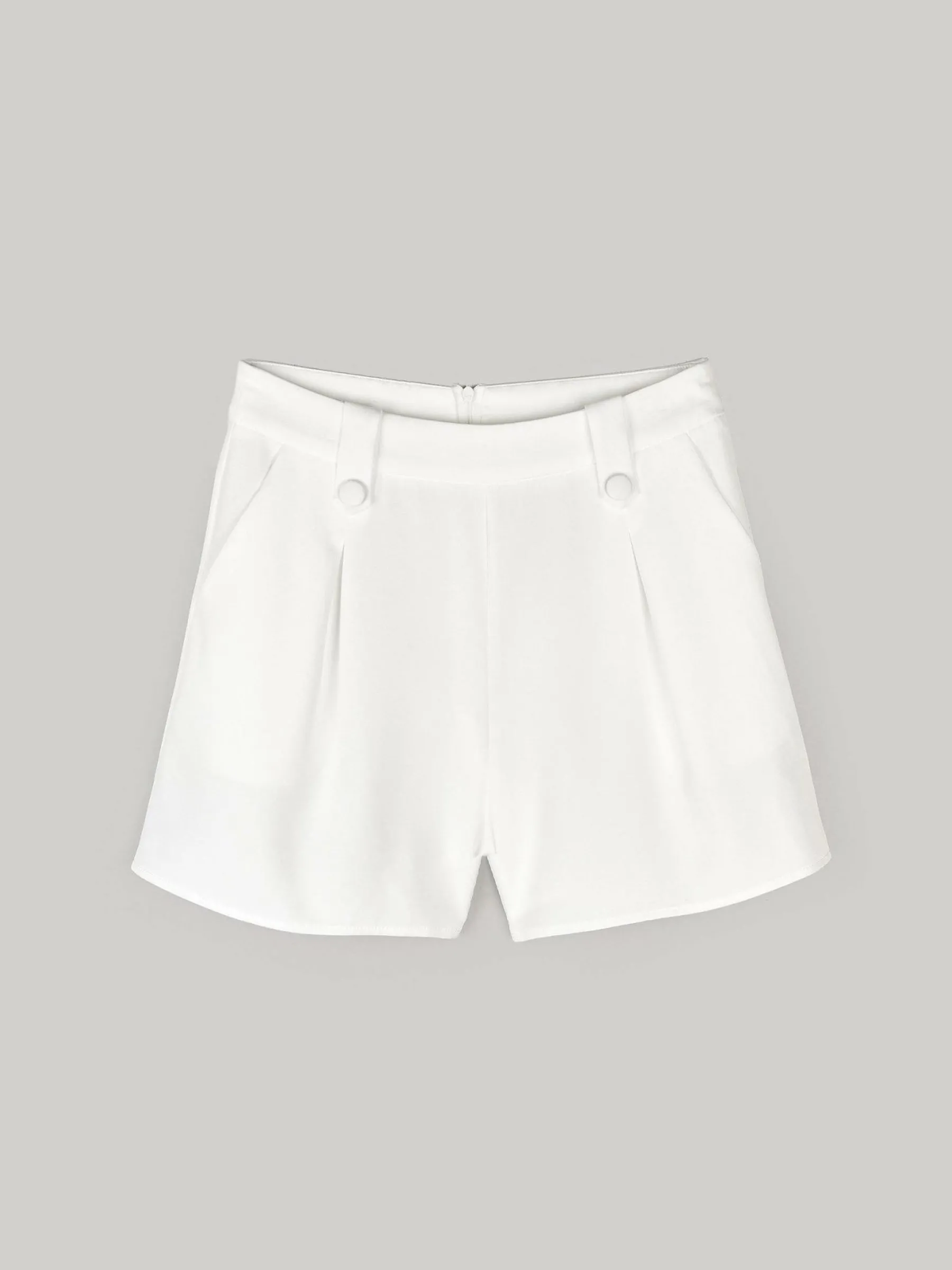 Kolor: białyKrój: straight, z wysokim stanemTyp: spodenkiDługość: krótkiPattern style: pojedynczy kolorDetal: na z…