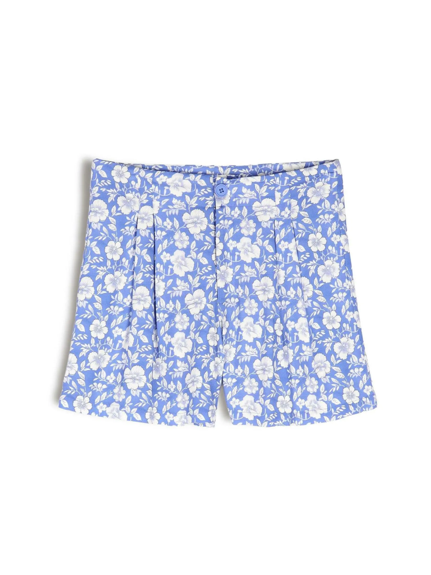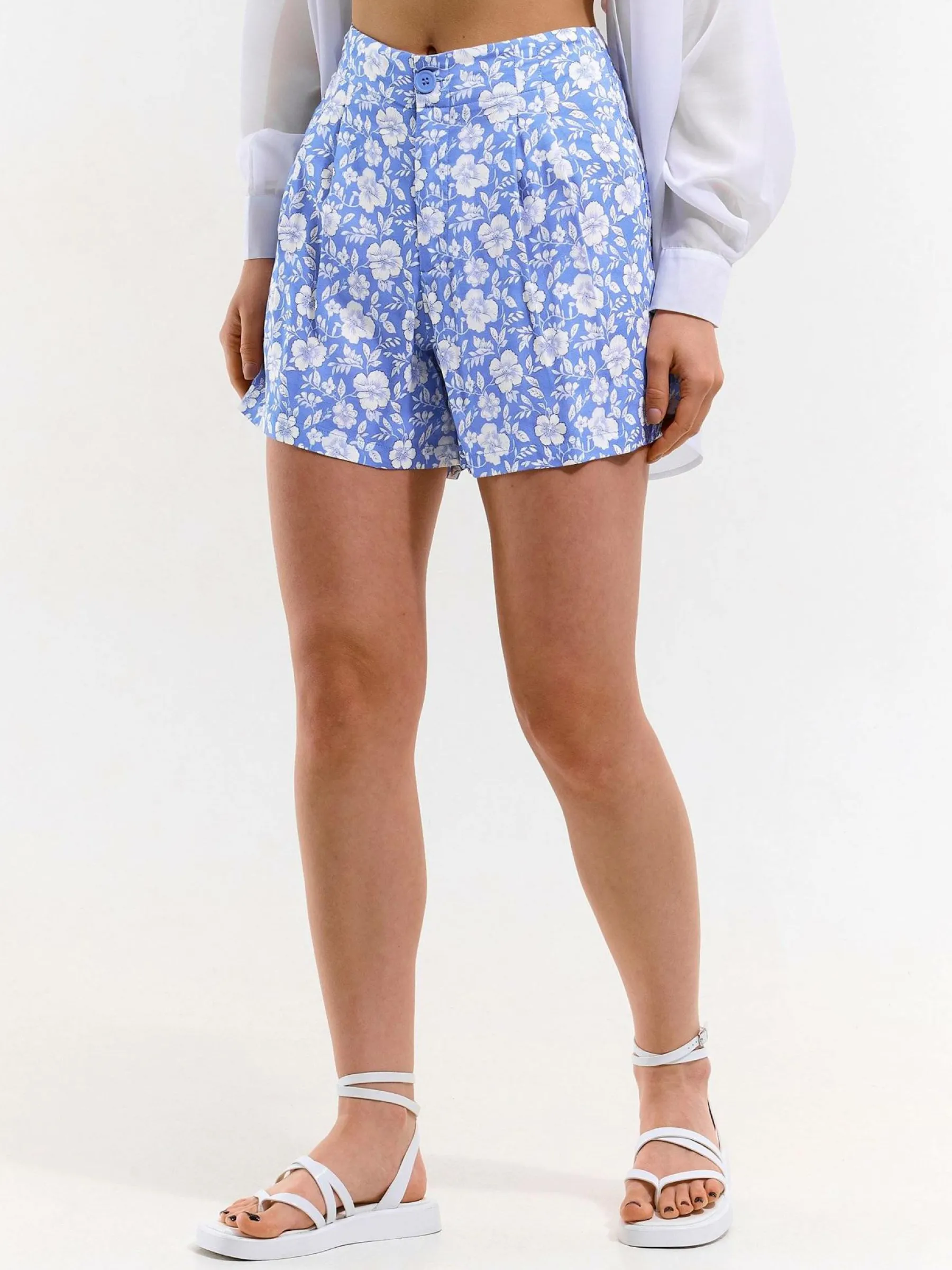 Kolor: niebieskiKrój: z wysokim stanemTyp: spodenkiDługość: krótkiPattern style: kwiatowe, z nadrukiemDetal: na zam…
