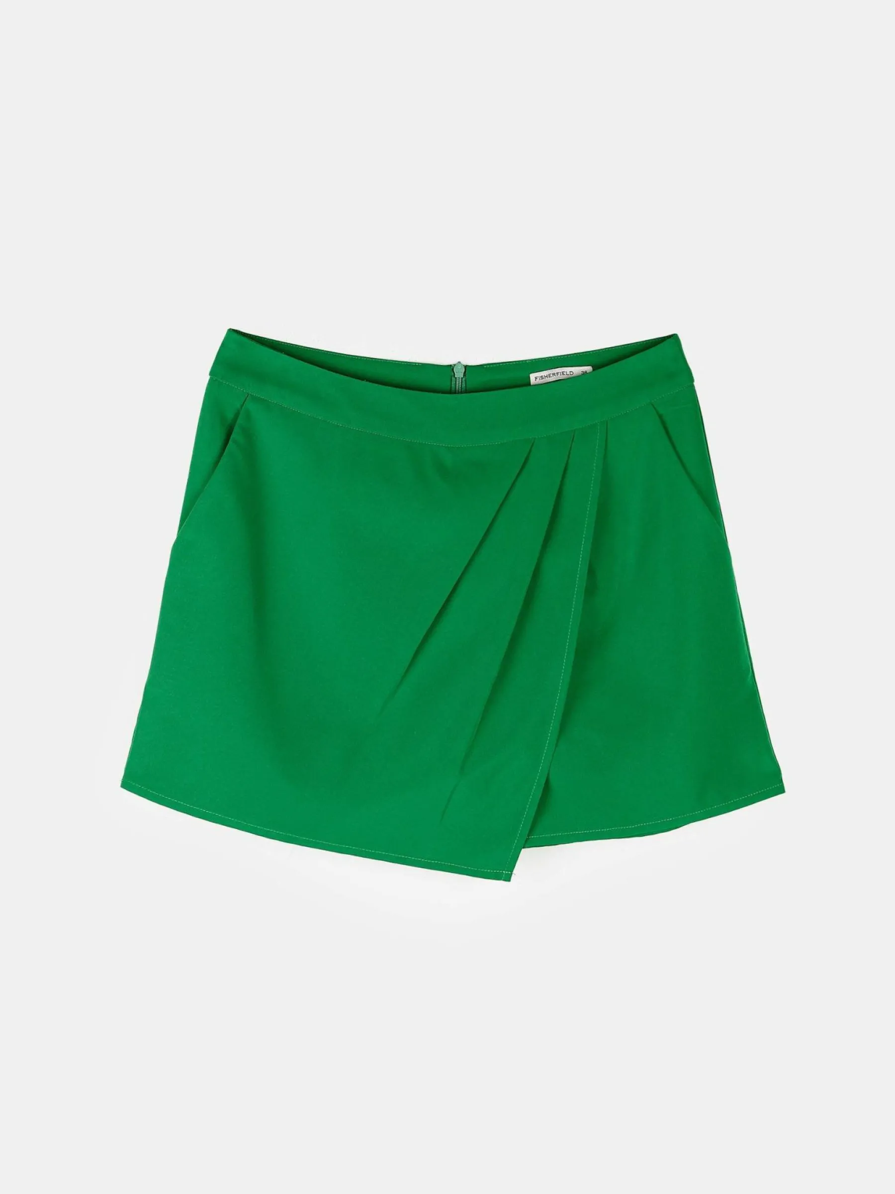 Kolor: zielonyKrój: straightTyp: spodenkiDługość: krótkiPattern style: pojedynczy kolorDetal: na zamekMateriał: sy…