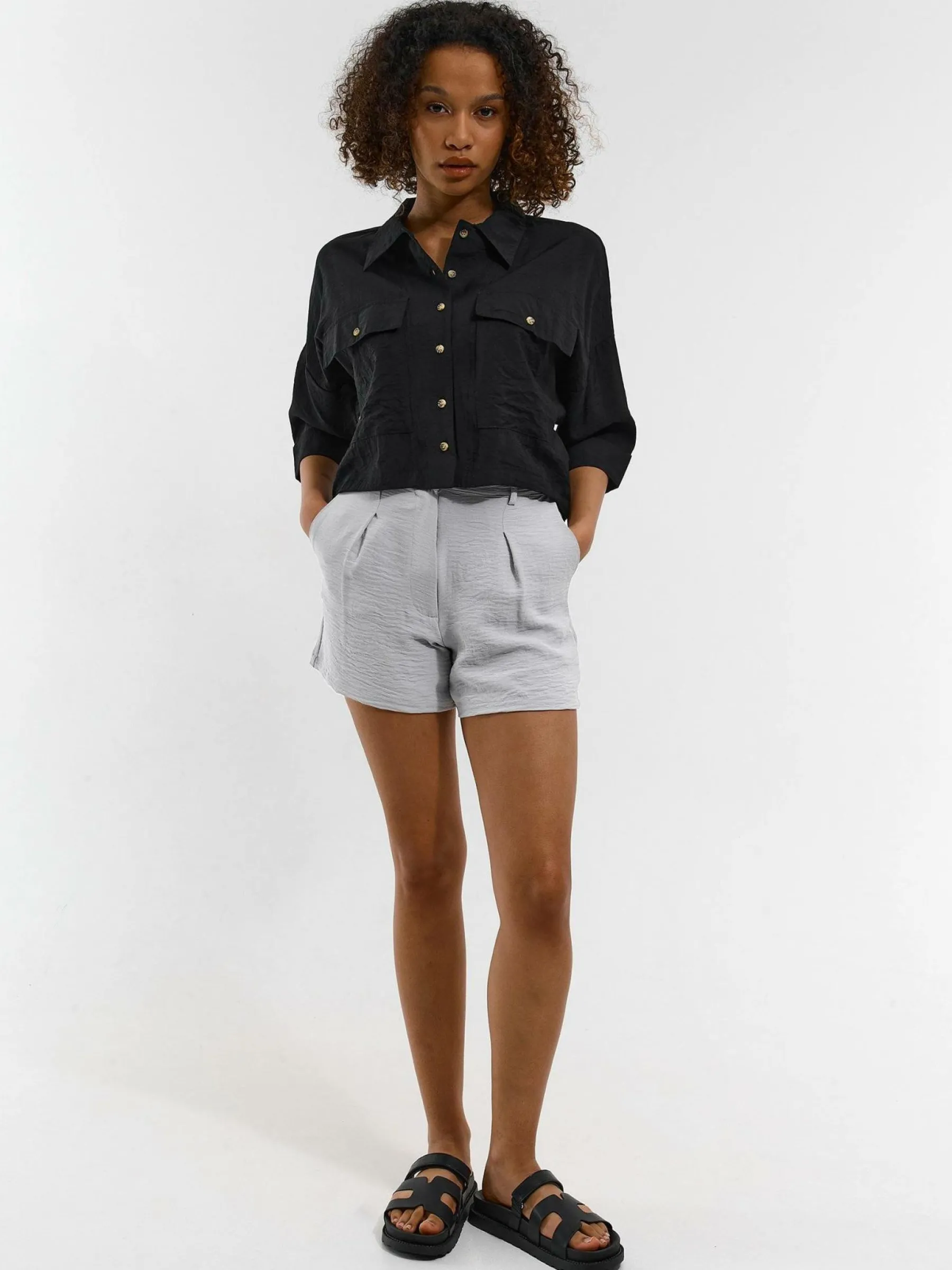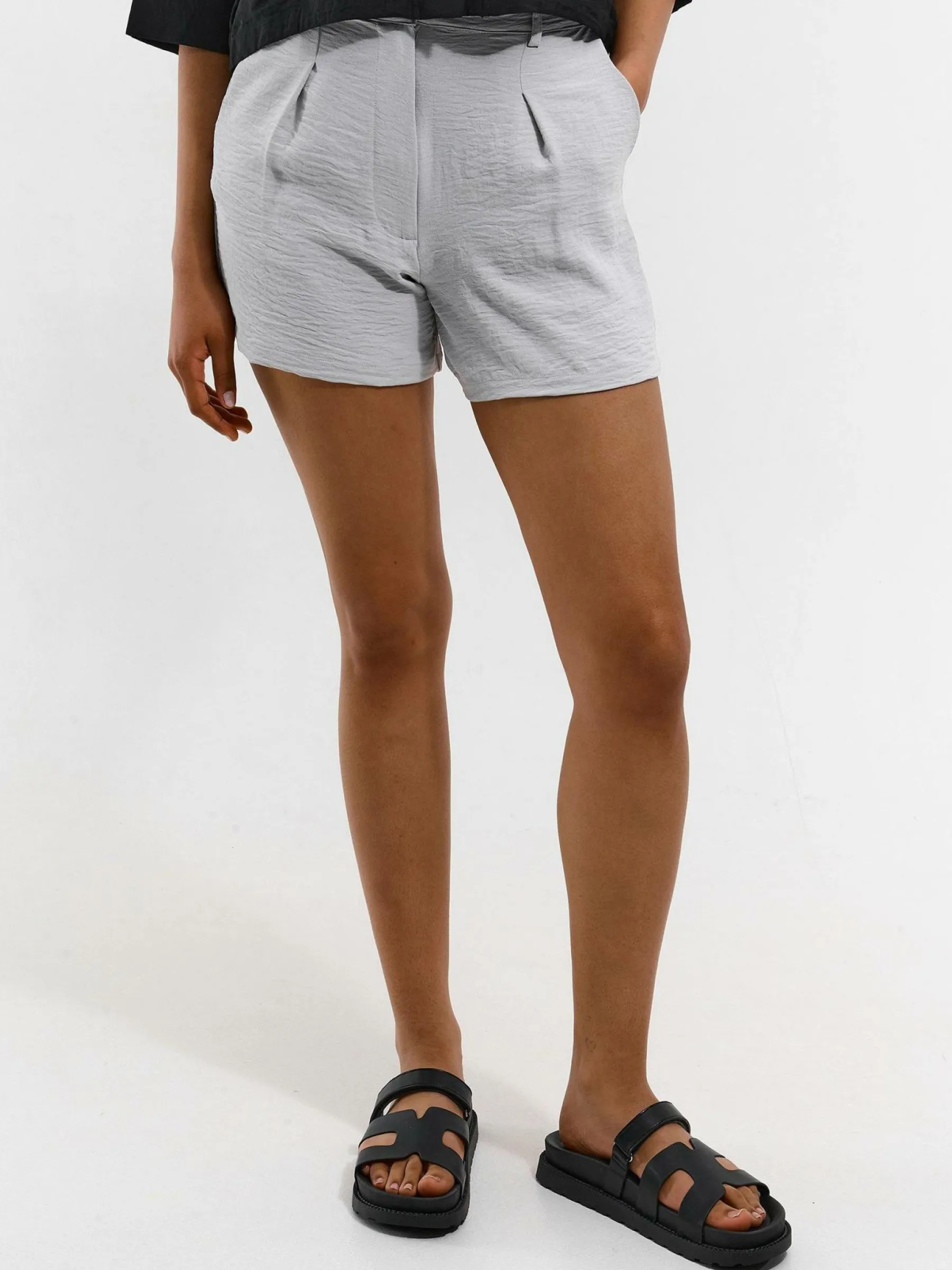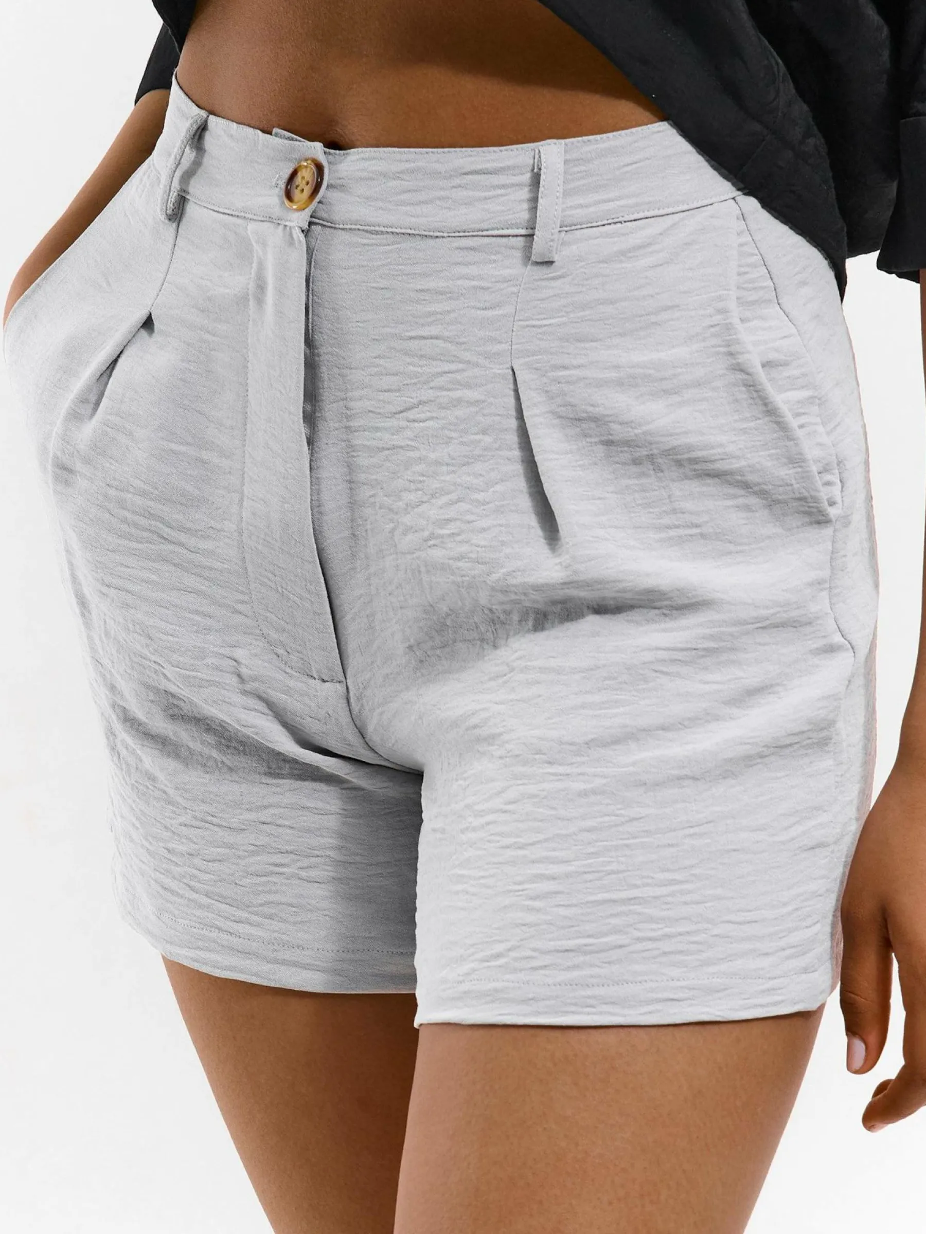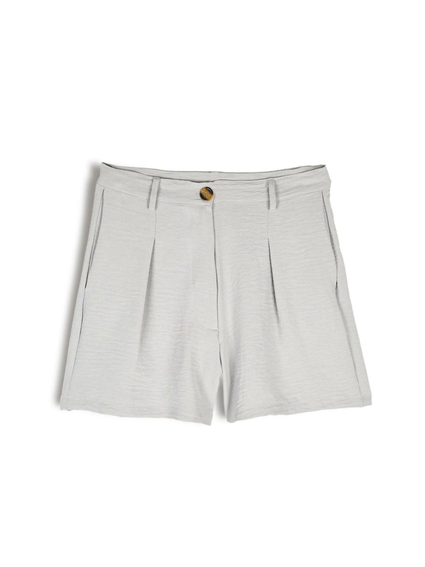 Kolor: szaryKrój: straightTyp: spodenkiDługość: krótkiPattern style: pojedynczy kolorDetal: na zamekMateriał: synt…