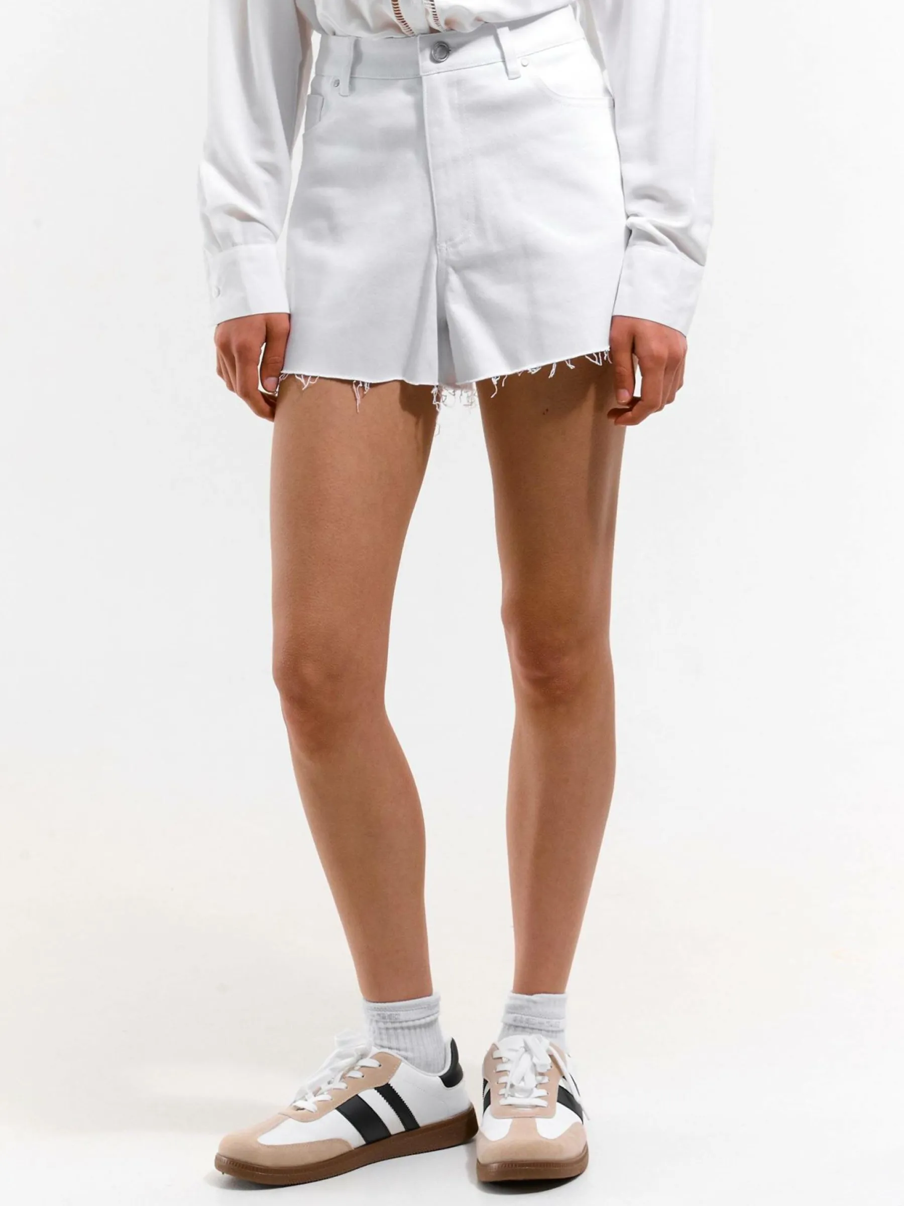 Kolor: białyKrój: straightTyp: spodenkiDługość: midiPattern style: pojedynczy kolorDetal: na zamekMateriał: baweł…