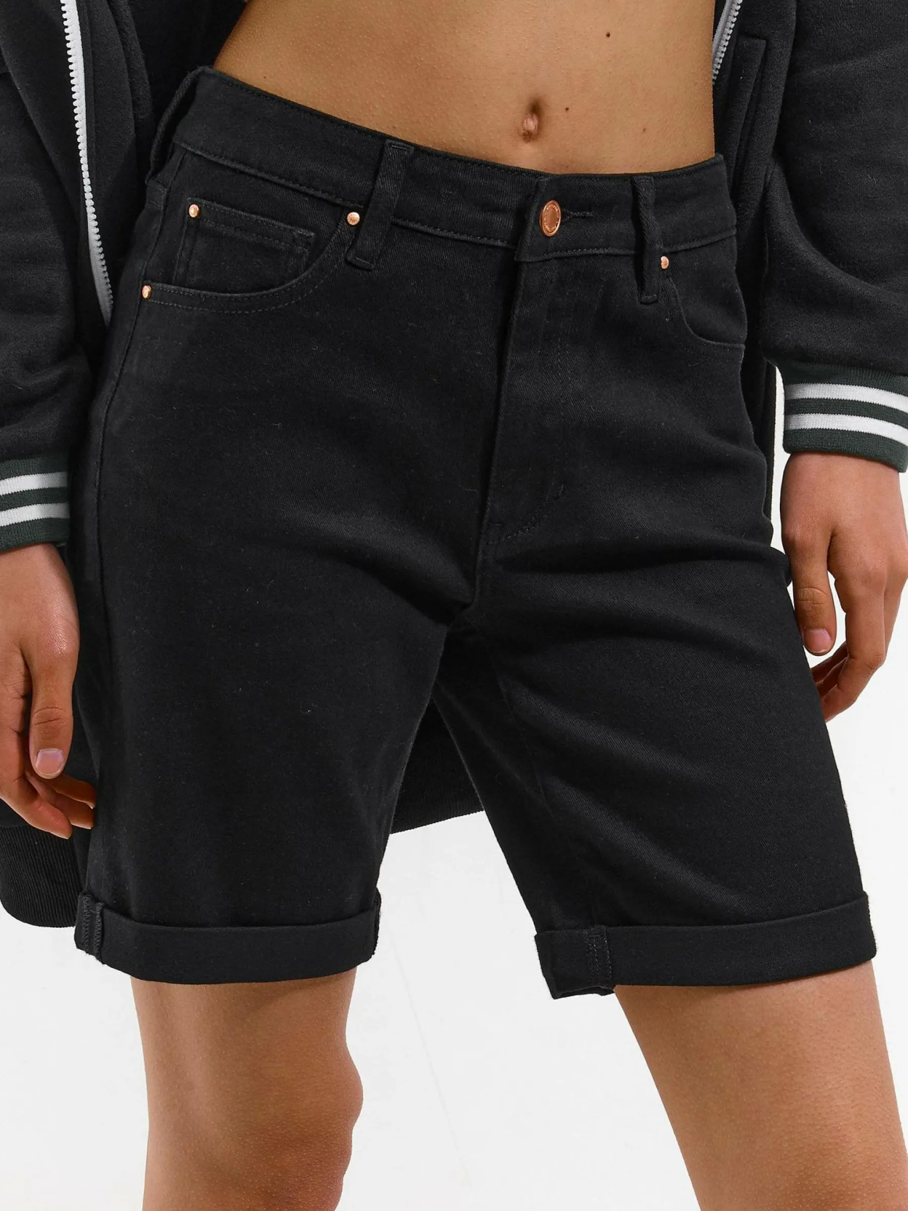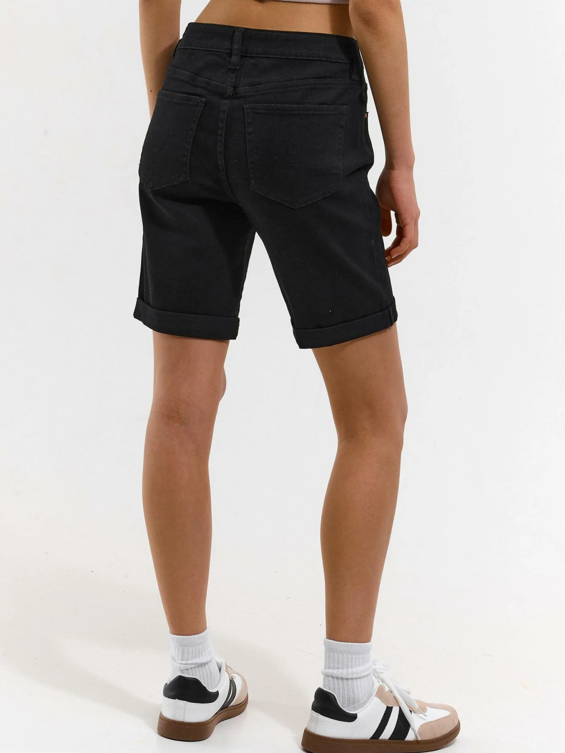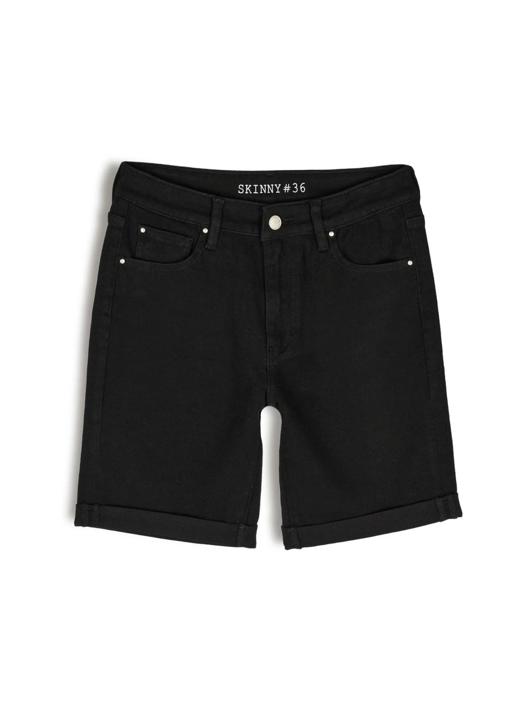 Kolor: czarnyKrój: skinnyTyp: spodenkiDługość: krótkiPattern style: pojedynczy kolorDetal: na zamek, z kieszeniamiM…