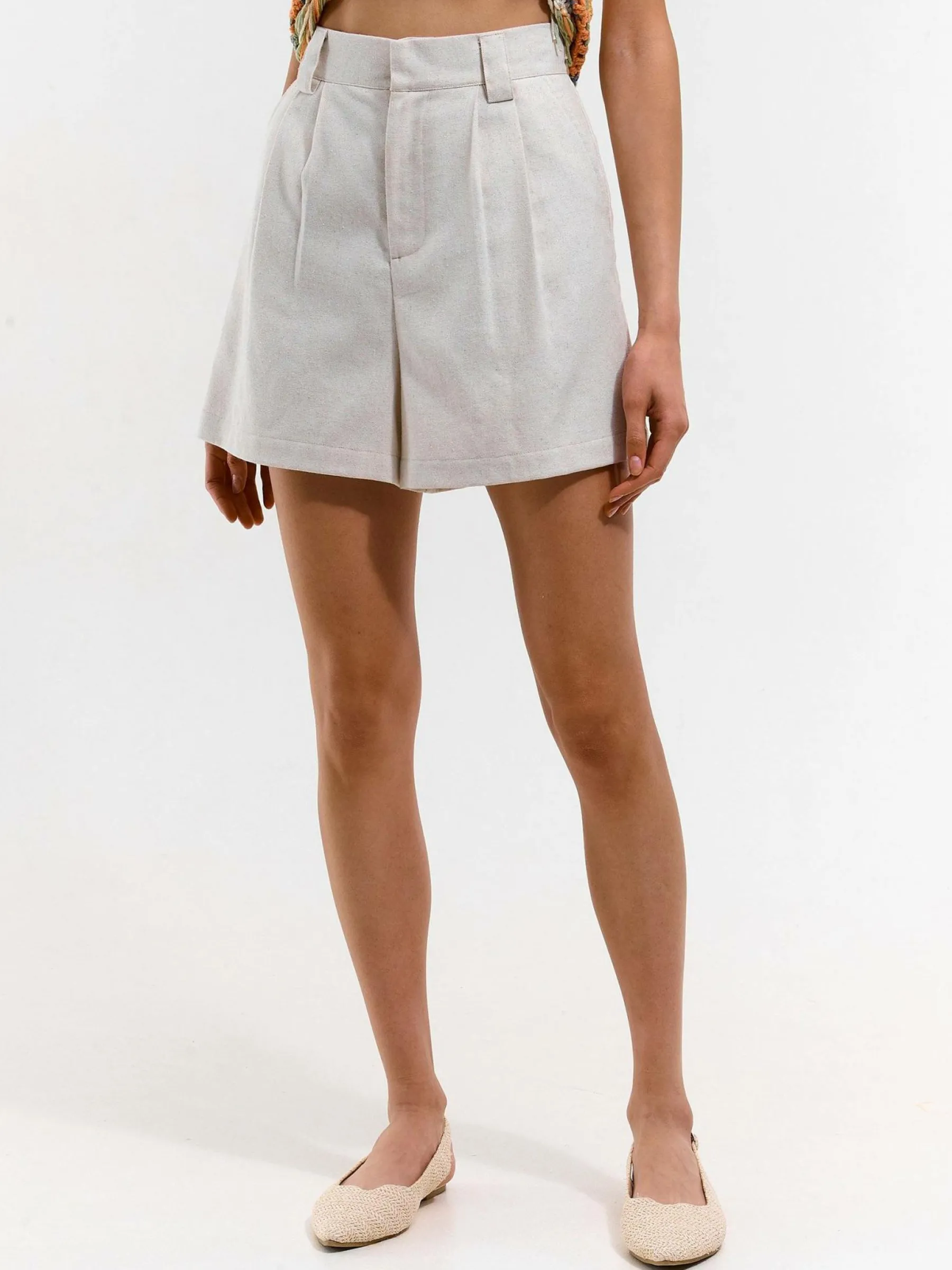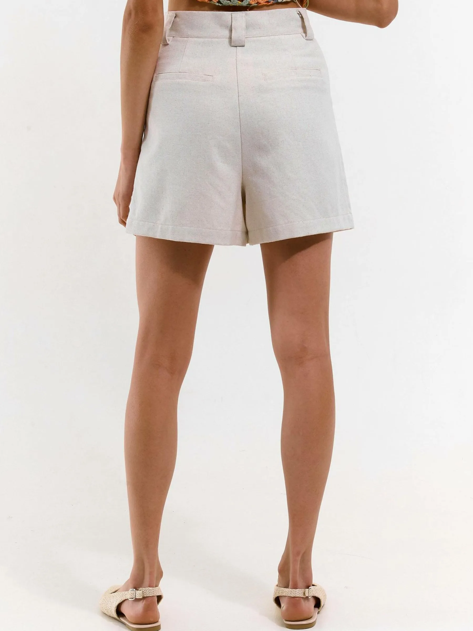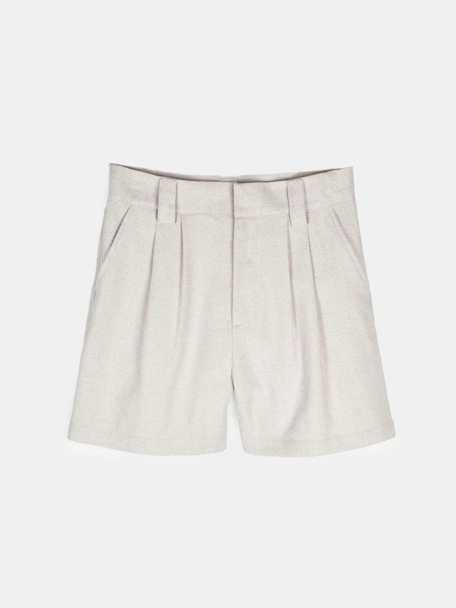 Kolor: beżowyKrój: straightTyp: spodenkiDługość: krótkiPattern style: pojedynczy kolorDetal: na zamekMateriał: mi…