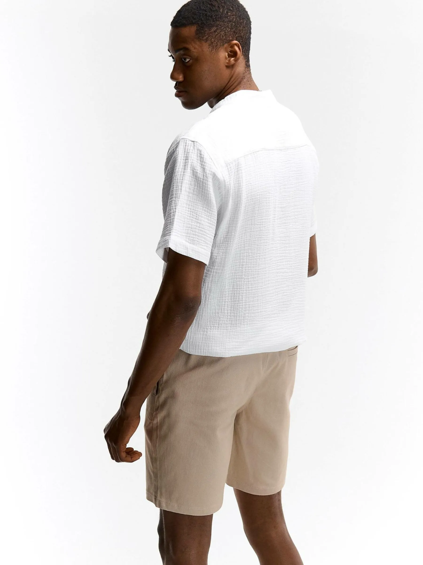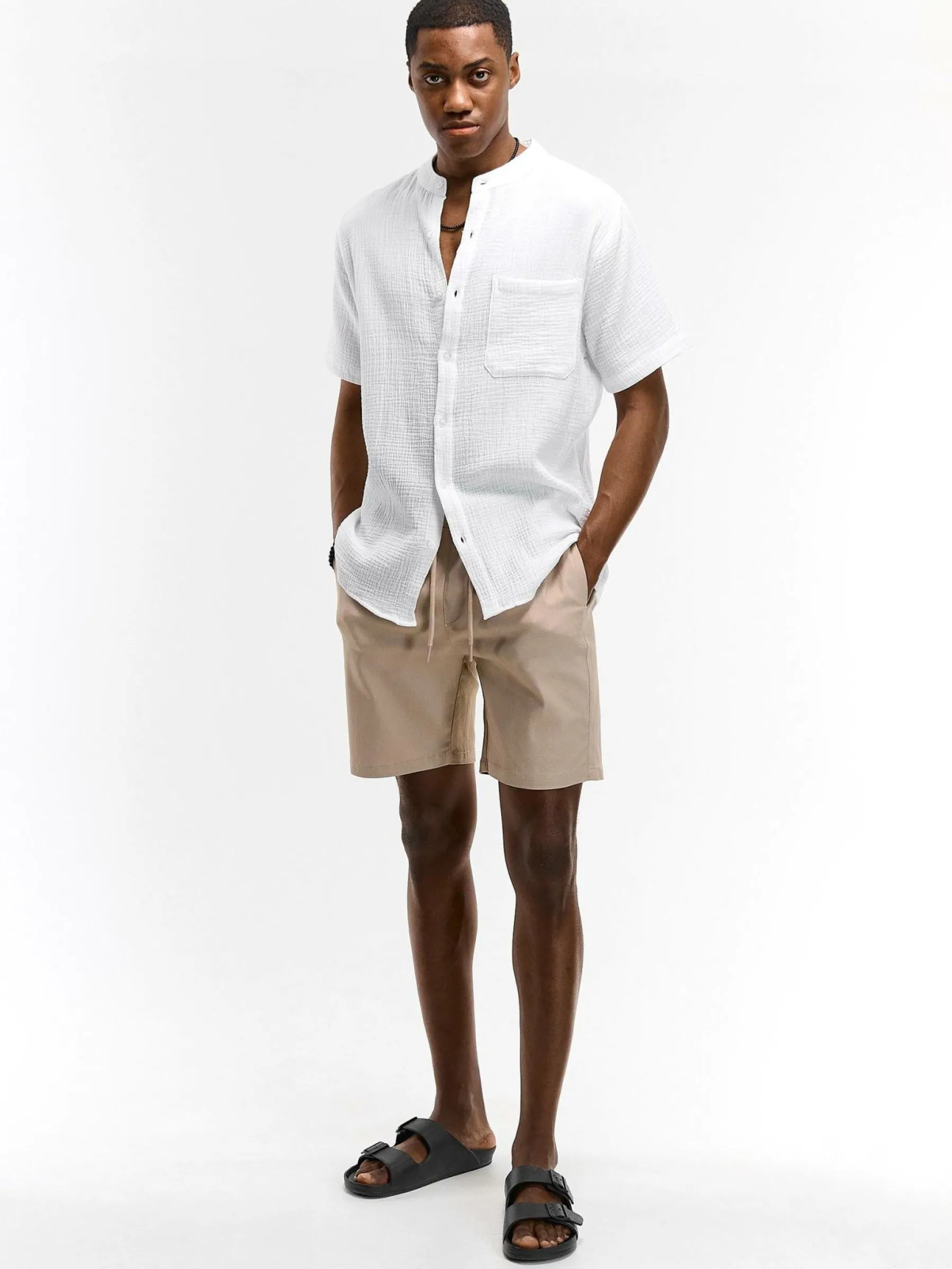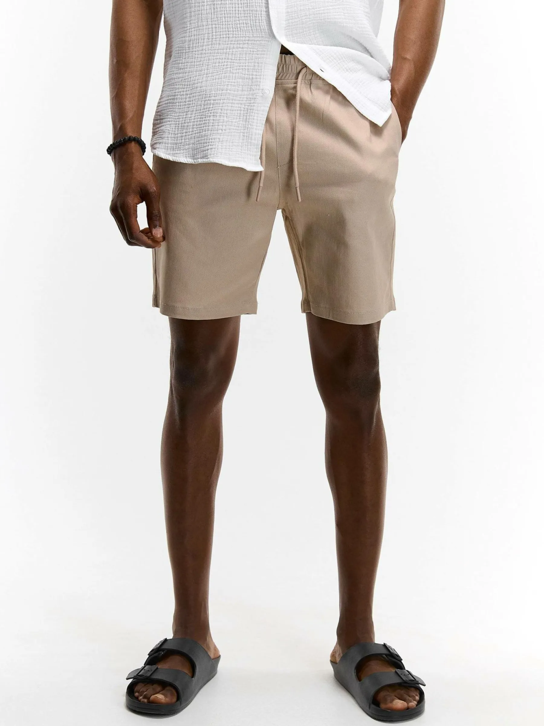 Kolor: beżowyKrój: straightTyp: spodenkiDługość: krótkiPattern style: pojedynczy kolorDetal: ze sznurowaniem, z ki…