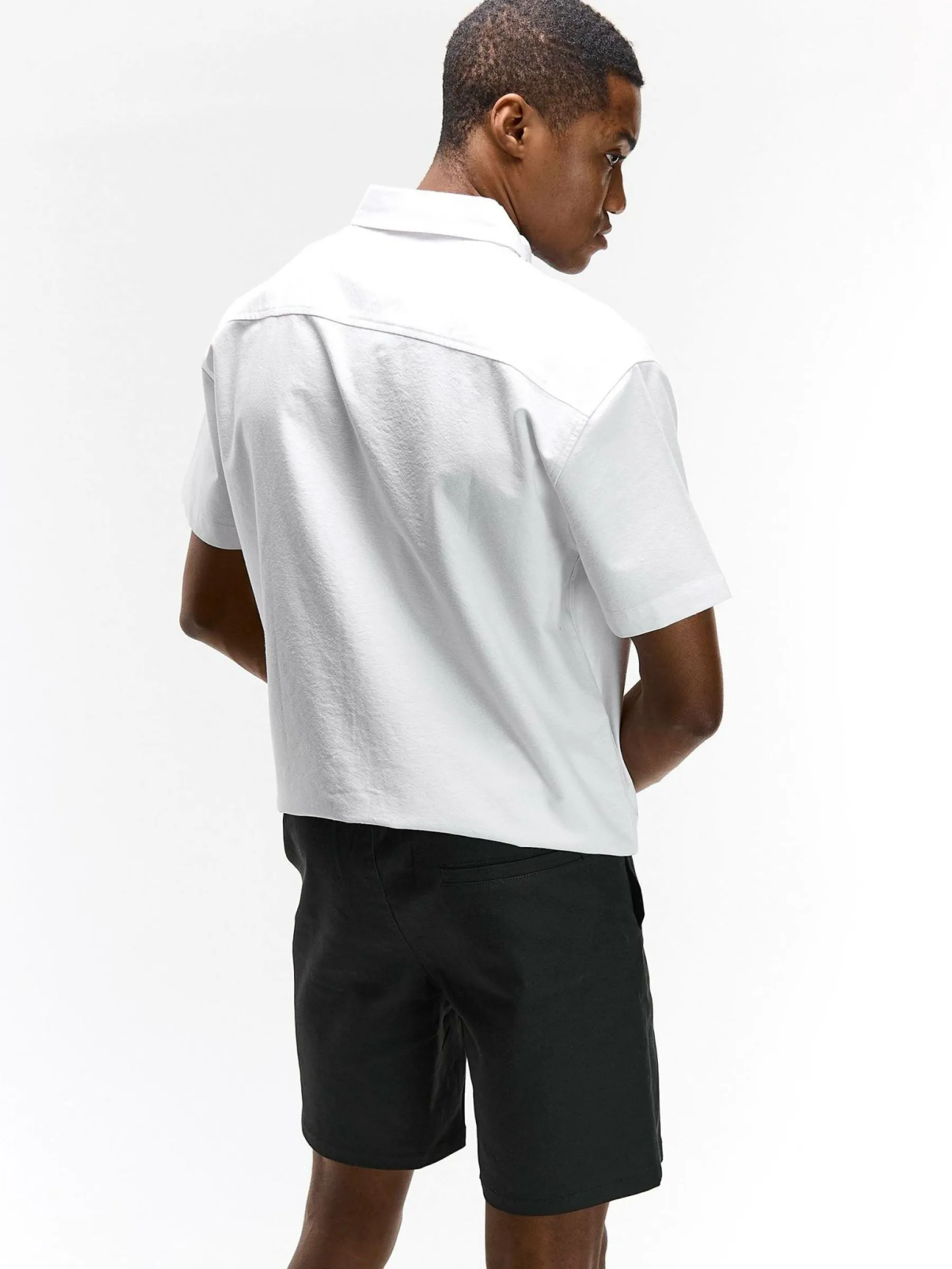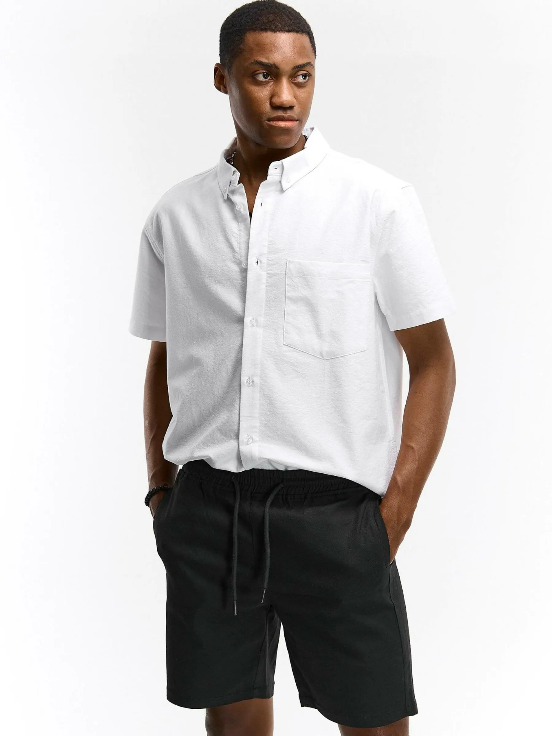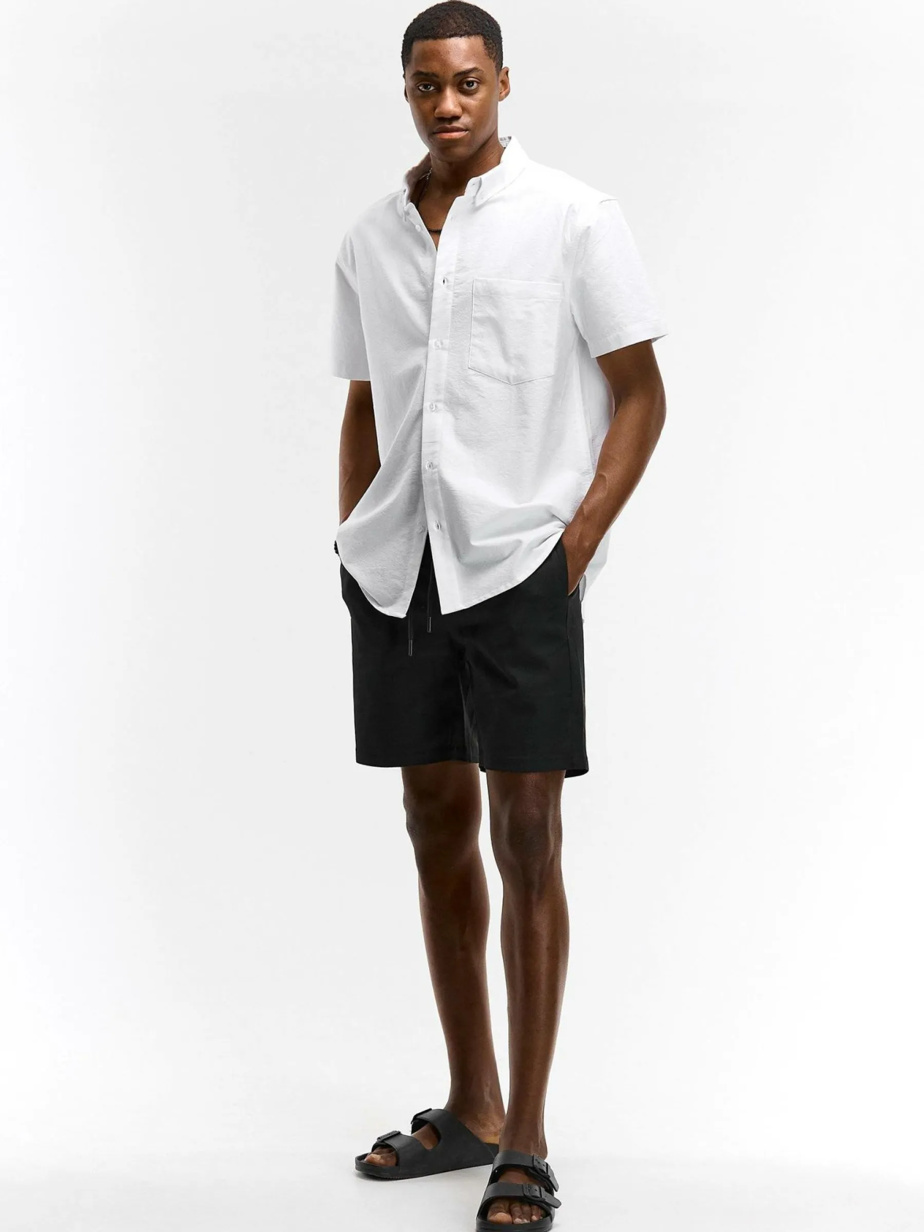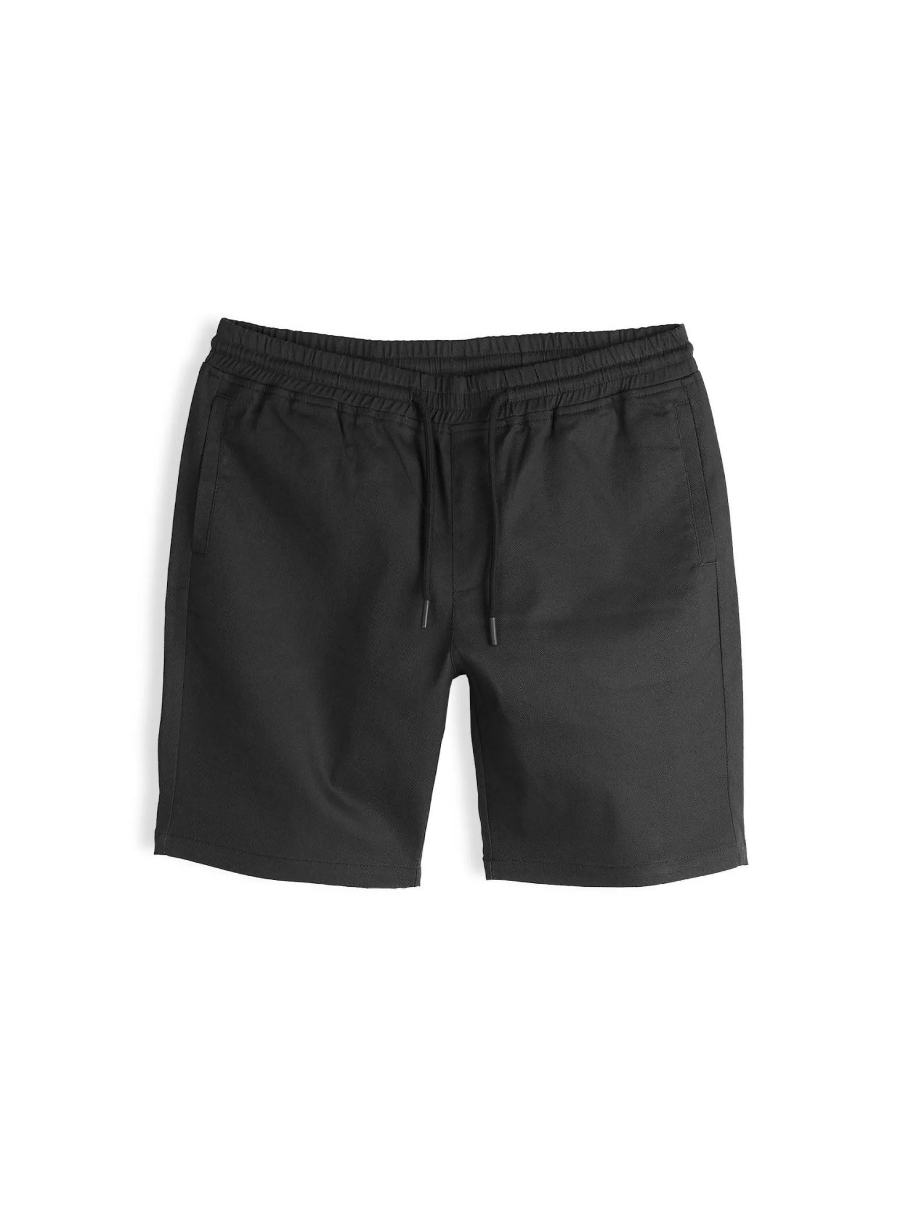 Kolor: czarnyKrój: straightTyp: spodenkiDługość: krótkiPattern style: pojedynczy kolorDetal: ze sznurowaniem, z kie…