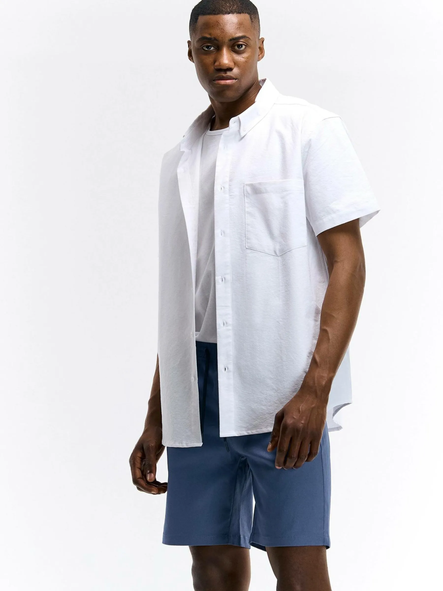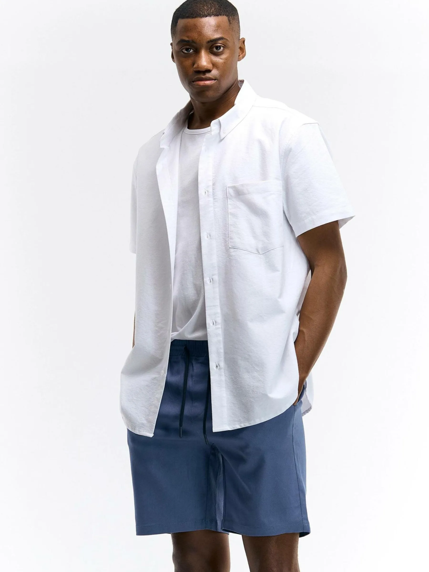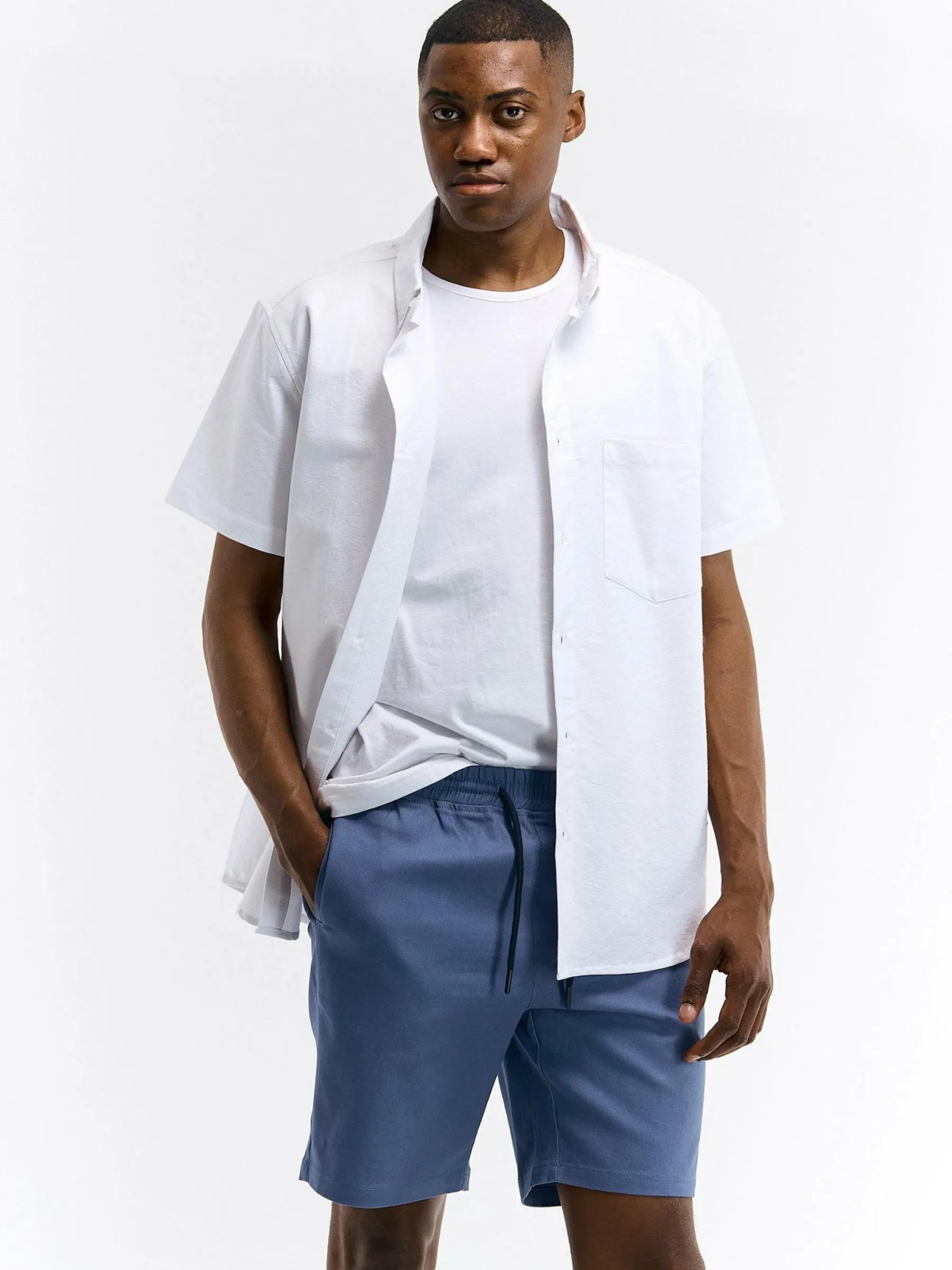 Kolor: niebieskiKrój: straightTyp: spodenkiDługość: krótkiPattern style: pojedynczy kolorDetal: ze sznurowaniem, z …