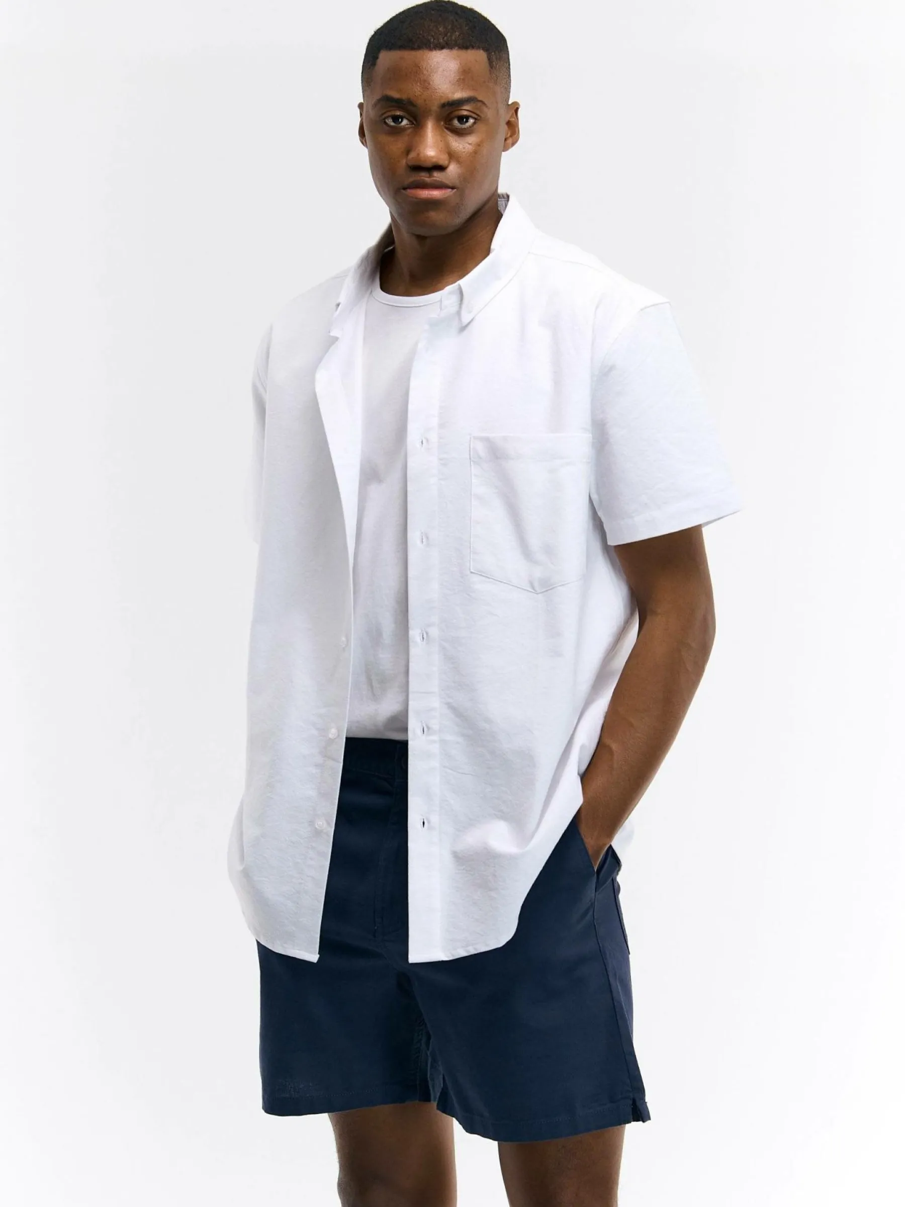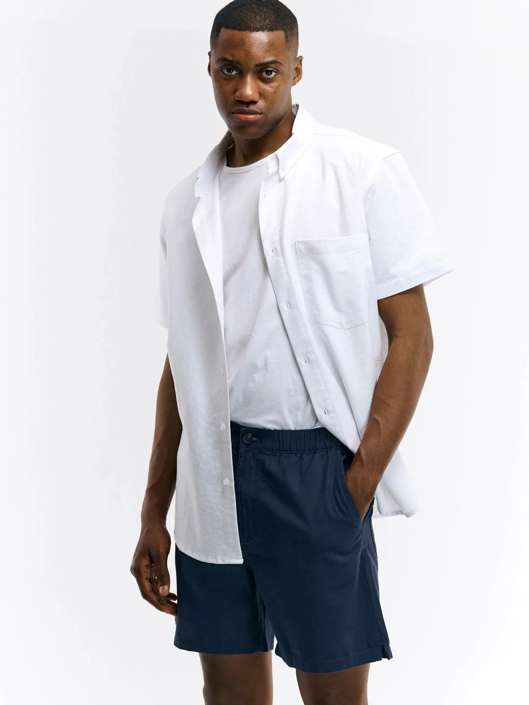 Kolor: granatowyKrój: regularTyp: spodenkiDługość: krótkiPattern style: pojedynczy kolorDetal: na zamek, z kieszeni…