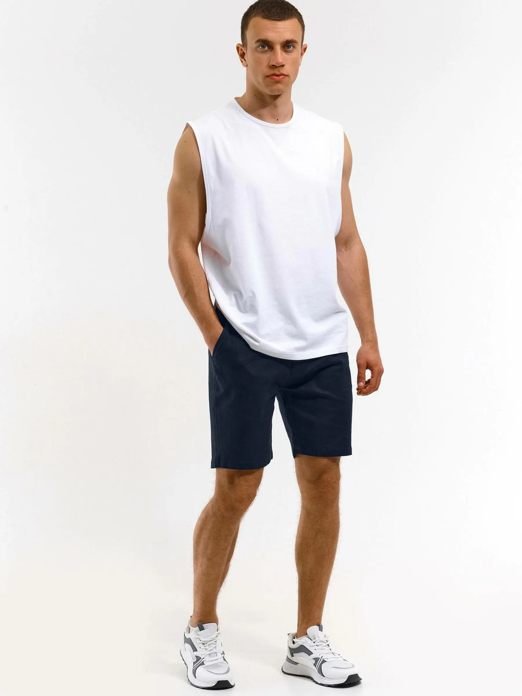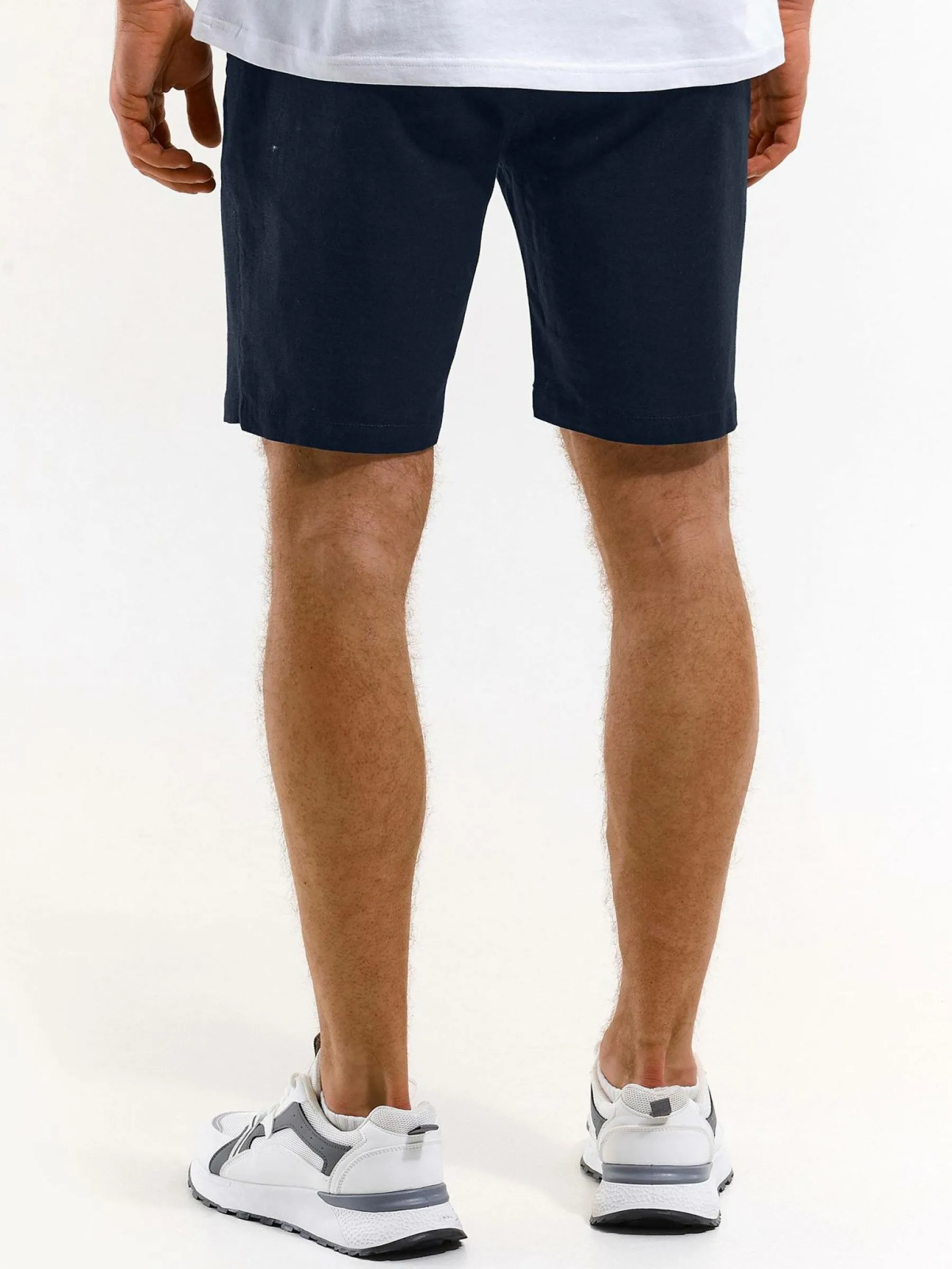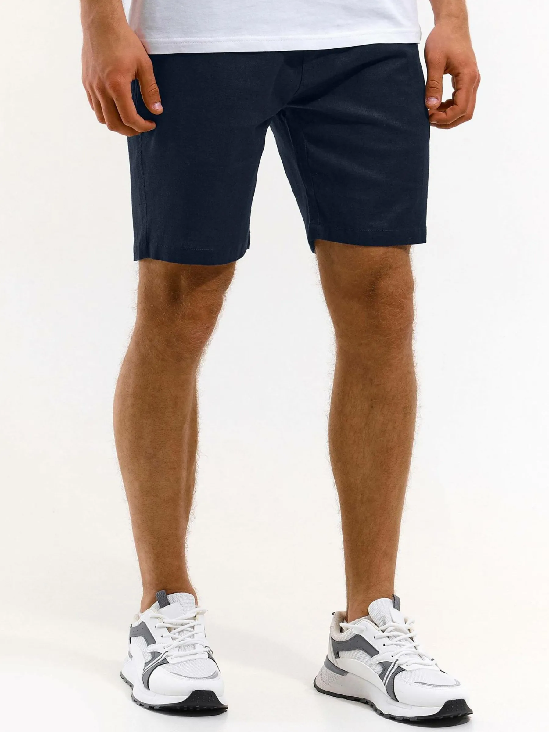 Kolor: granatowyKrój: straightTyp: spodenkiDługość: krótkiPattern style: pojedynczy kolorDetal: z kieszeniami, na z…