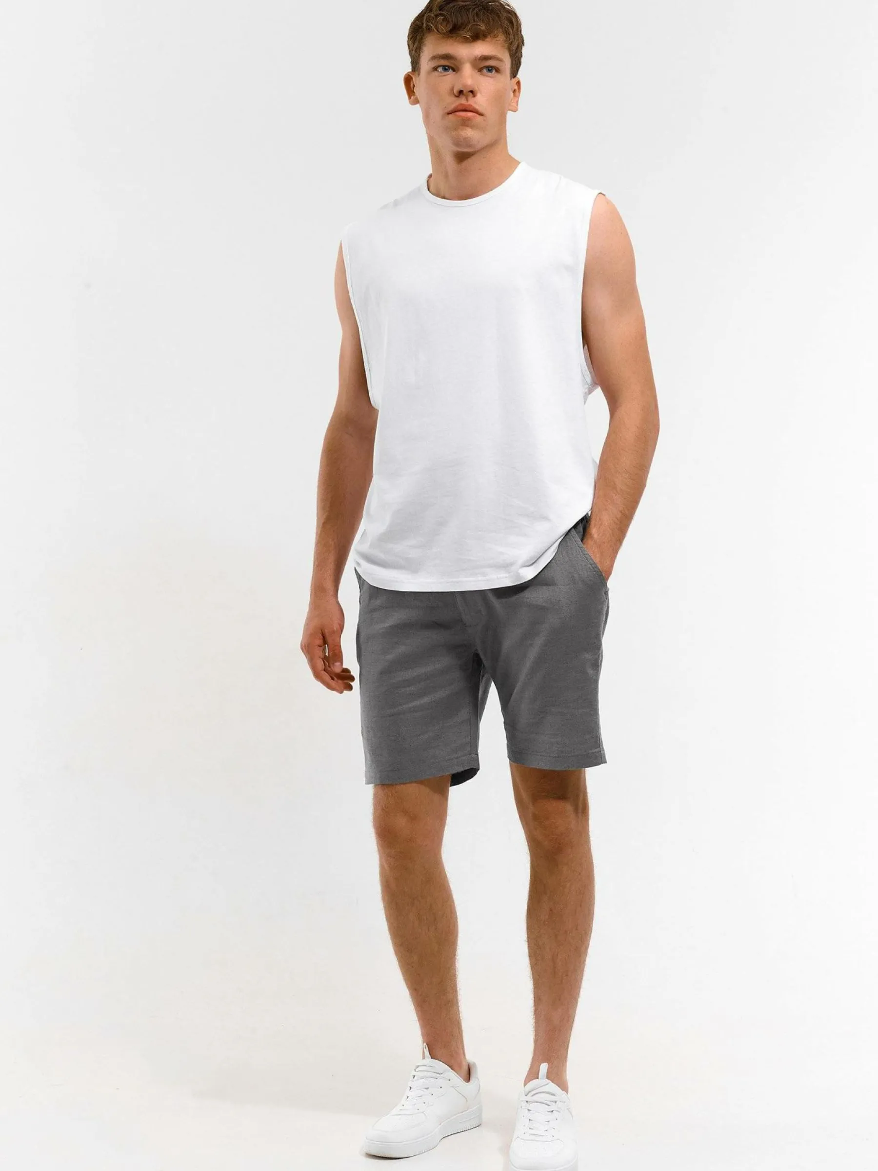 Kolor: szaryKrój: straightTyp: spodenkiDługość: krótkiPattern style: pojedynczy kolorDetal: z kieszeniami, na zamek…