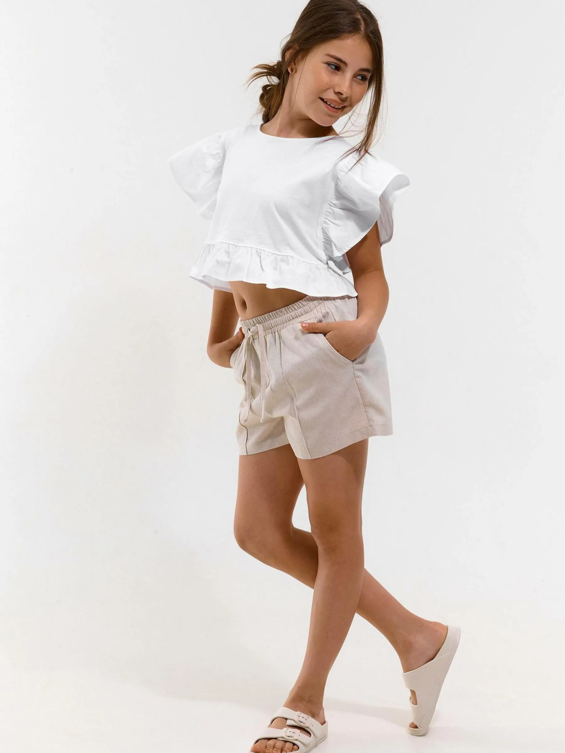 Zdjęcia z modelką mogą nie odpowiadać rzeczywistemu kolorowi produktu.Kolor: beżowyKrój: straightTyp: spodenkiDłu…