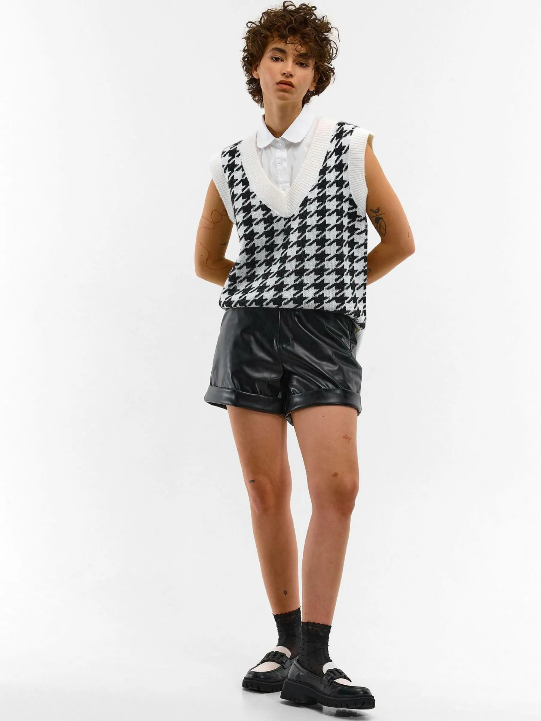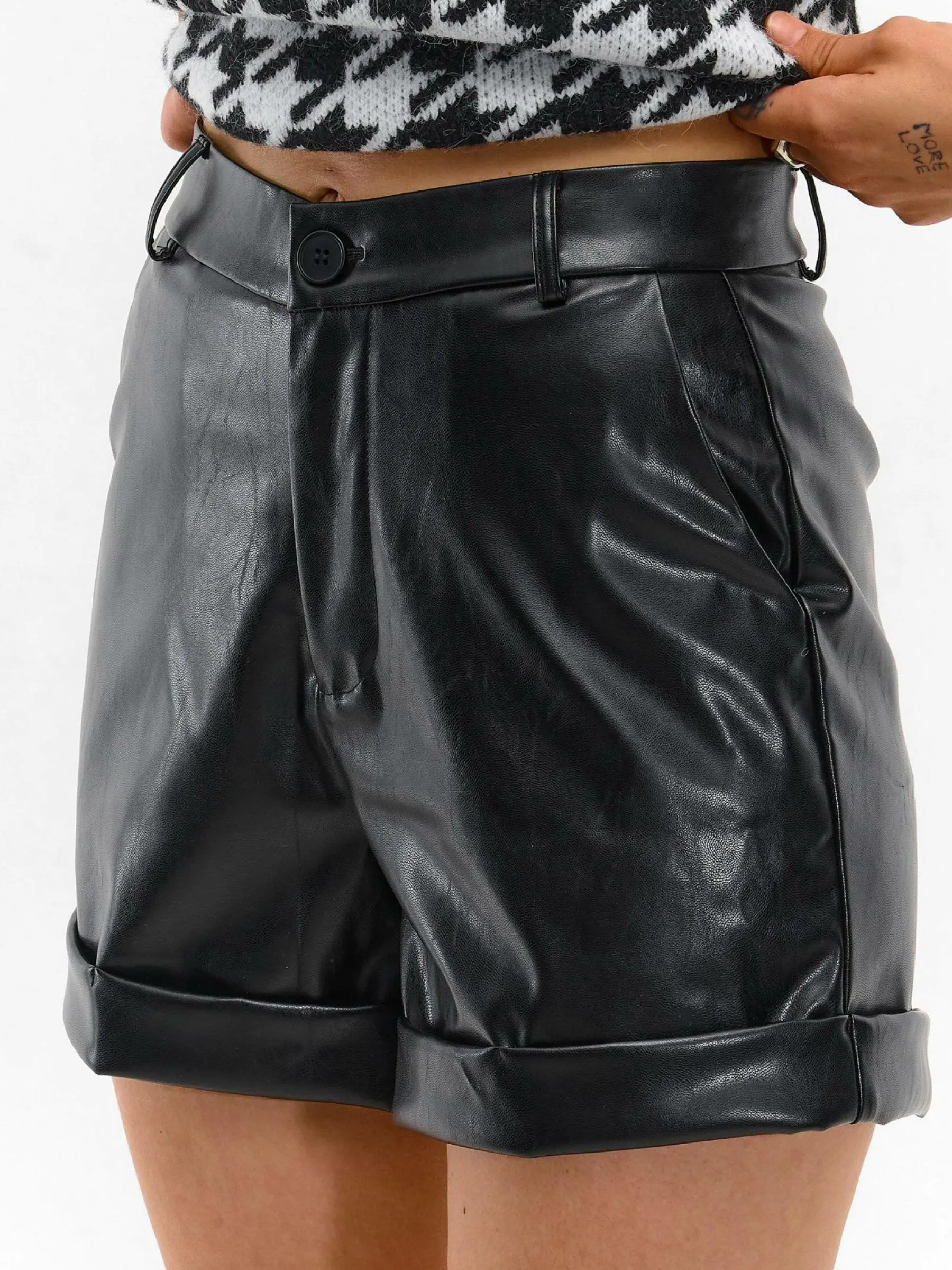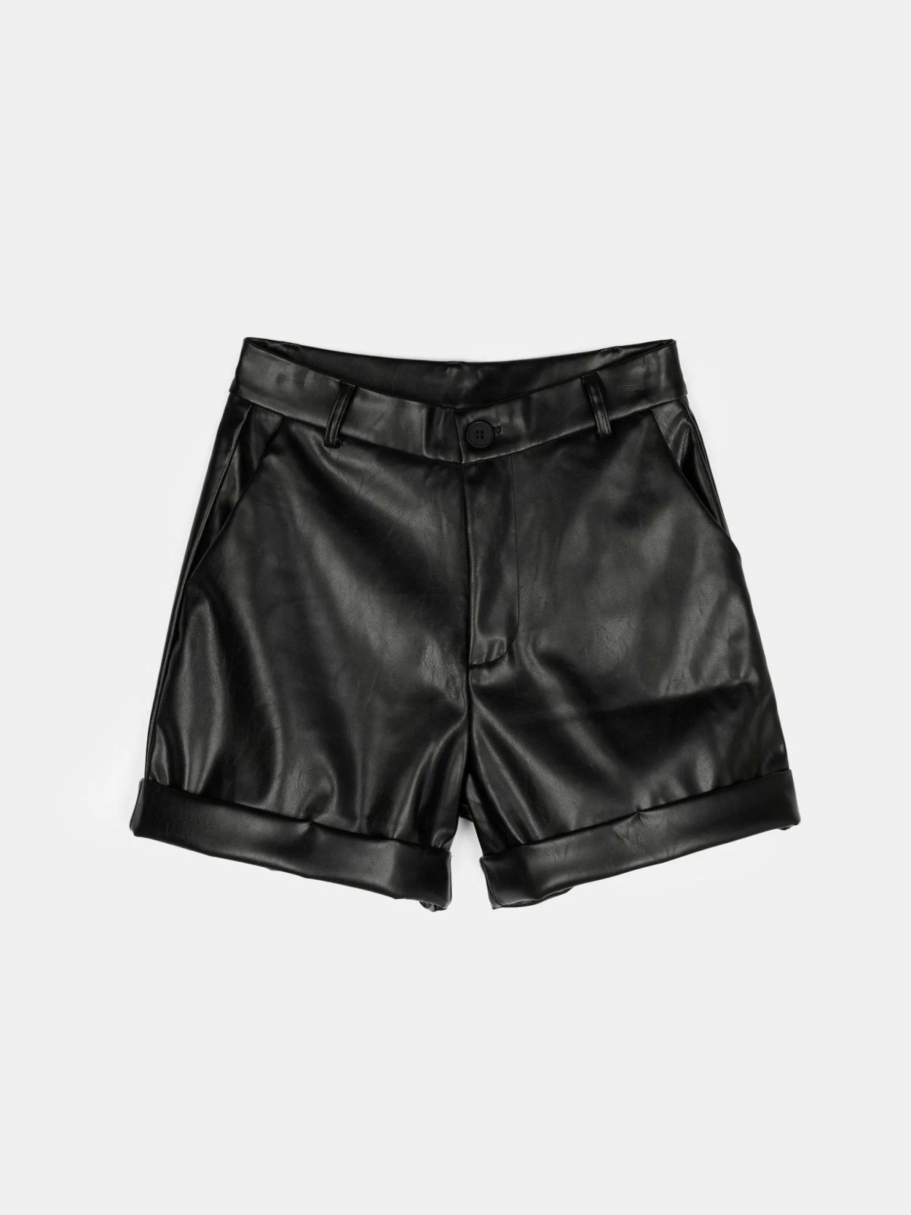 Kolor: czarnyKrój: z wysokim stanemTyp: spodenkiDługość: krótkiPattern style: pojedynczy kolorDetal: na zamek, z ki…