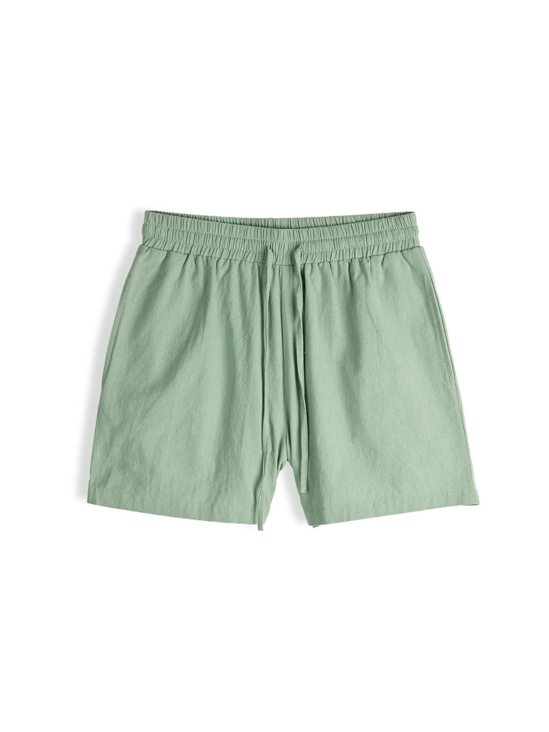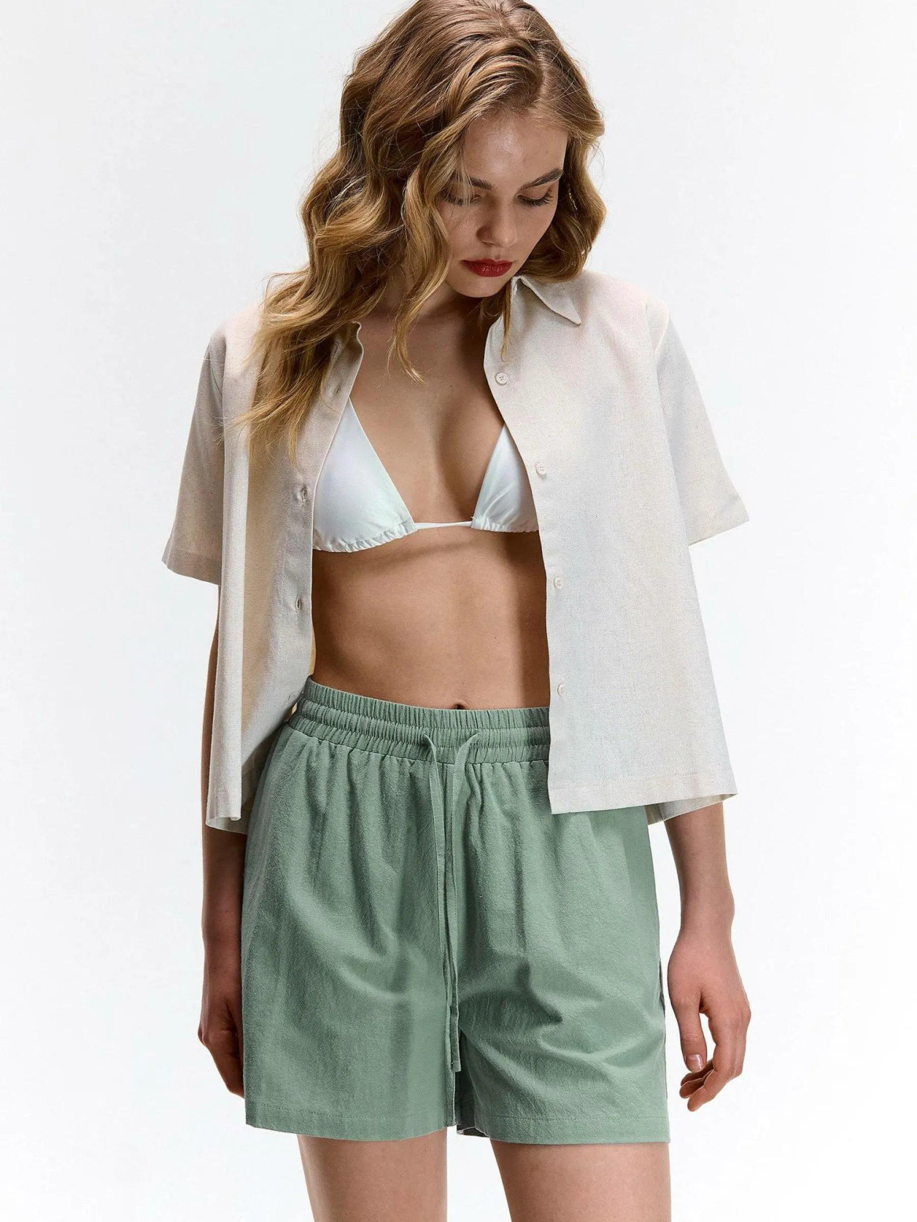 Kolor: zielonyKrój: straightTyp: spodenkiDługość: krótkiPattern style: pojedynczy kolorDetal: ze sznurowaniemMateri…