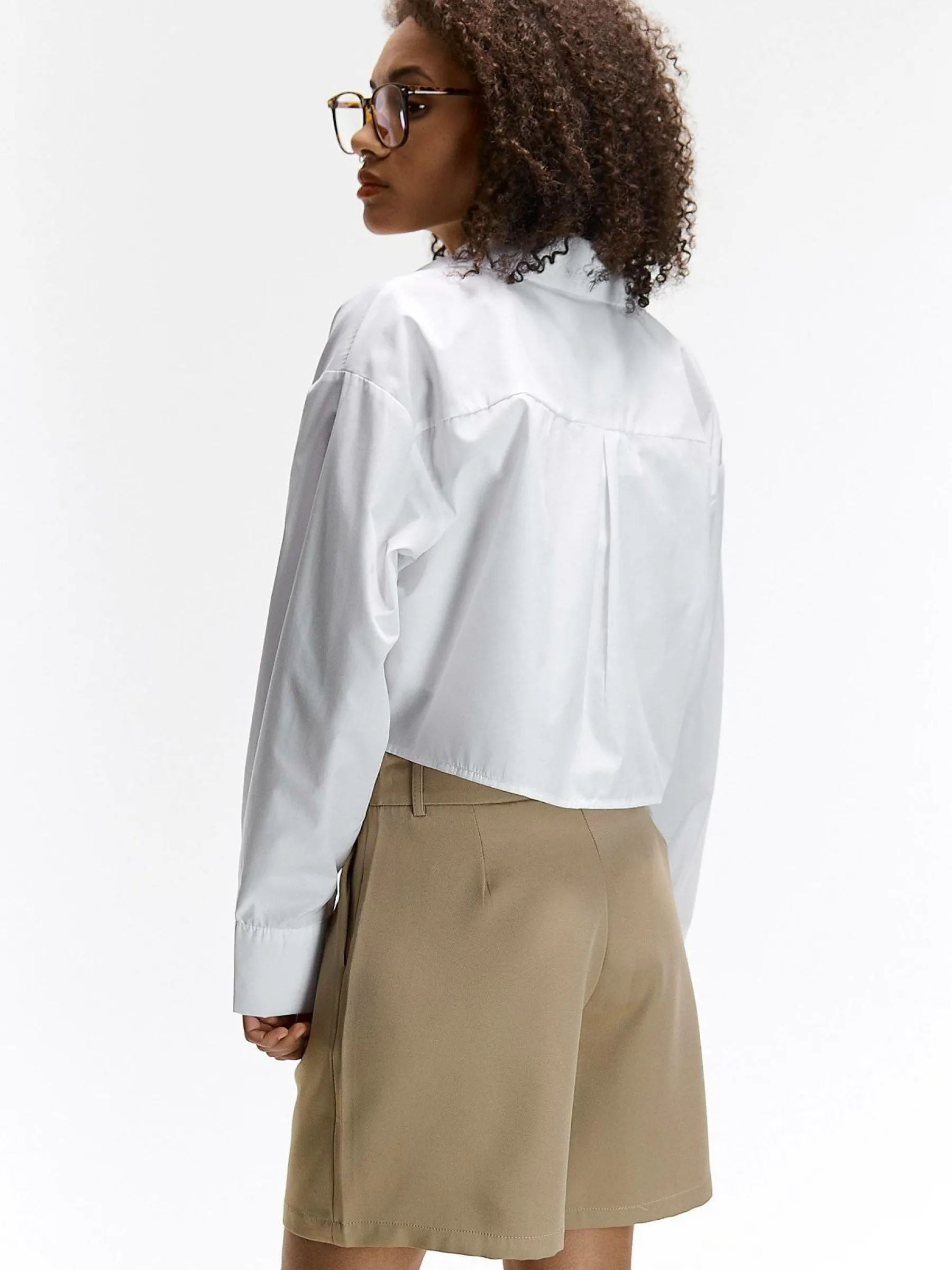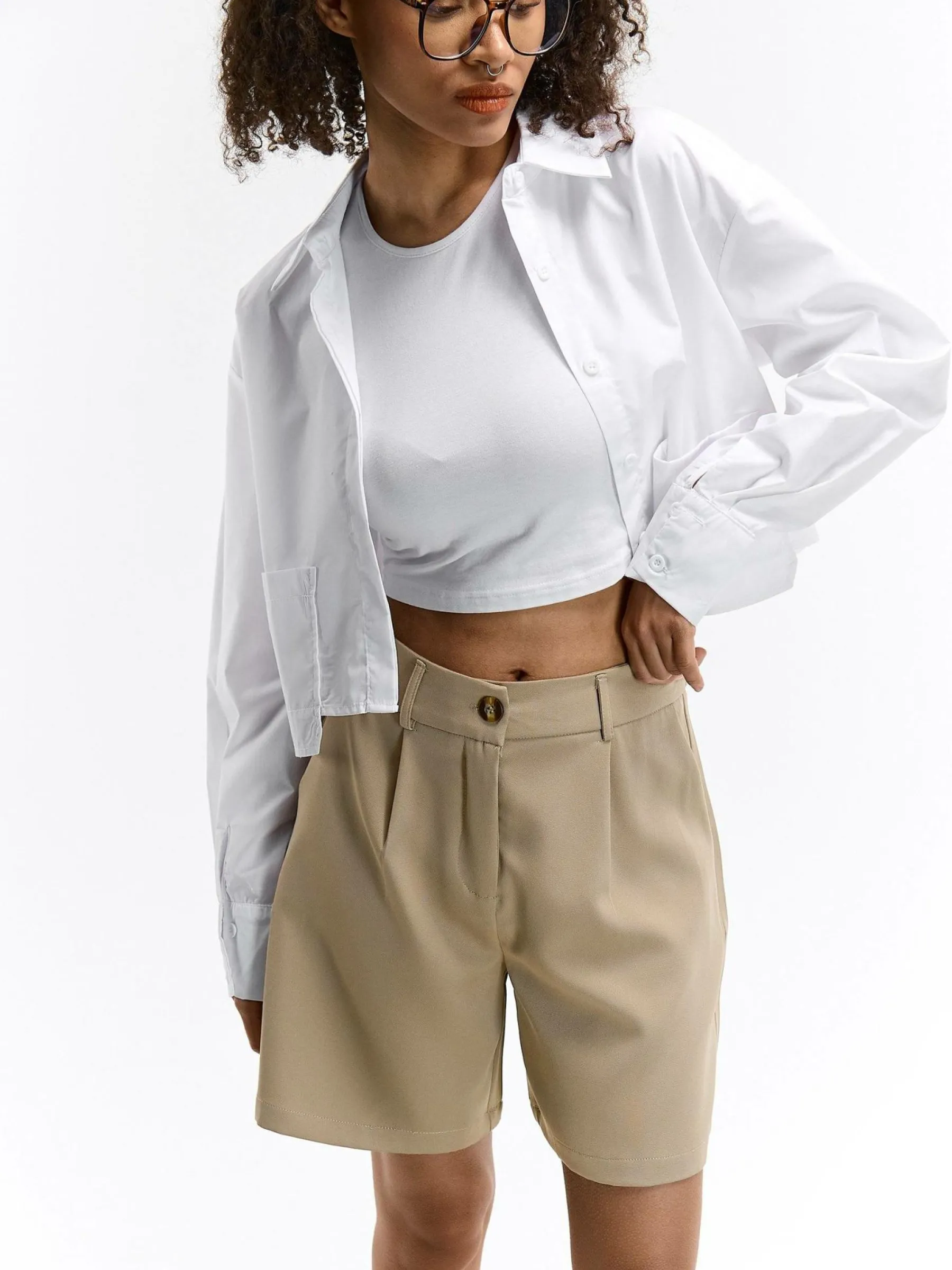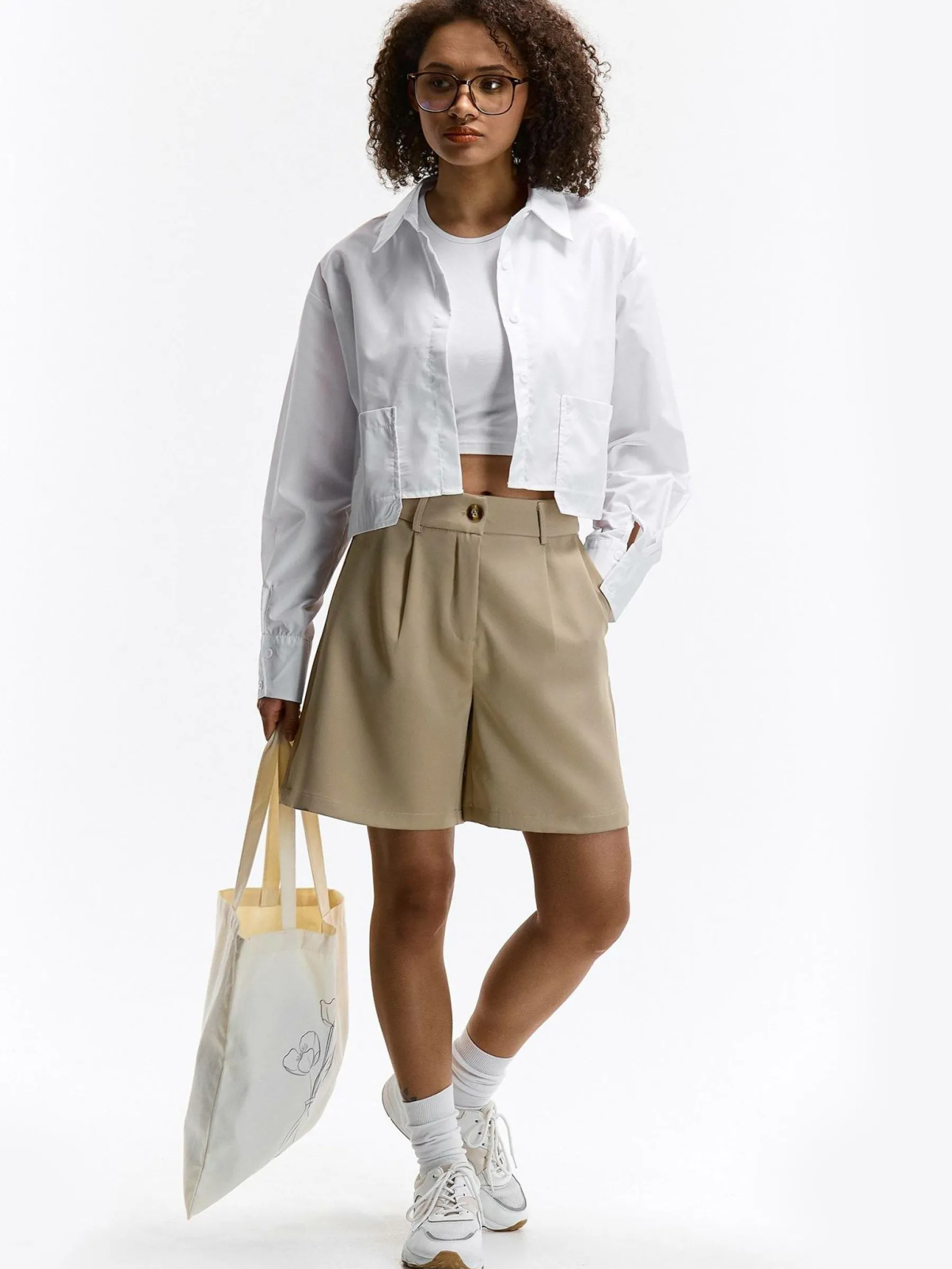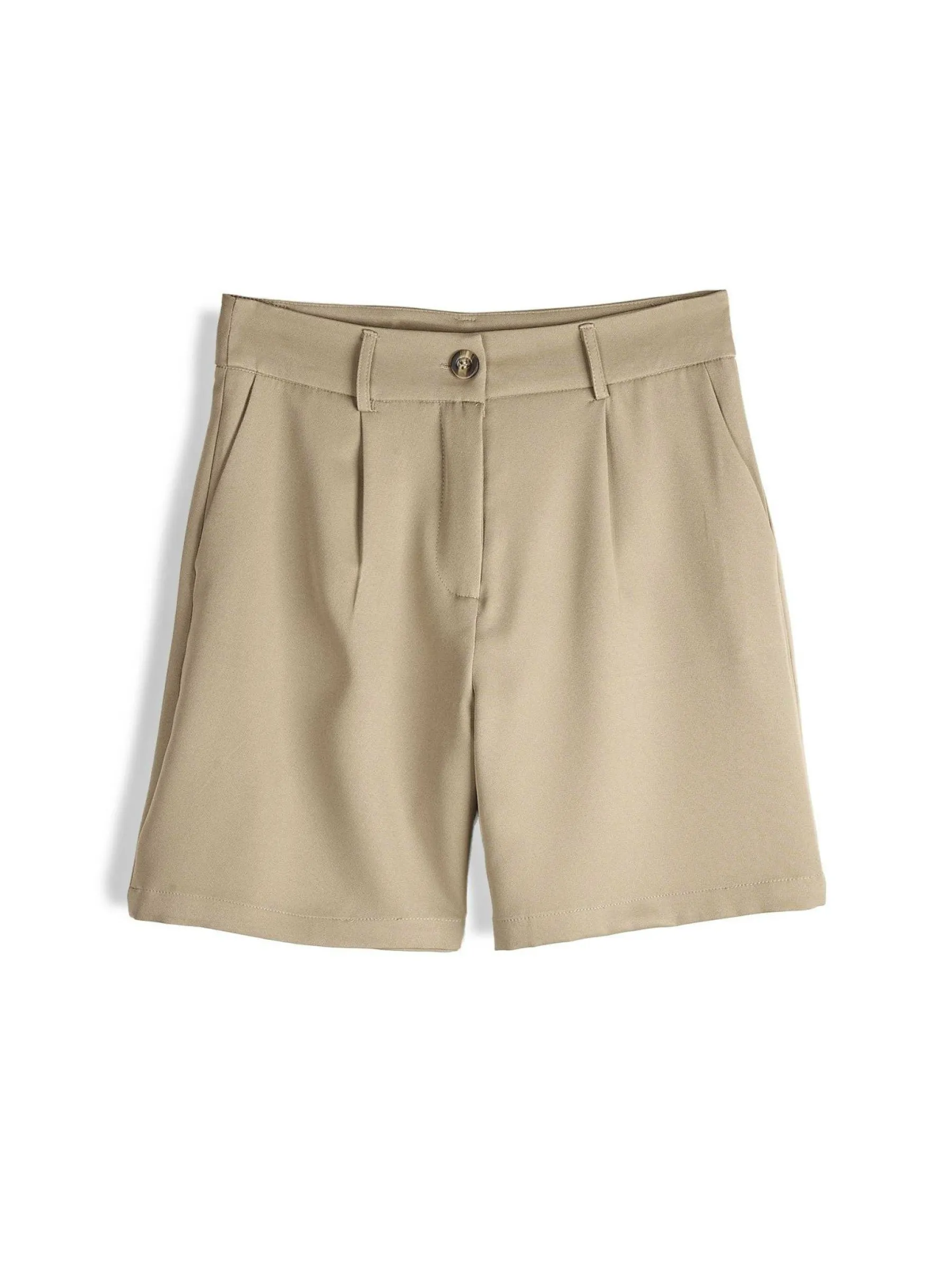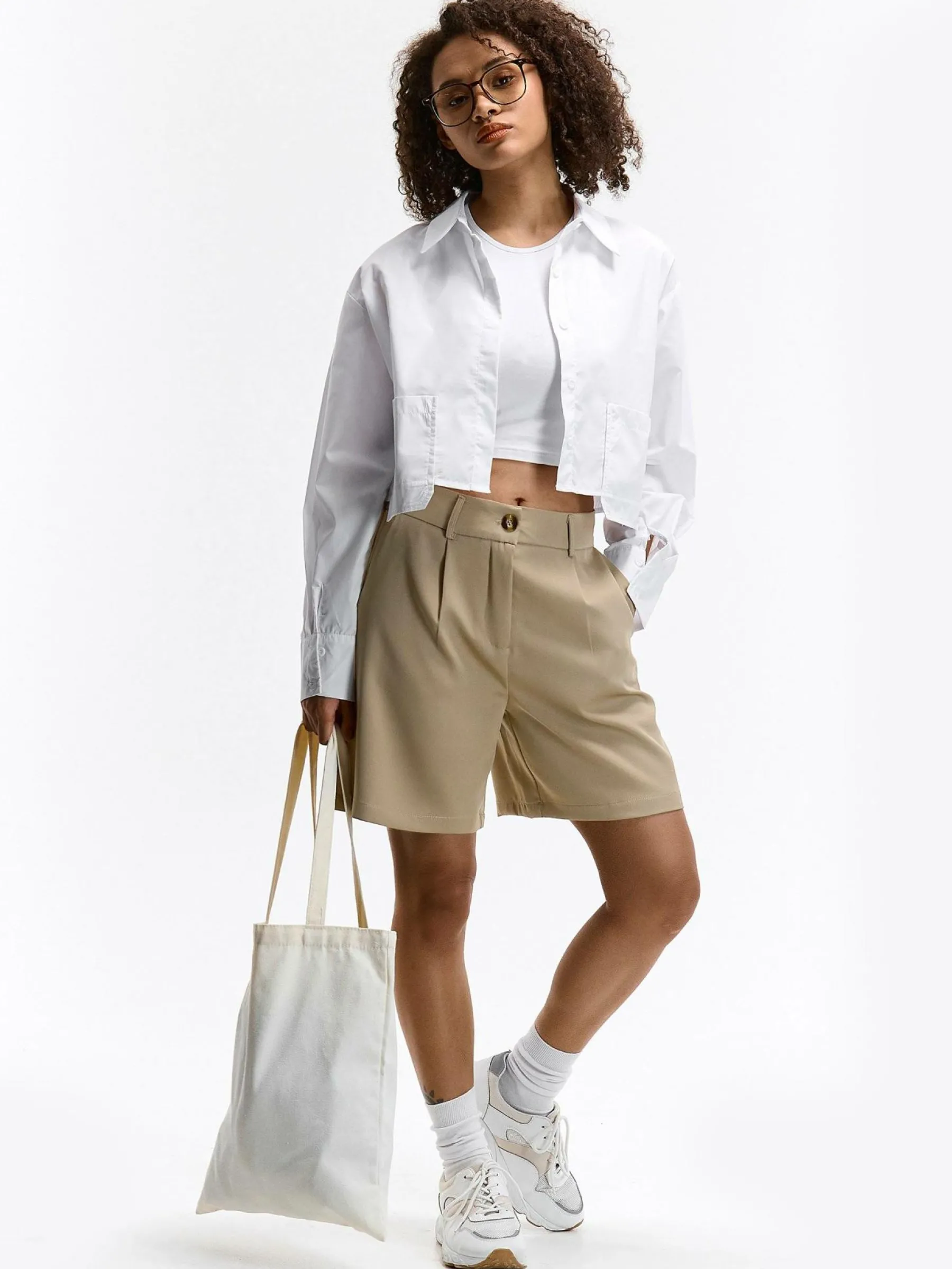 Kolor: beżowyKrój: straightTyp: spodenkiDługość: krótkiPattern style: pojedynczy kolorDetal: na zamek, z kieszenia…