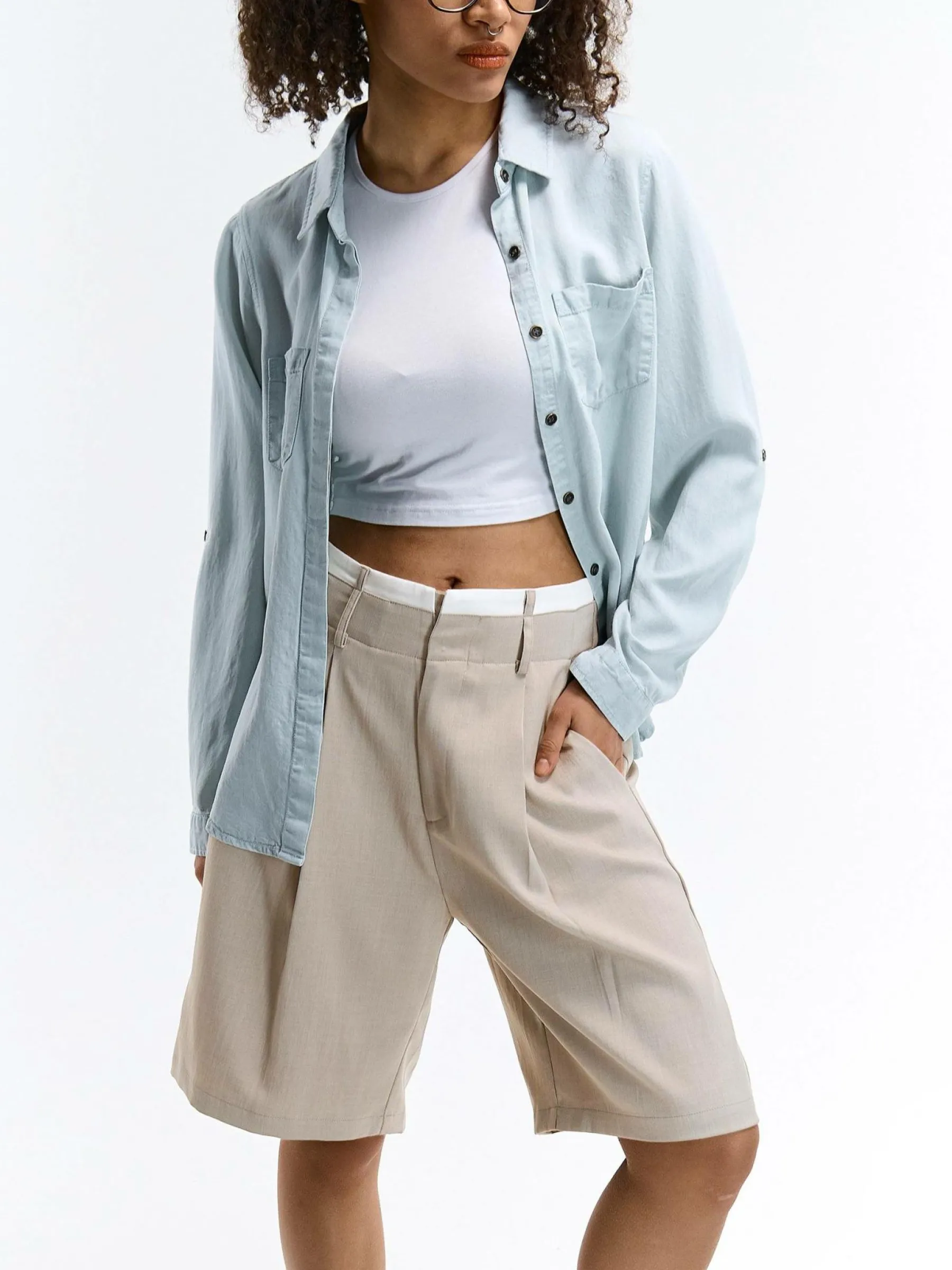 Kolor: beżowyKrój: straightTyp: spodenkiDługość: krótkiPattern style: pojedynczy kolorDetal: na zamek, z kieszenia…