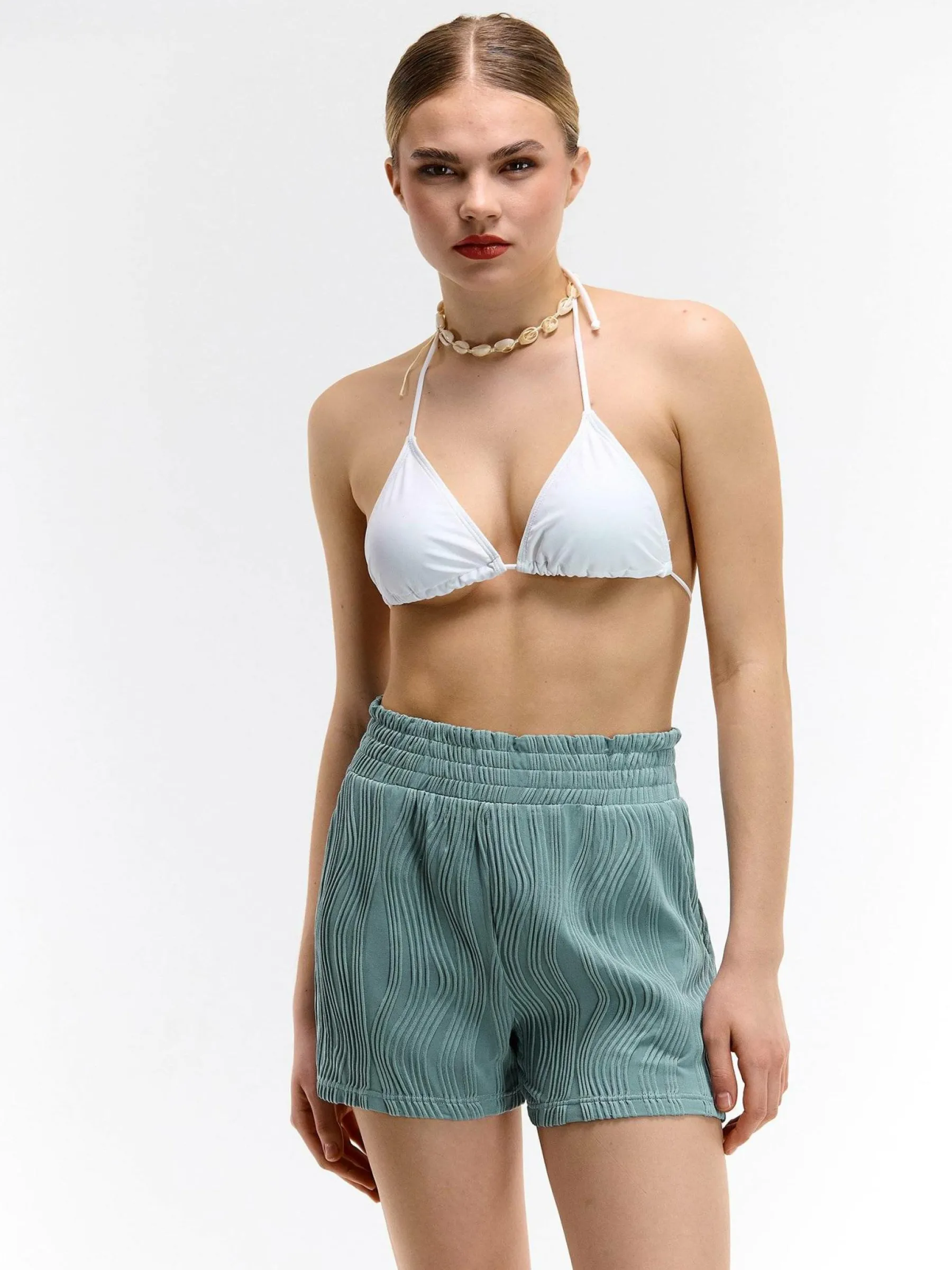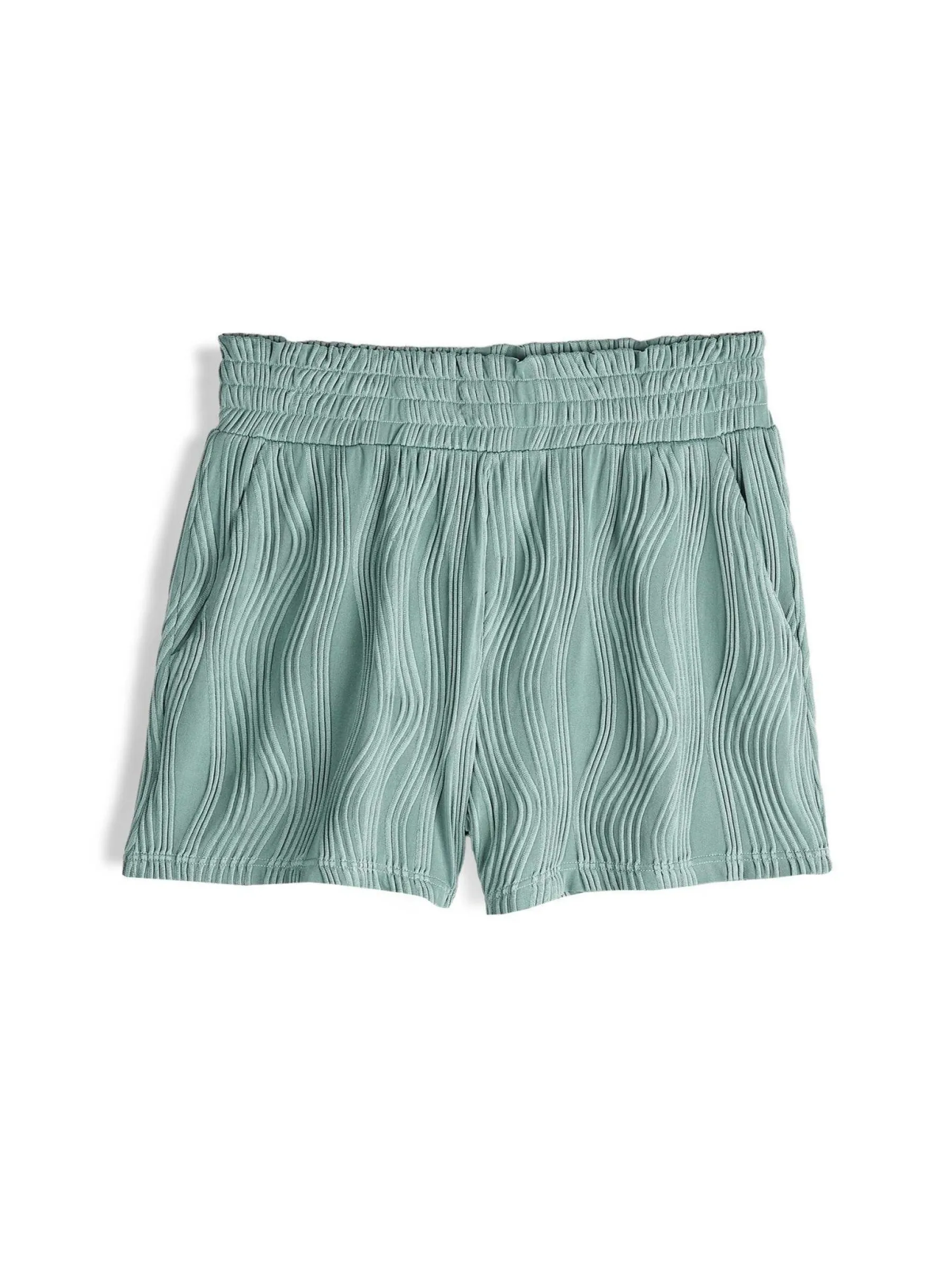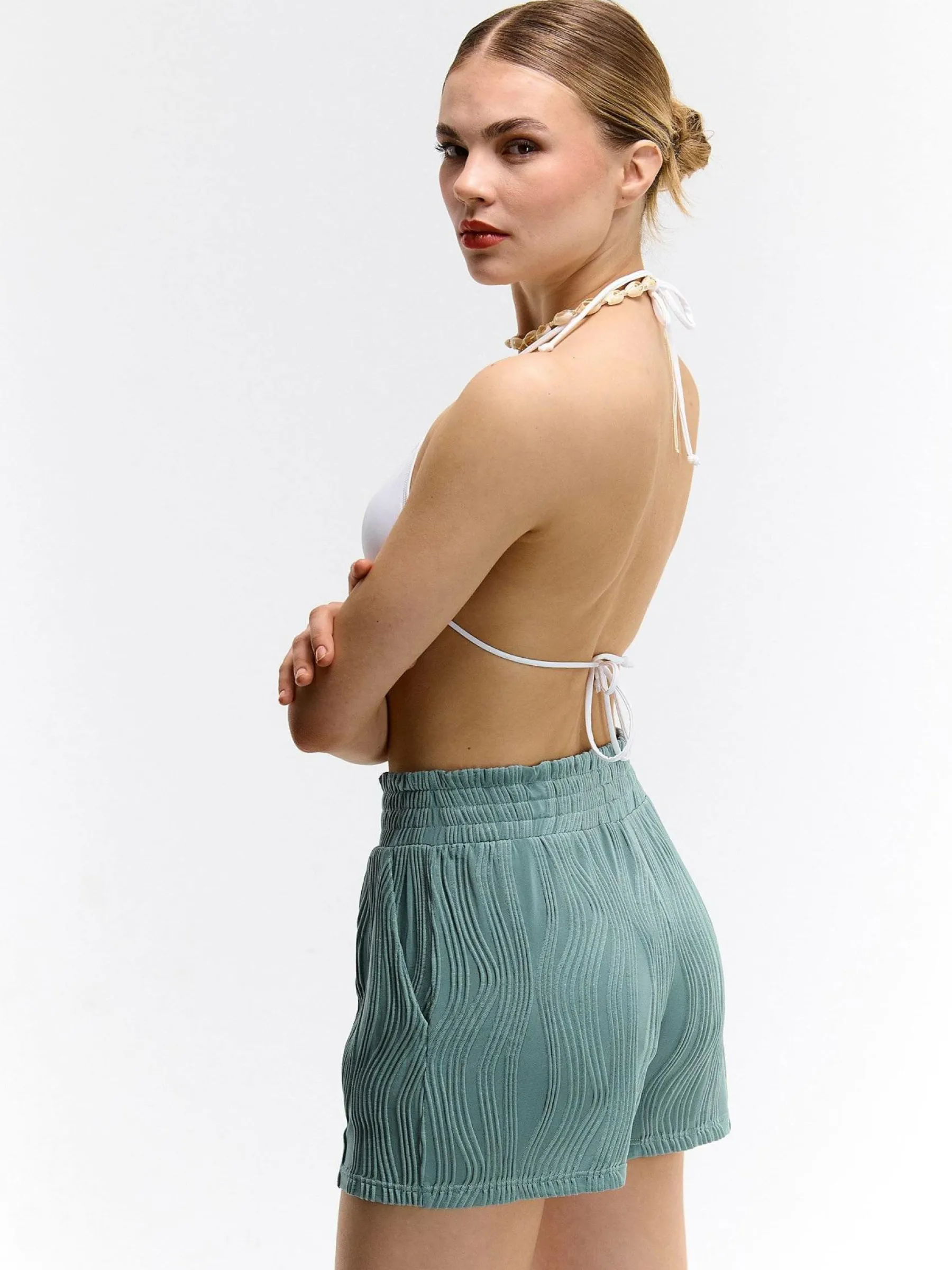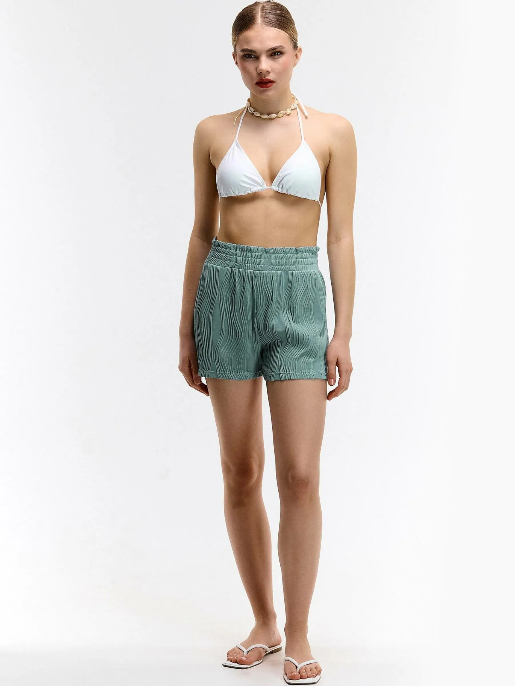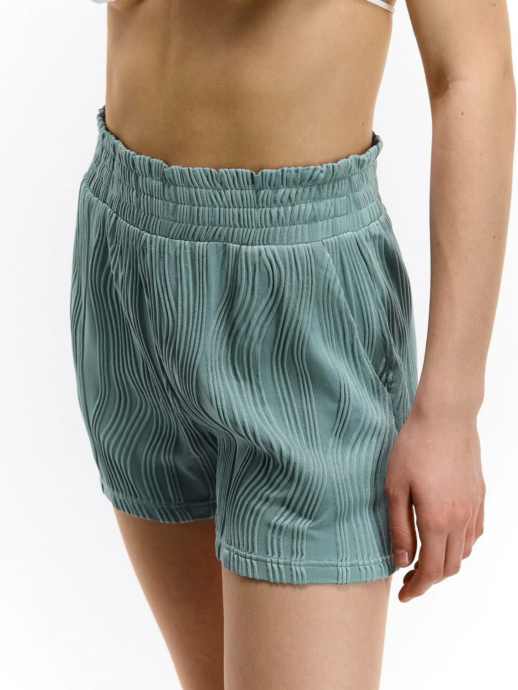 Kolor: zielonyKrój: straightTyp: spodenkiDługość: krótkiPattern style: pojedynczy kolorDetal: z elastyczną opaską…