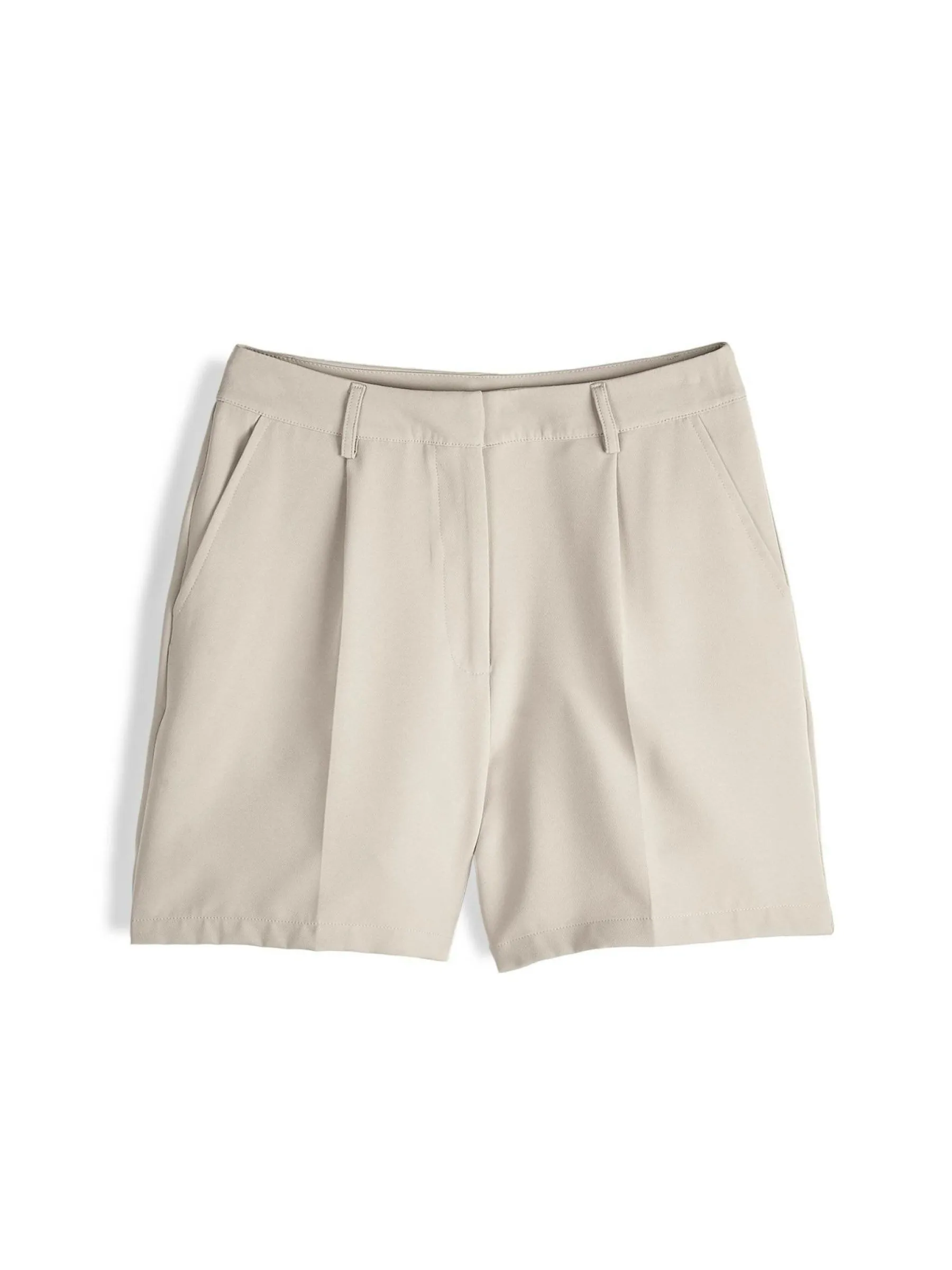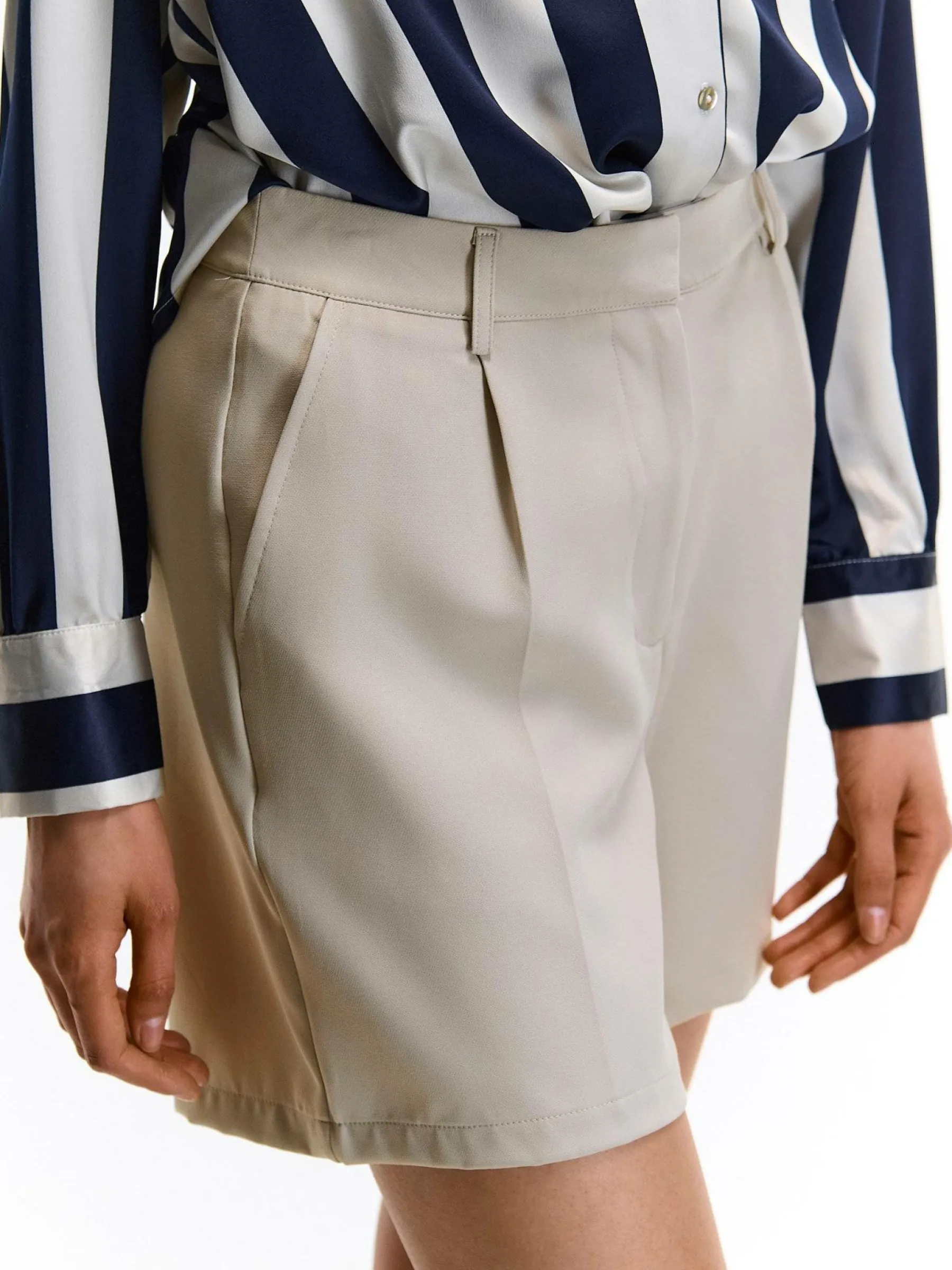 Kolor: beżowyKrój: straight, z wysokim stanemTyp: spodenkiDługość: krótkiPattern style: pojedynczy kolorDetal: na …