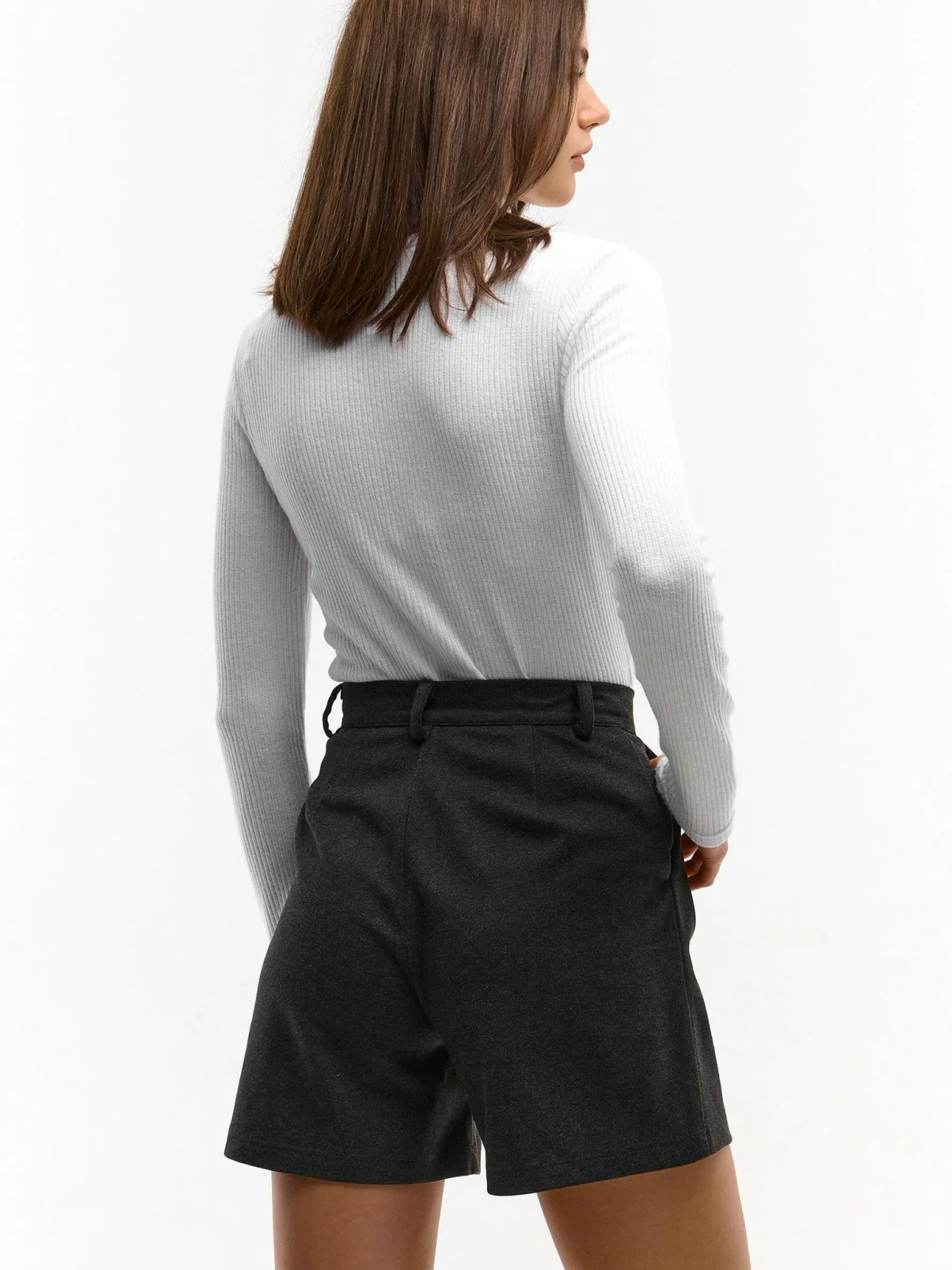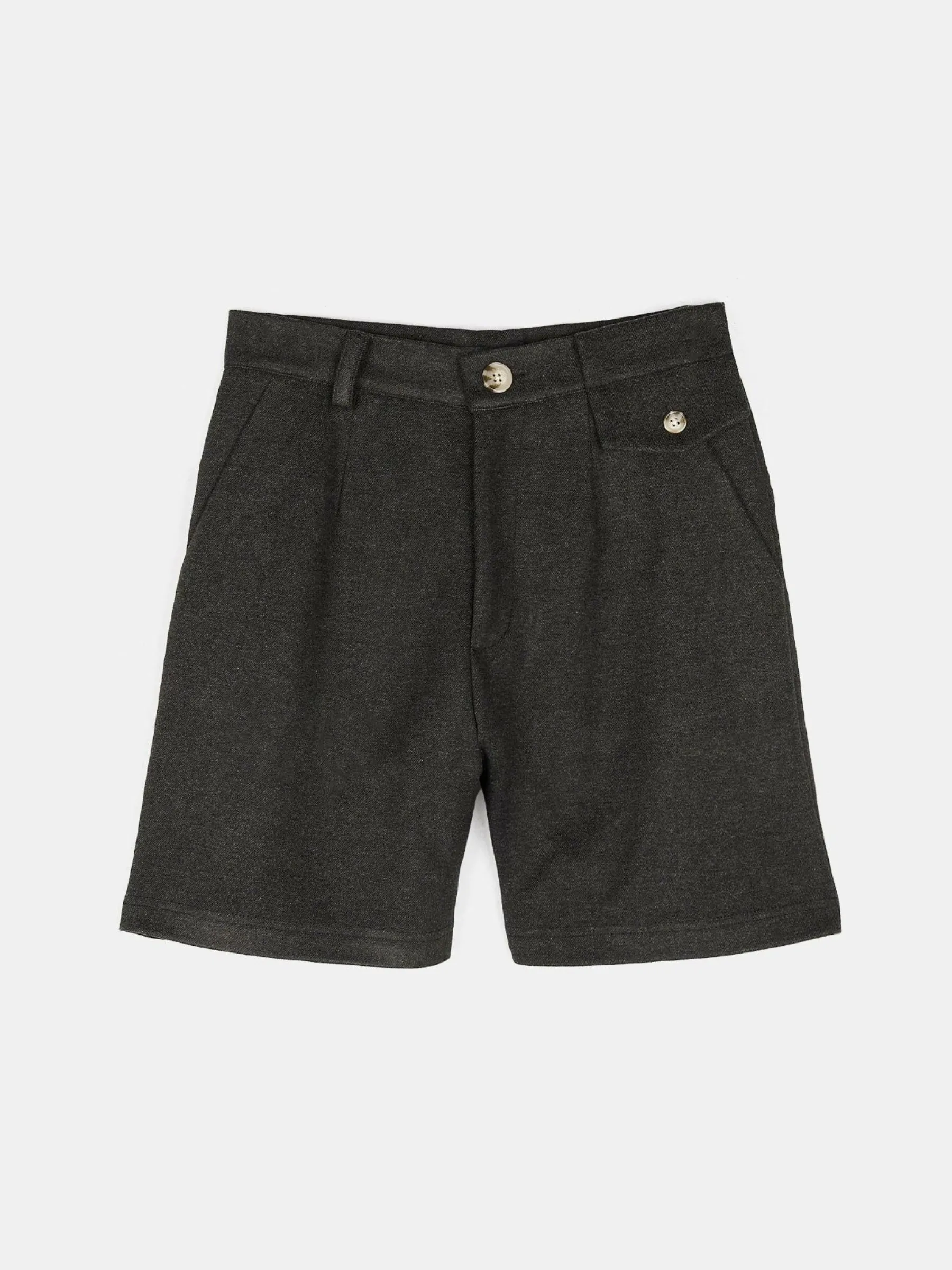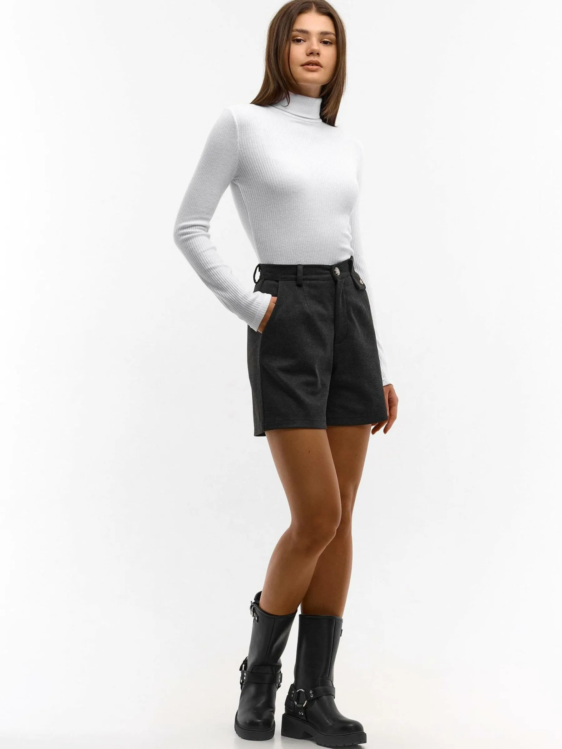 Kolor: szaryKrój: z wysokim stanem, straightTyp: spodenkiDługość: krótkiPattern style: podświetlonyDetal: na zamek…