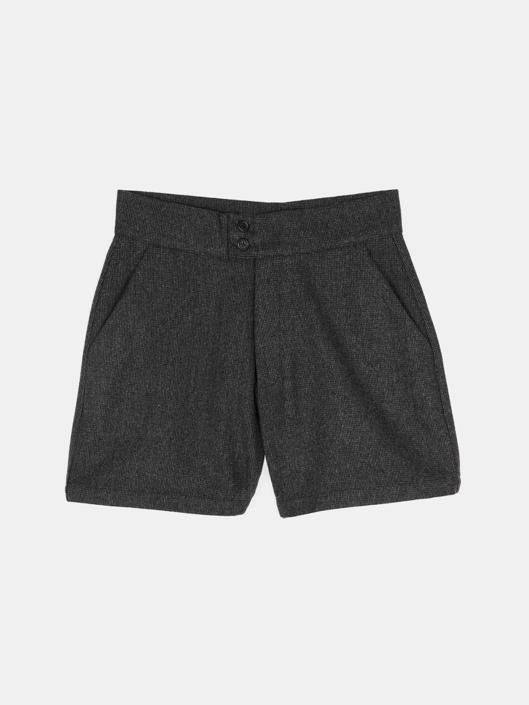 Kolor: szaryKrój: straightTyp: spodenkiDługość: krótkiPattern style: pojedynczy kolorDetal: z kieszeniami, na zamek…