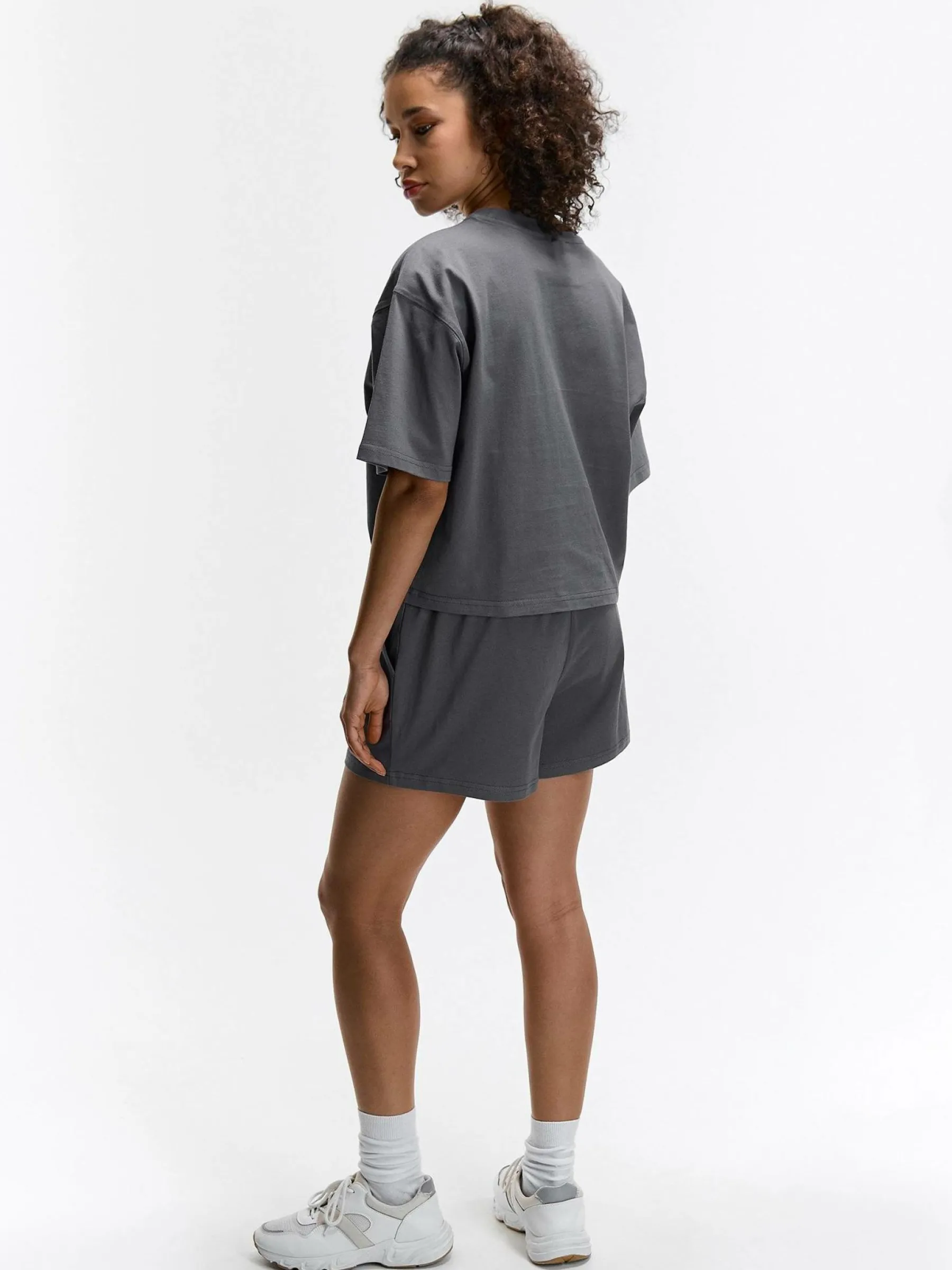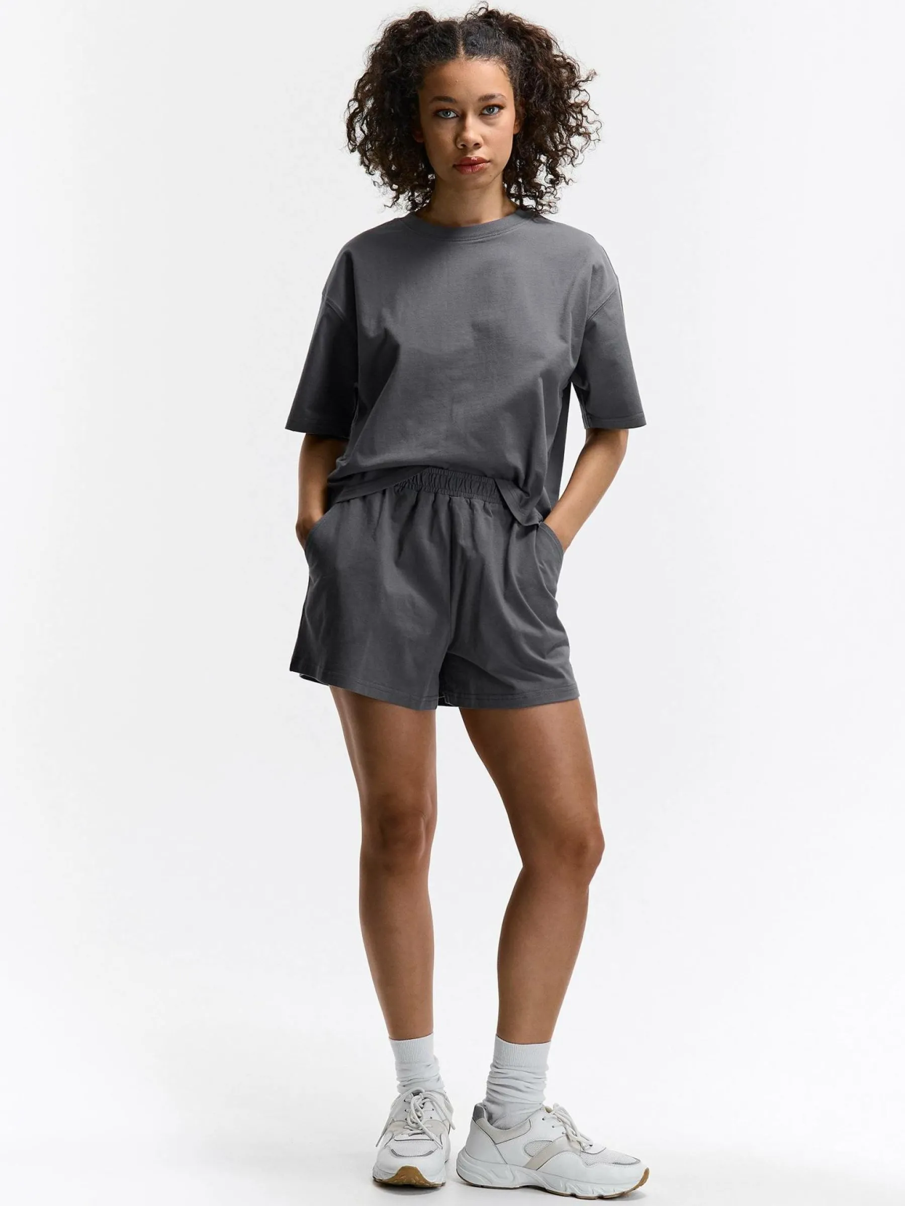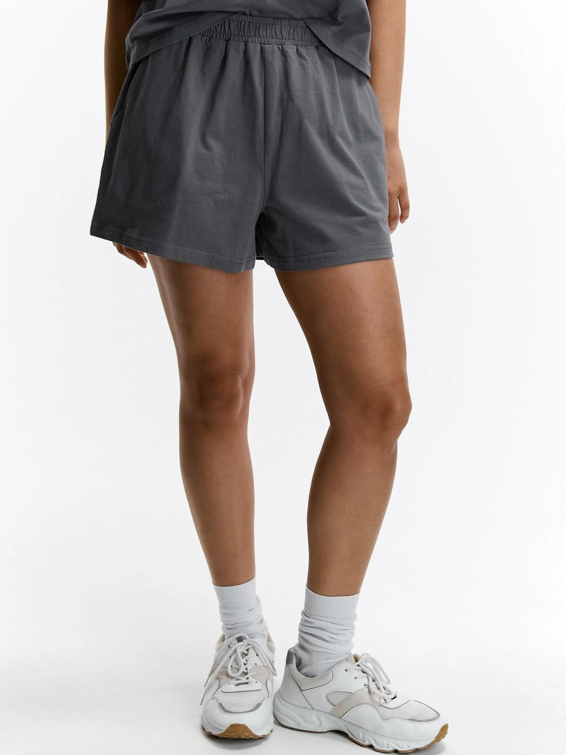 Kolor: szaryKrój: straightTyp: spodenkiDługość: krótkiPattern style: pojedynczy kolorDetal: z kieszeniami, z elasty…