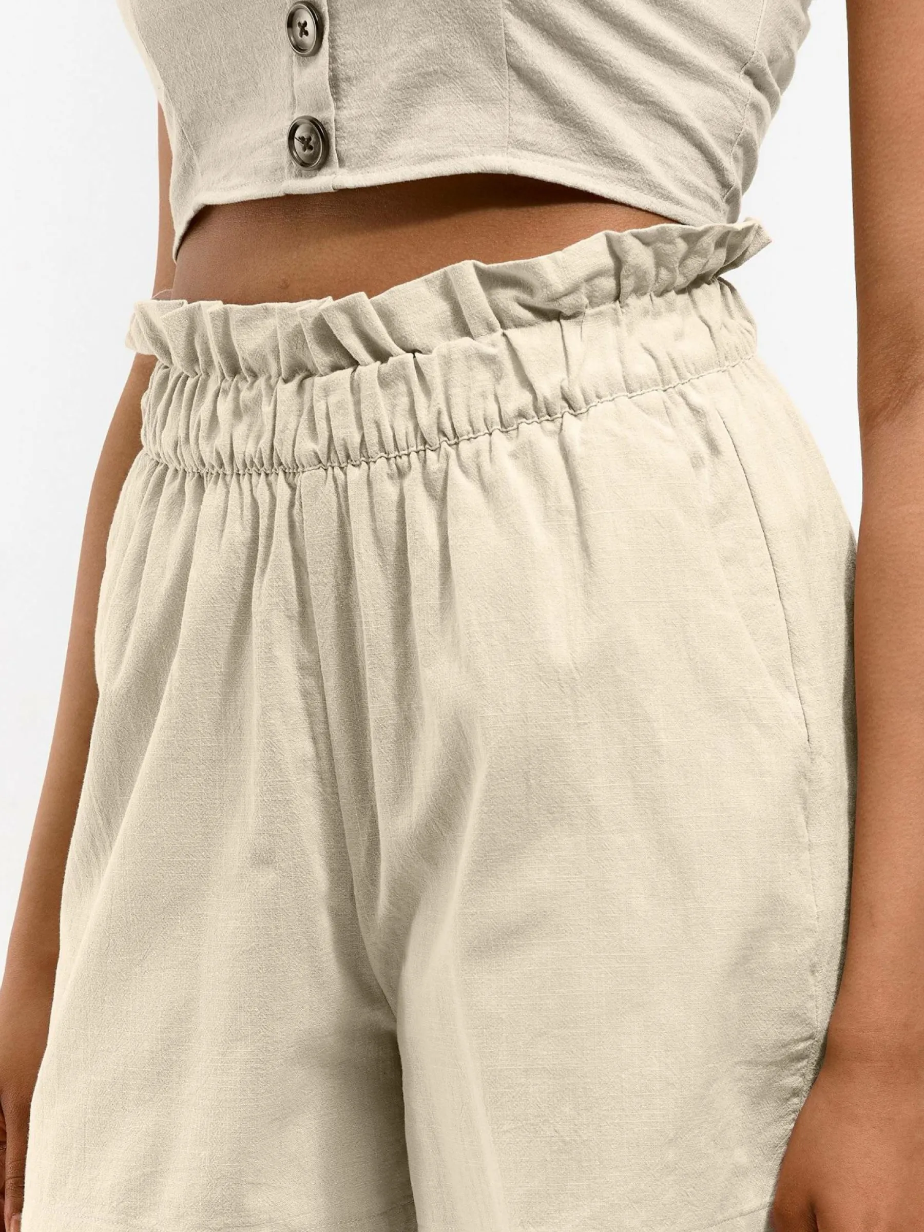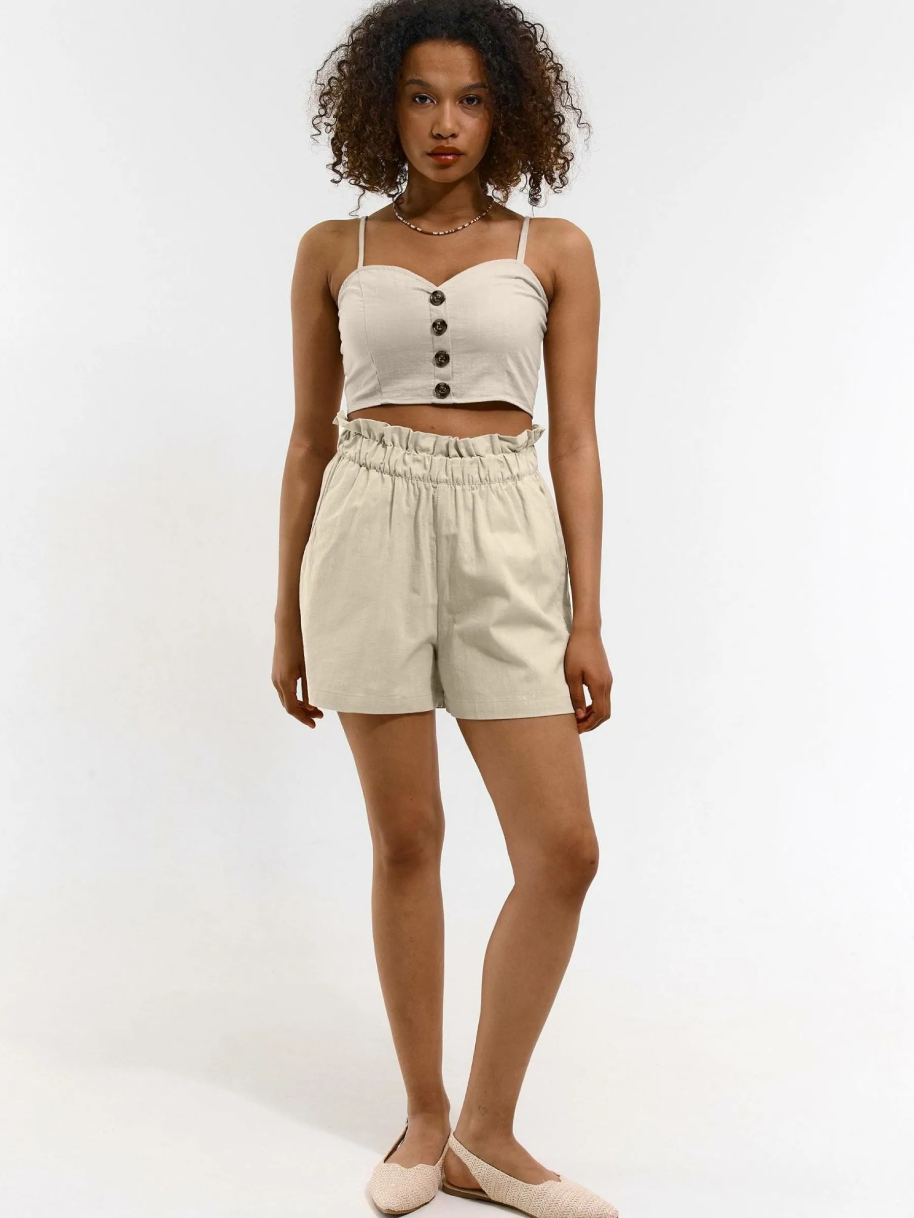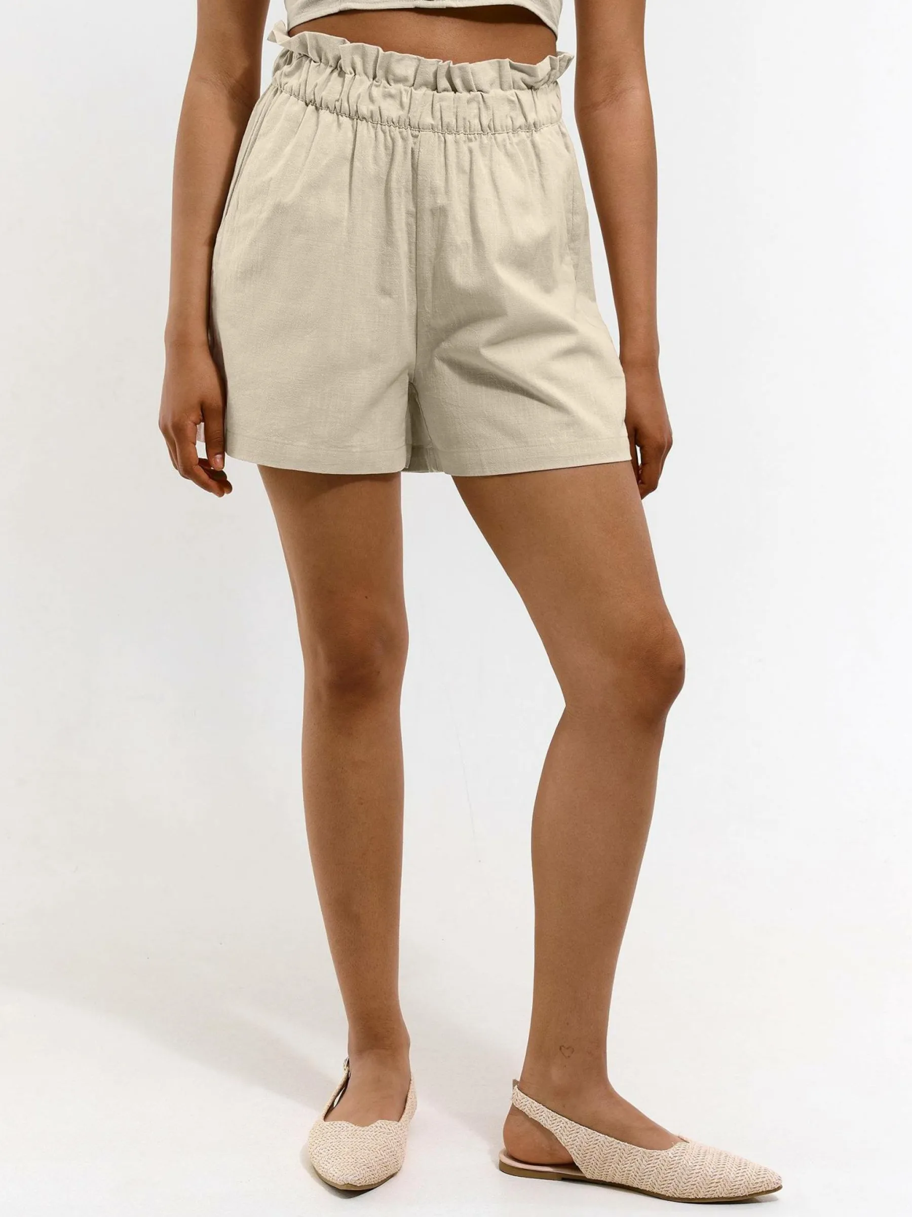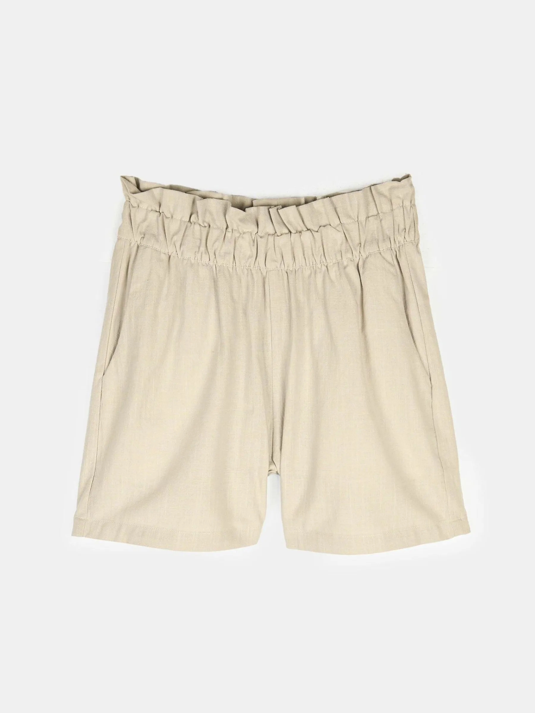 Kolor: beżowyKrój: paperbagTyp: spodenkiDługość: krótkiPattern style: pojedynczy kolorDetal: z elastyczną opaską…
