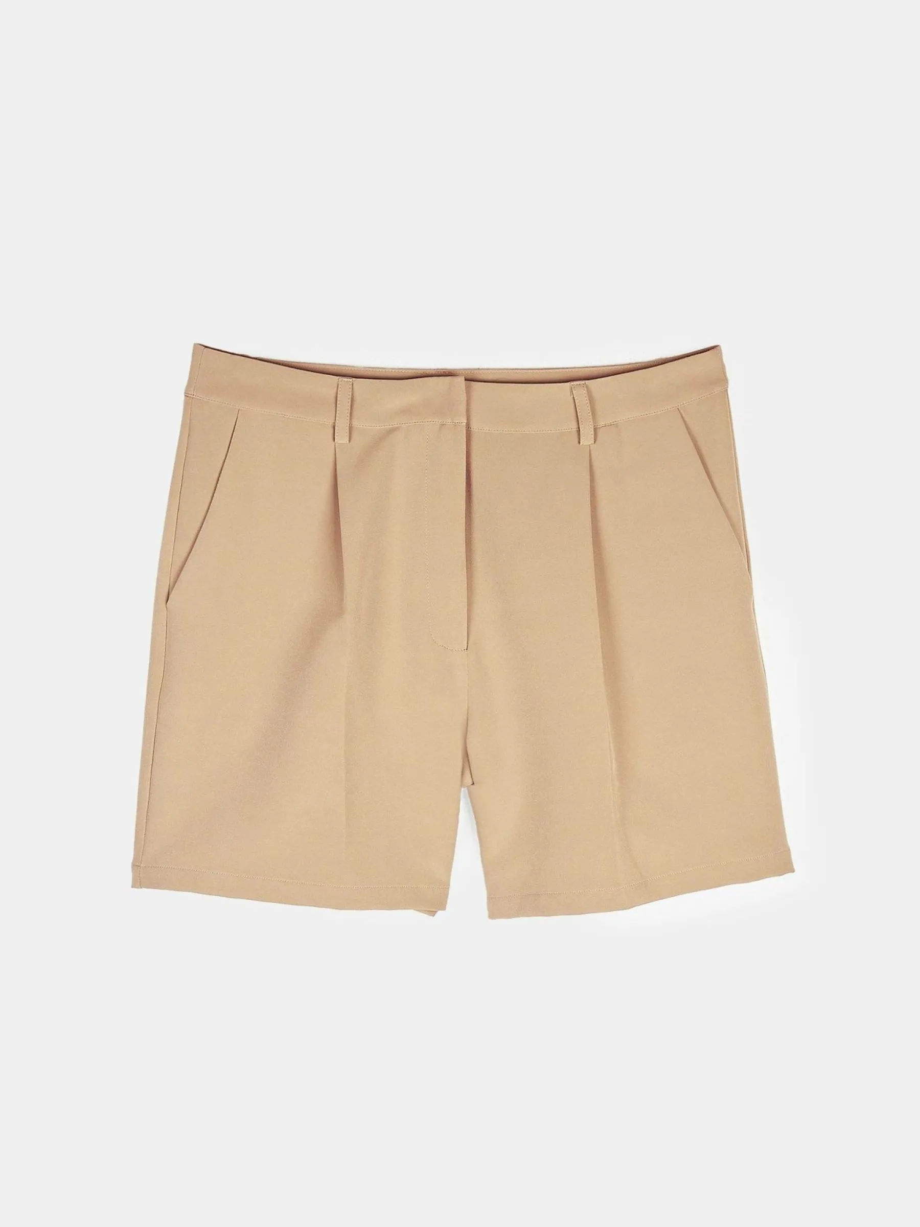 Kolor: beżowyKrój: straightTyp: spodenkiDługość: krótkiPattern style: pojedynczy kolorDetal: na zamek, z kieszenia…
