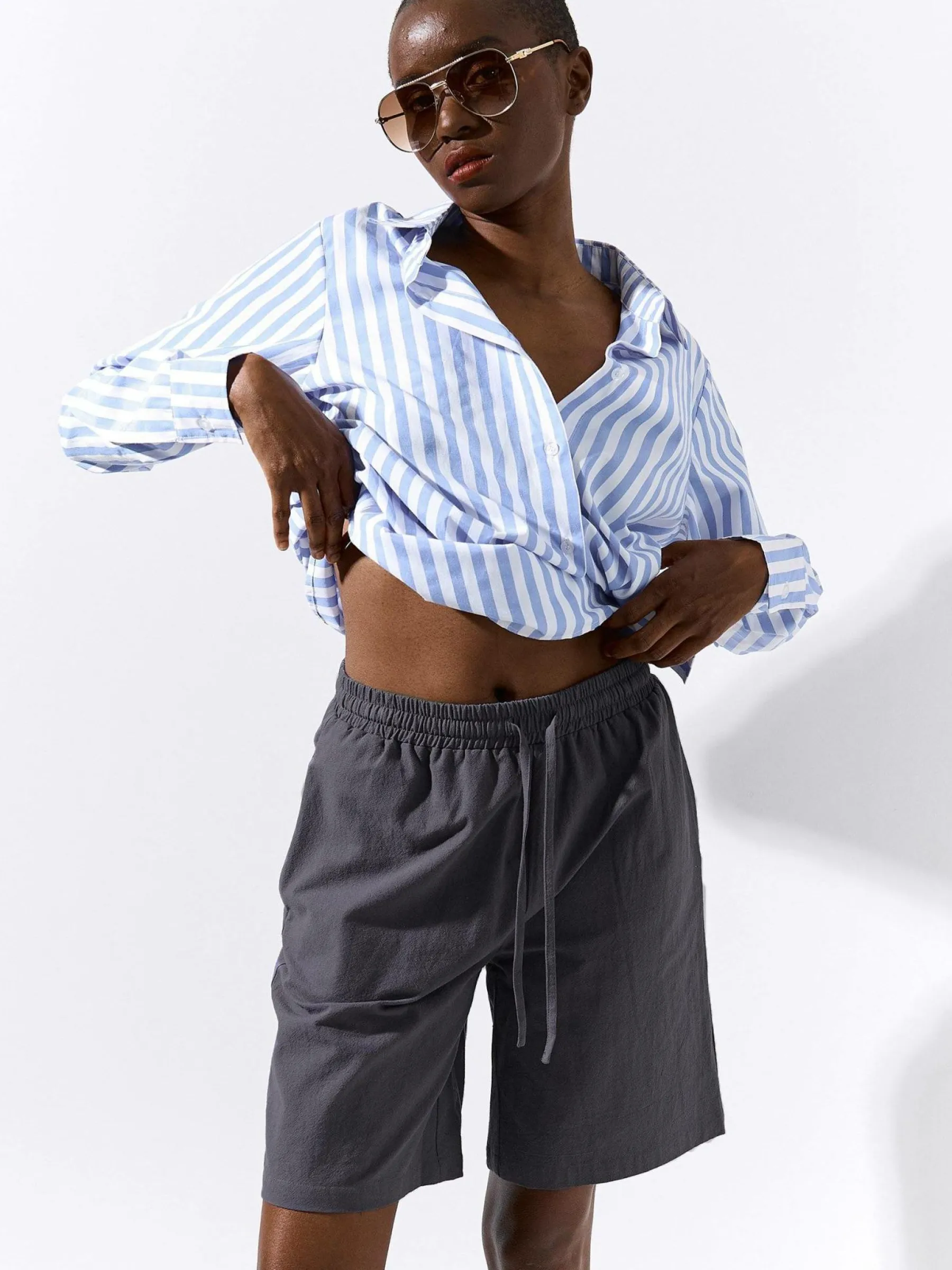 Zdjęcia z modelką mogą nie odpowiadać rzeczywistemu kolorowi produktu.Kolor: szaryKrój: straightTyp: spodenkiDługo…