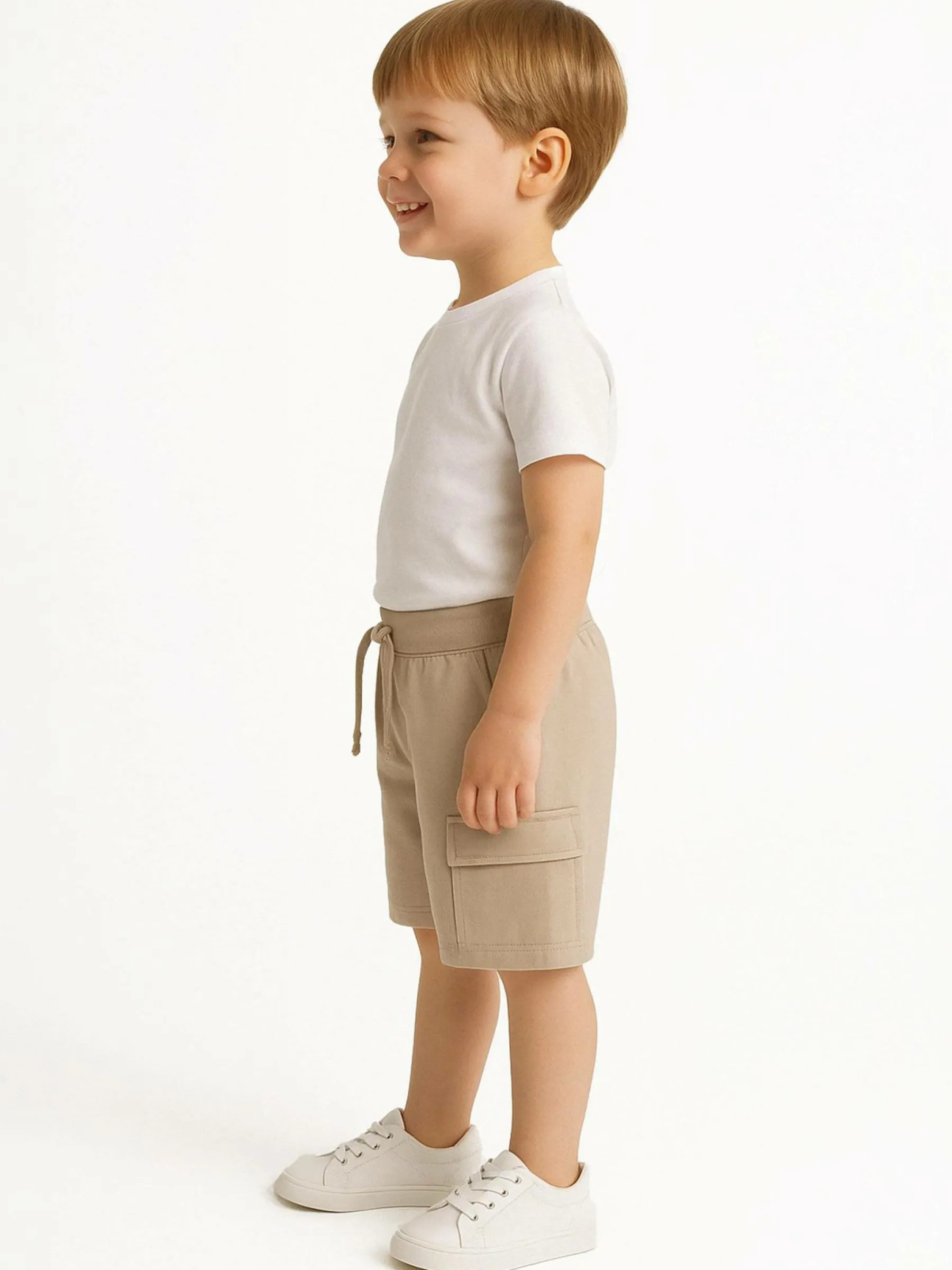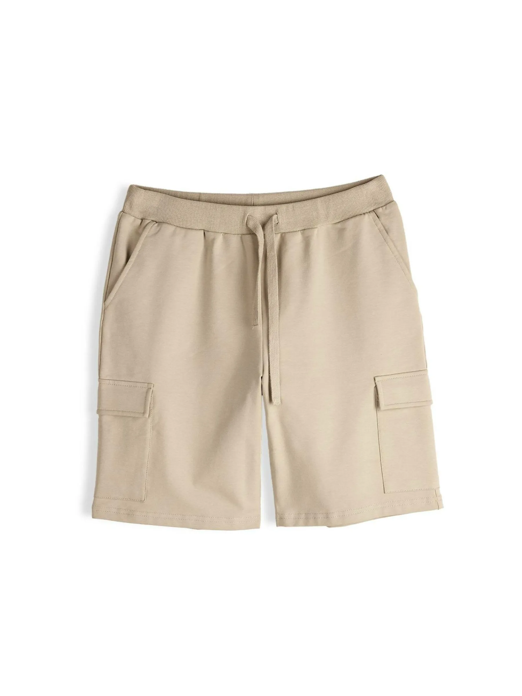 Kolor: beżowyKrój: regularTyp: spodenkiDługość: krótkiPattern style: pojedynczy kolorDetal: ze sznurowaniem, z kie…