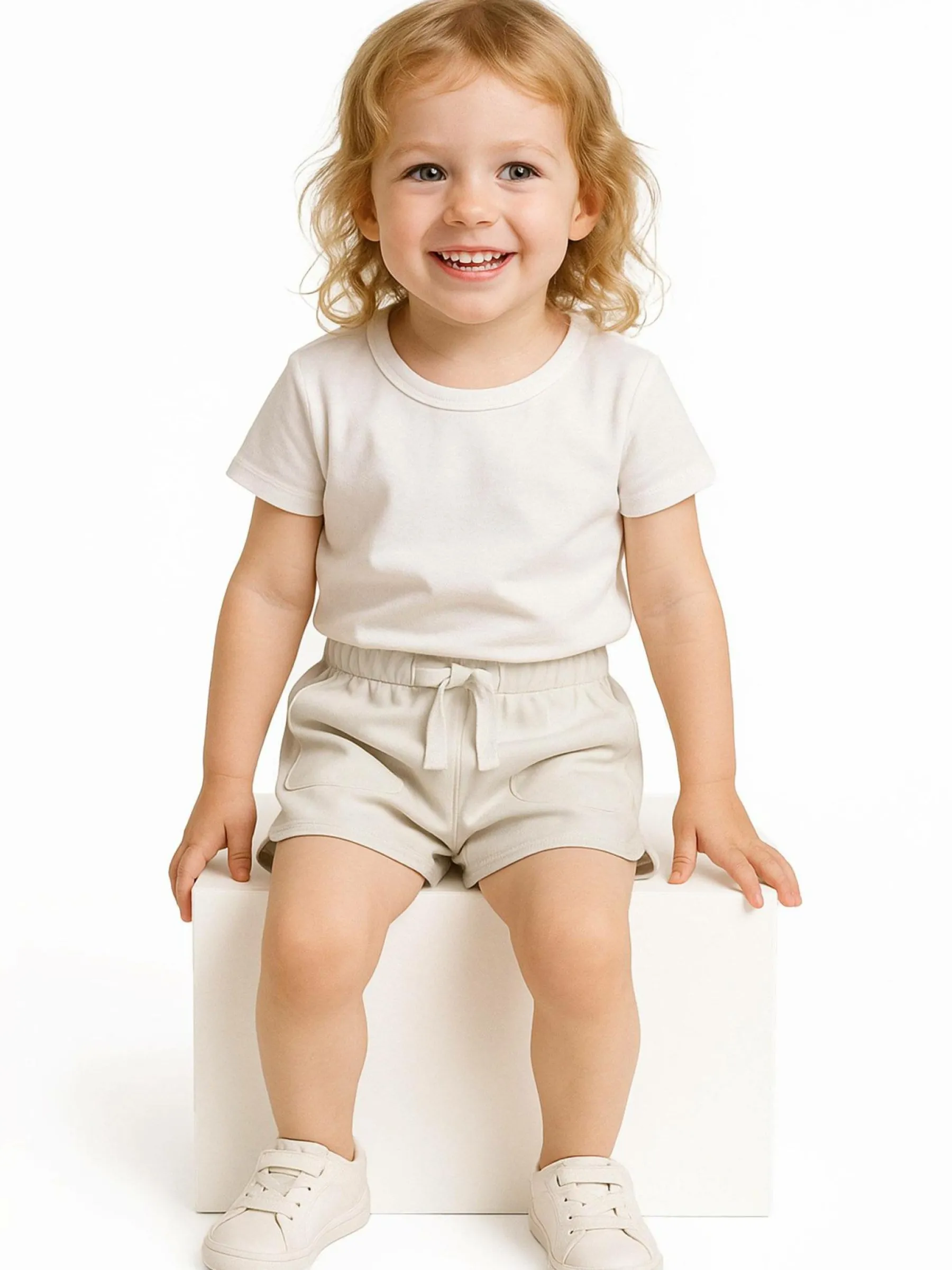 Kolor: beżowyKrój: straightTyp: spodenkiDługość: krótkiPattern style: pojedynczy kolorDetal: ze sznurowaniem, z ki…