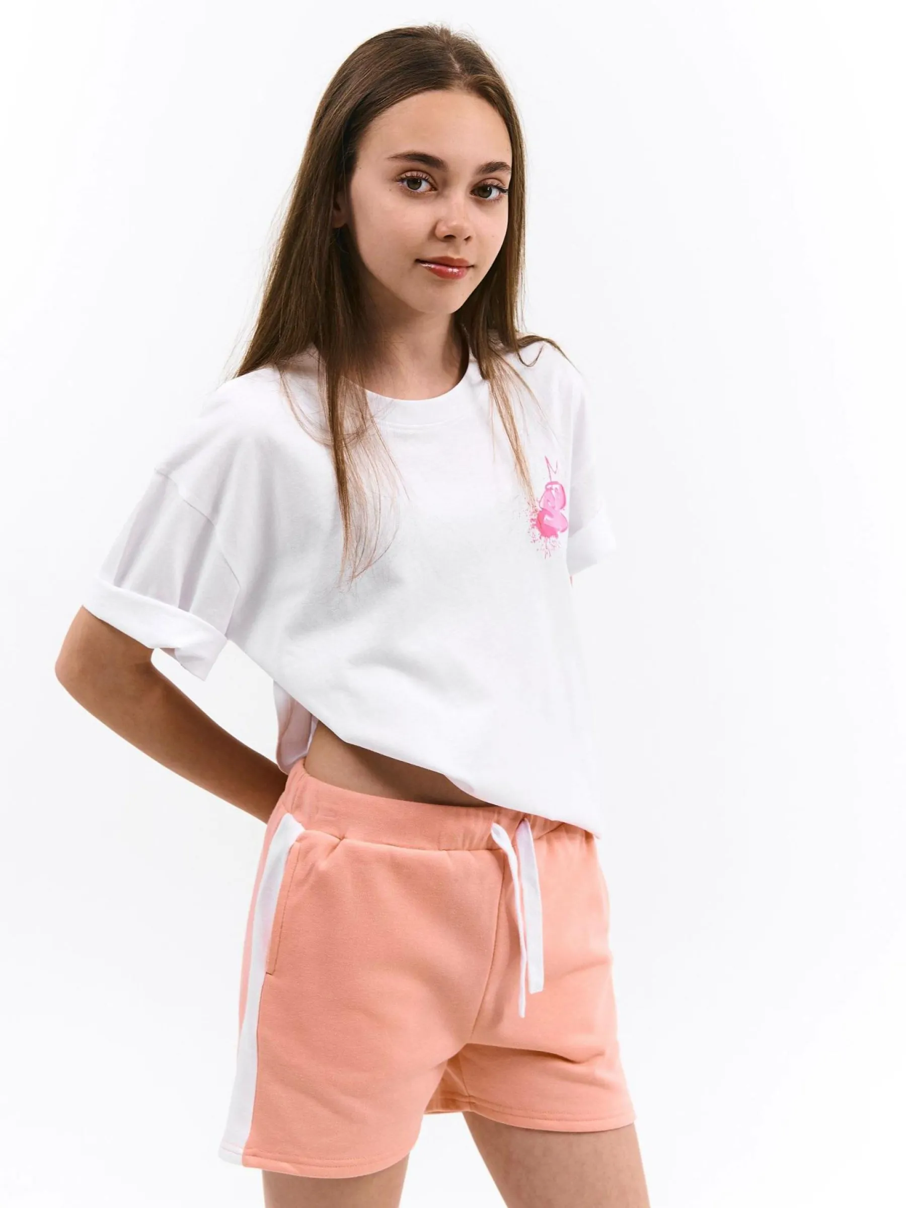 Kolor: różowyKrój: regularTyp: spodenkiDługość: krótkiPattern style: pojedynczy kolorDetal: ze sznurowaniem, z pa…