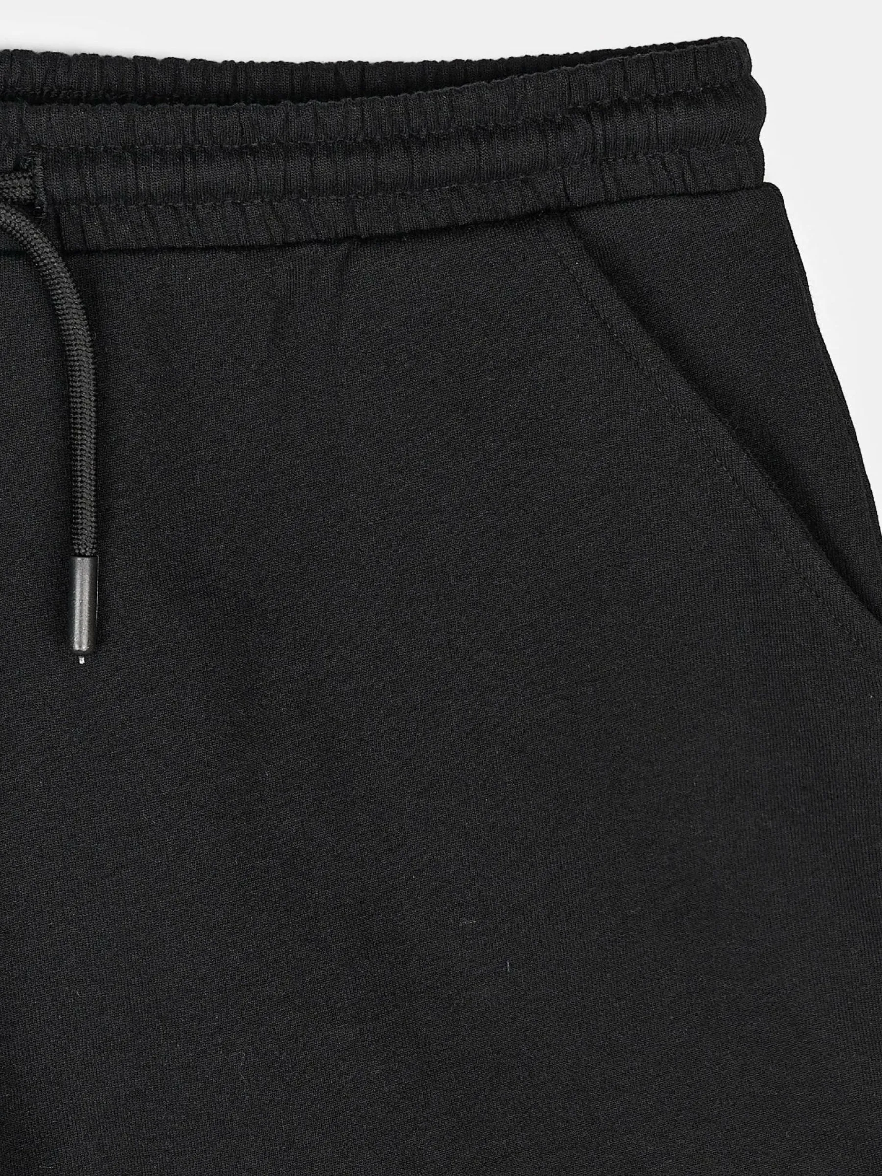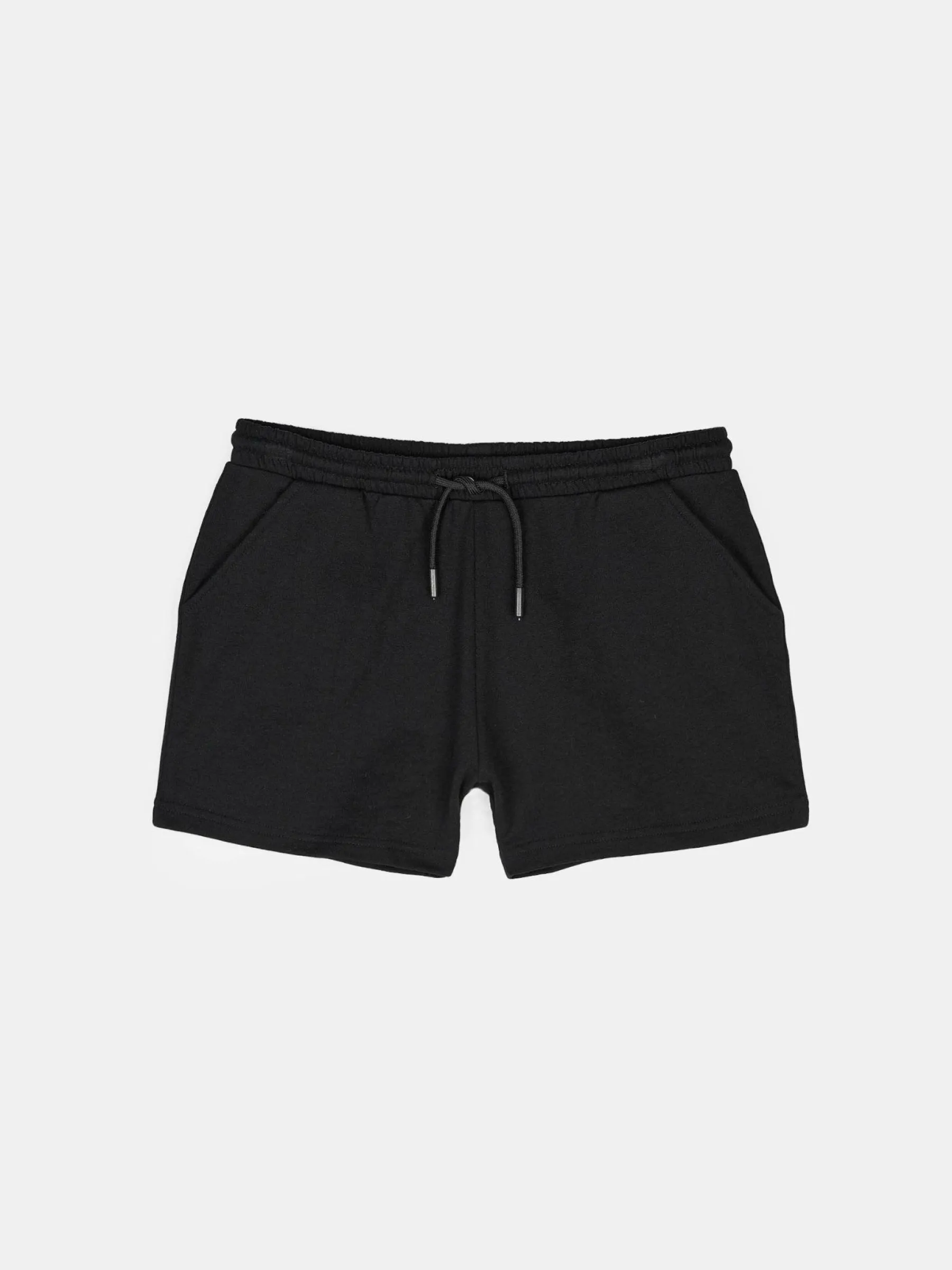 Kolor: czarnyKrój: straightTyp: spodenkiDługość: krótkiPattern style: pojedynczy kolorDetal: ze sznurowaniem, z kie…