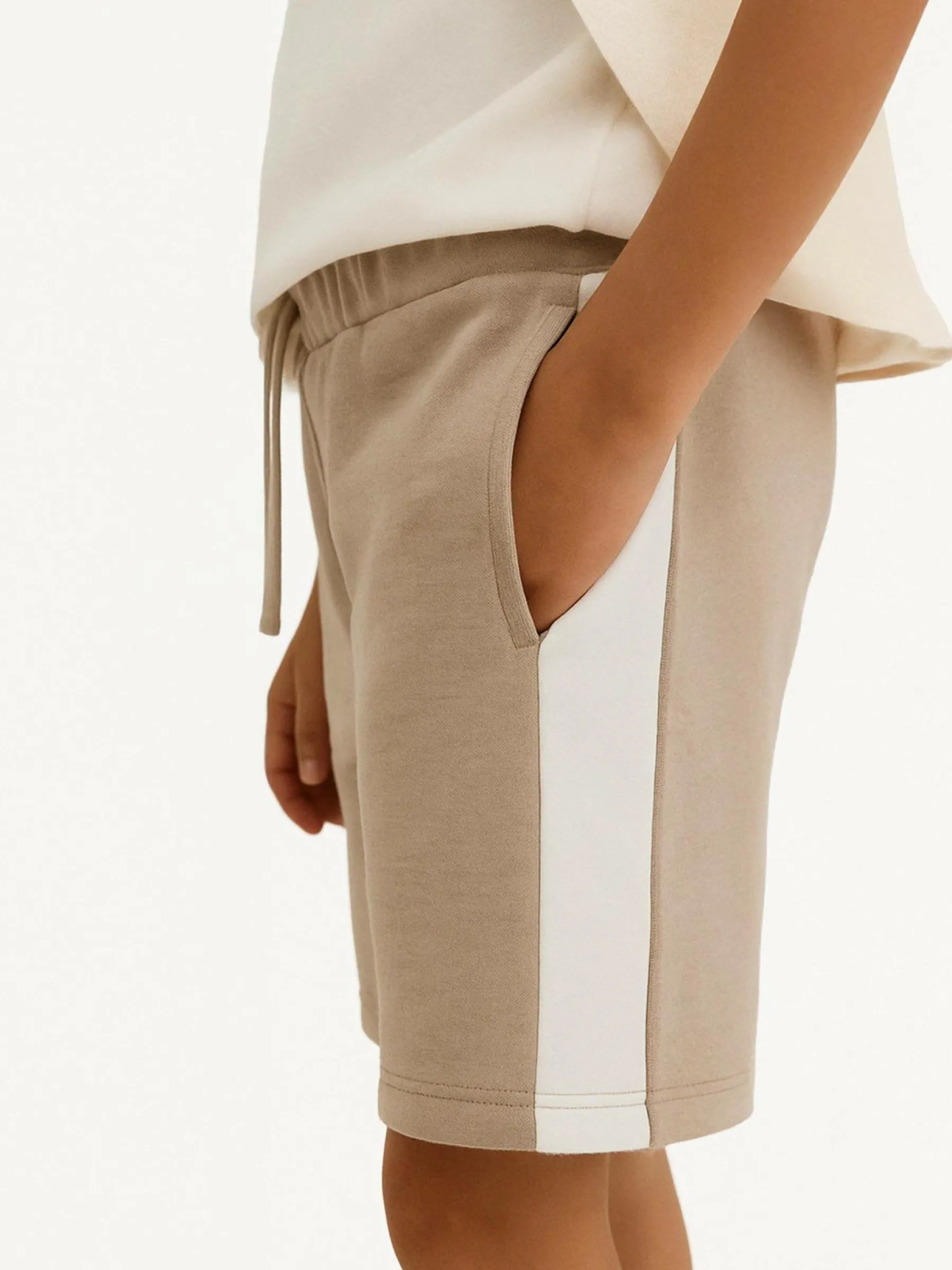 Kolor: beżowyKrój: regularTyp: spodenkiDługość: krótkiPattern style: pojedynczy kolorDetal: ze sznurowaniem, z pas…