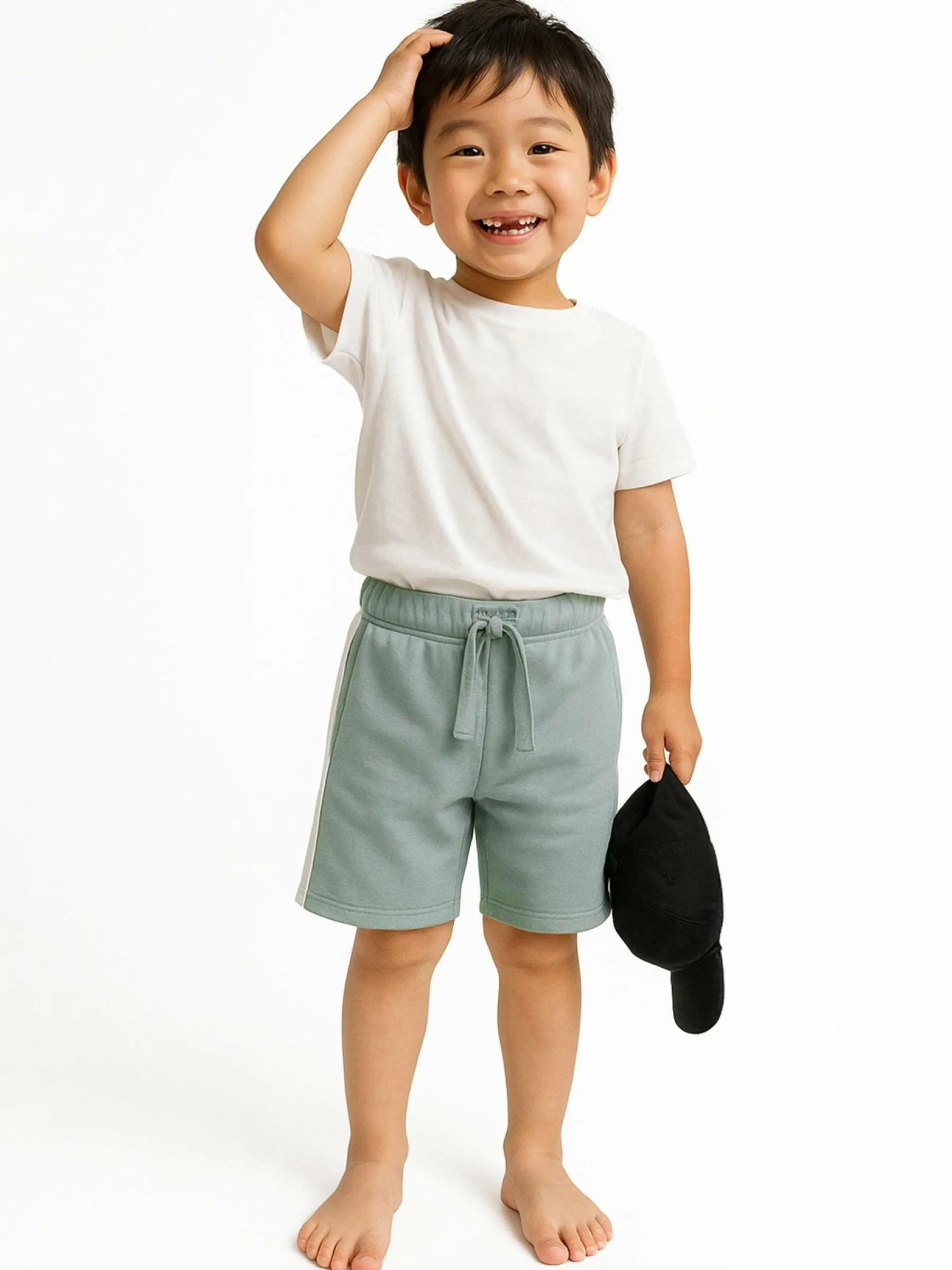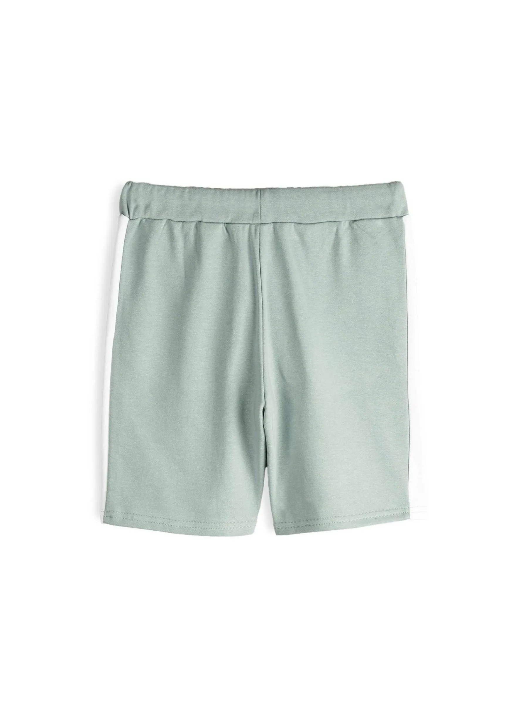 Kolor: szary, zielonyKrój: regularTyp: spodenkiDługość: krótkiPattern style: pojedynczy kolorDetal: ze sznurowaniem…