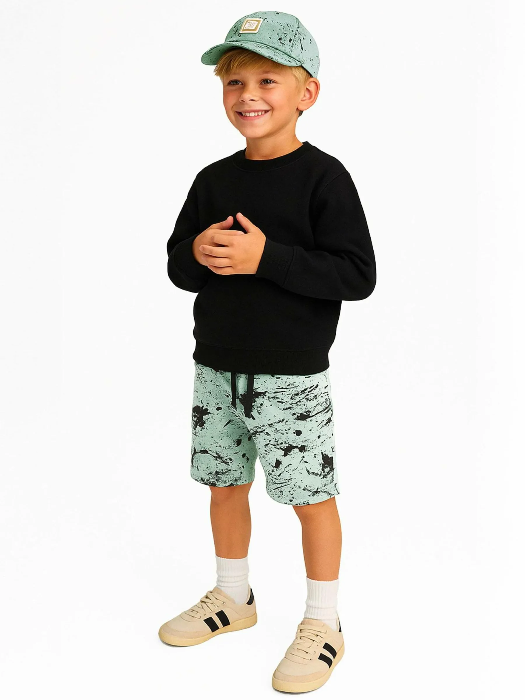 Kolor: szary, zielonyKrój: regularTyp: spodenkiDługość: krótkiPattern style: z nadrukiemDetal: ze sznurowaniemMater…