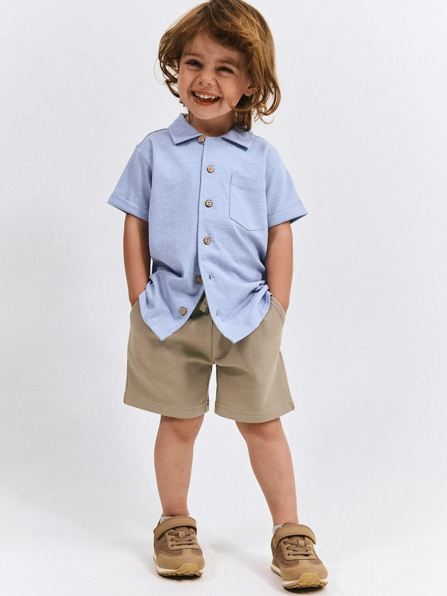 Kolor: beżowyKrój: regularTyp: spodenkiDługość: krótkiPattern style: pojedynczy kolorDetal: ze sznurowaniem, z kie…