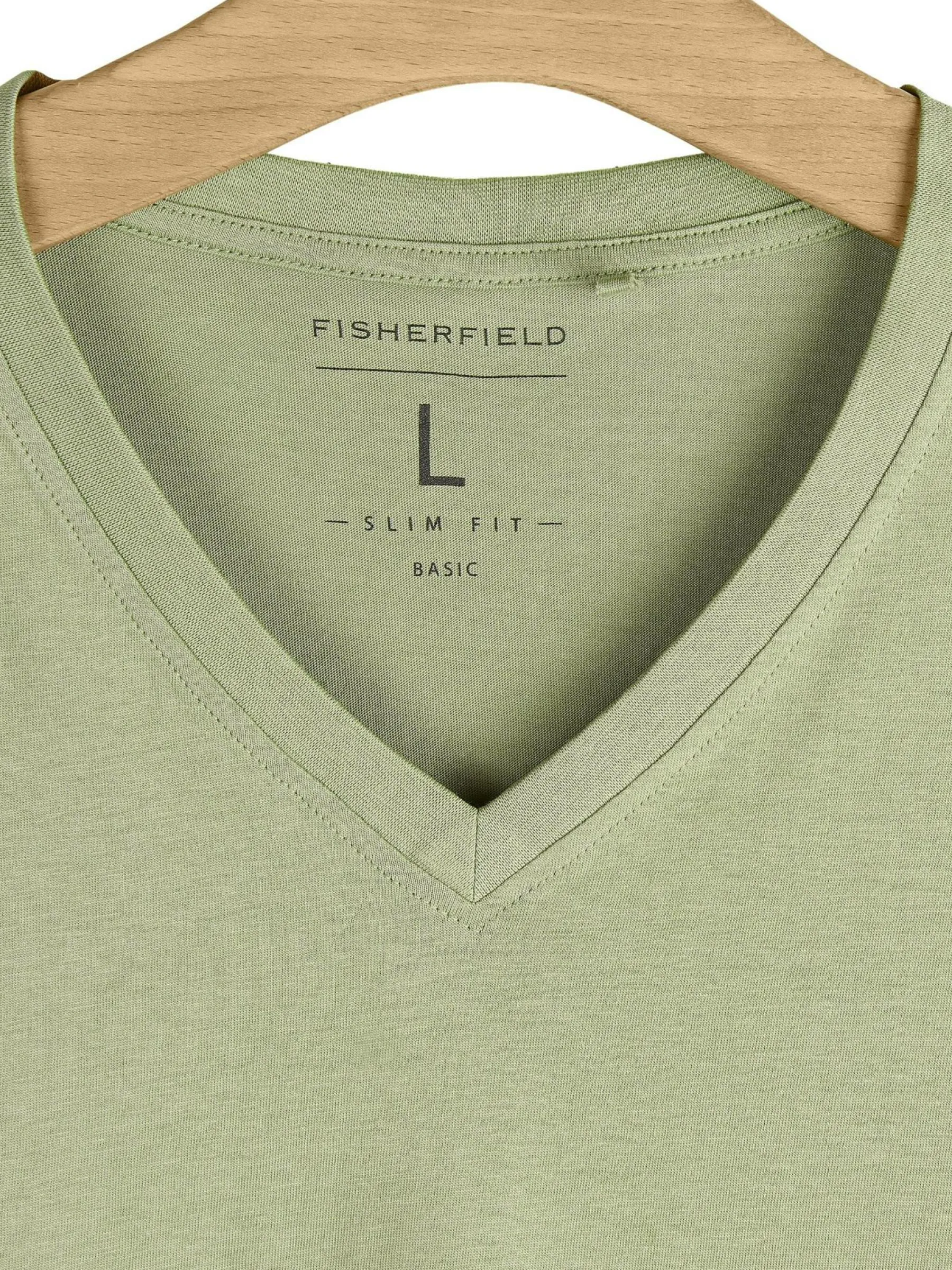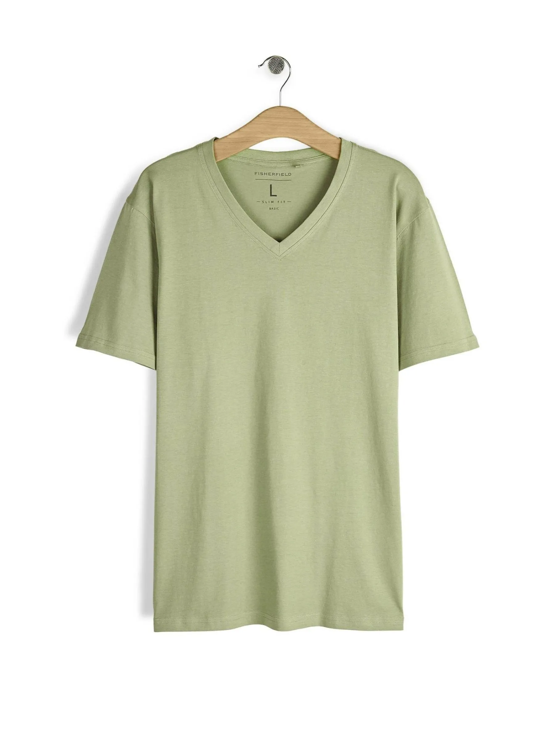 Kolor: zielonyKrój: regularTyp: koszulkaRekaw: krótki rękawPattern style: pojedynczy kolorDetal: v-neck, nad głowąM…