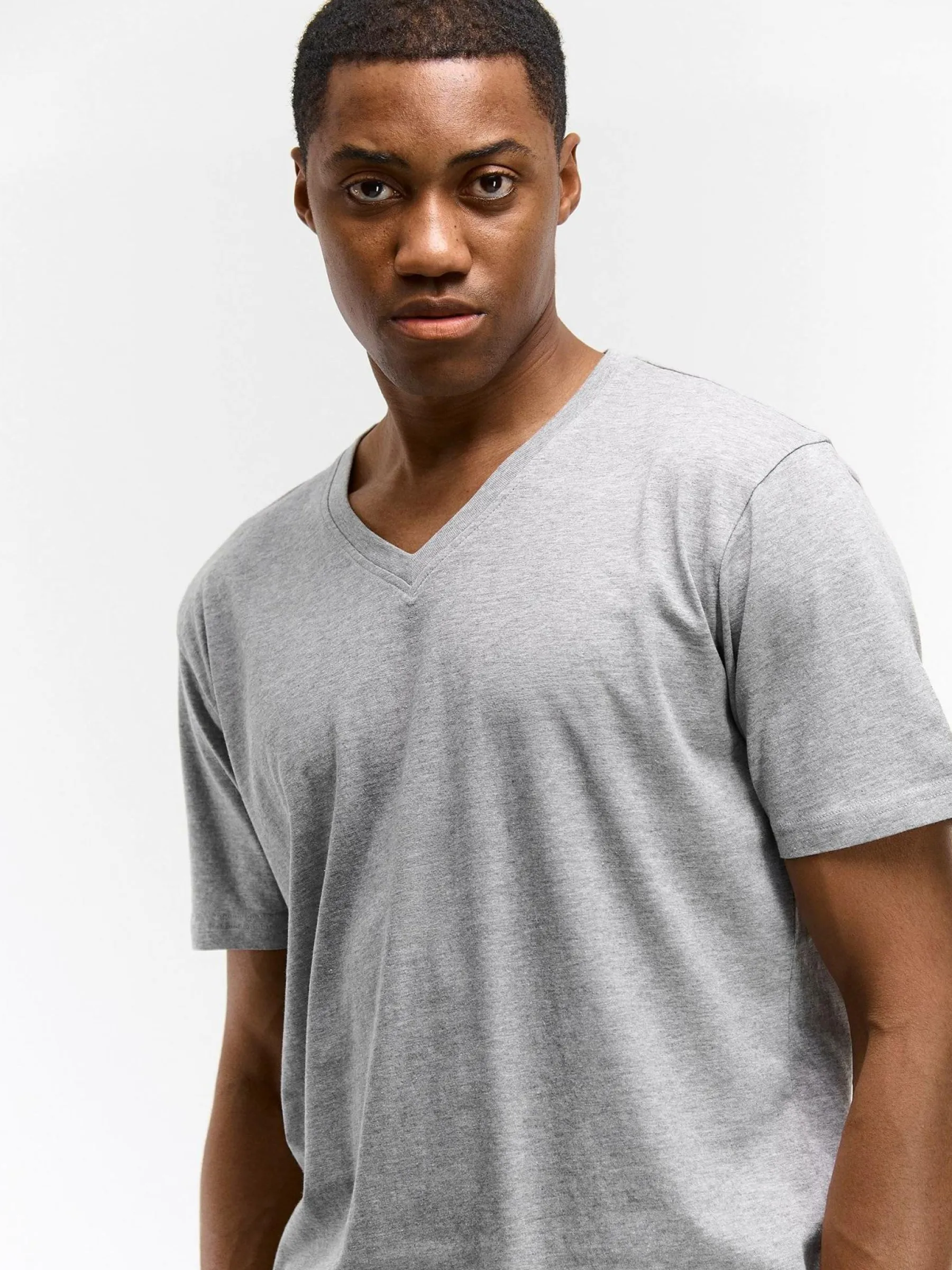 Kolor: szaryKrój: regularTyp: koszulkaRekaw: krótki rękawPattern style: pojedynczy kolorDetal: nad głową, v-neckMat…