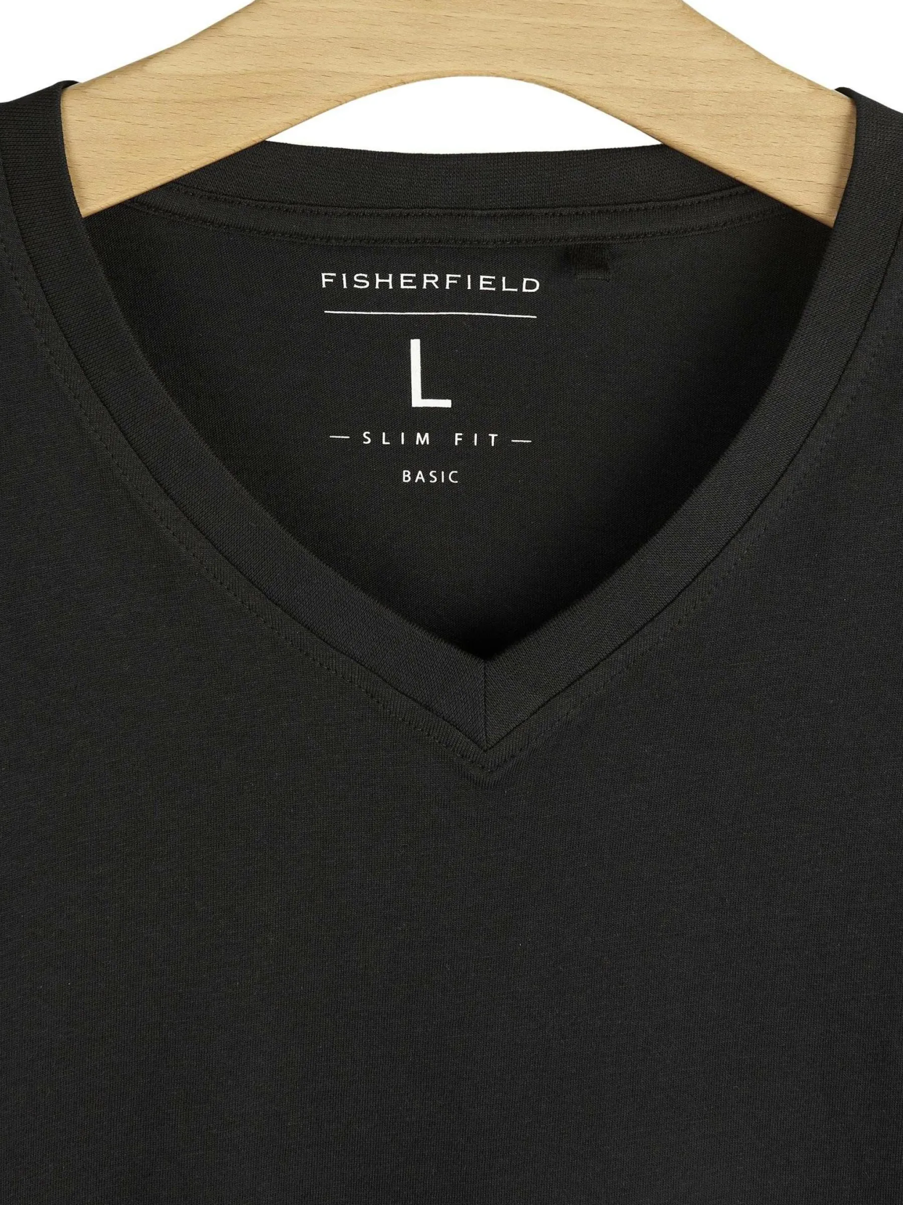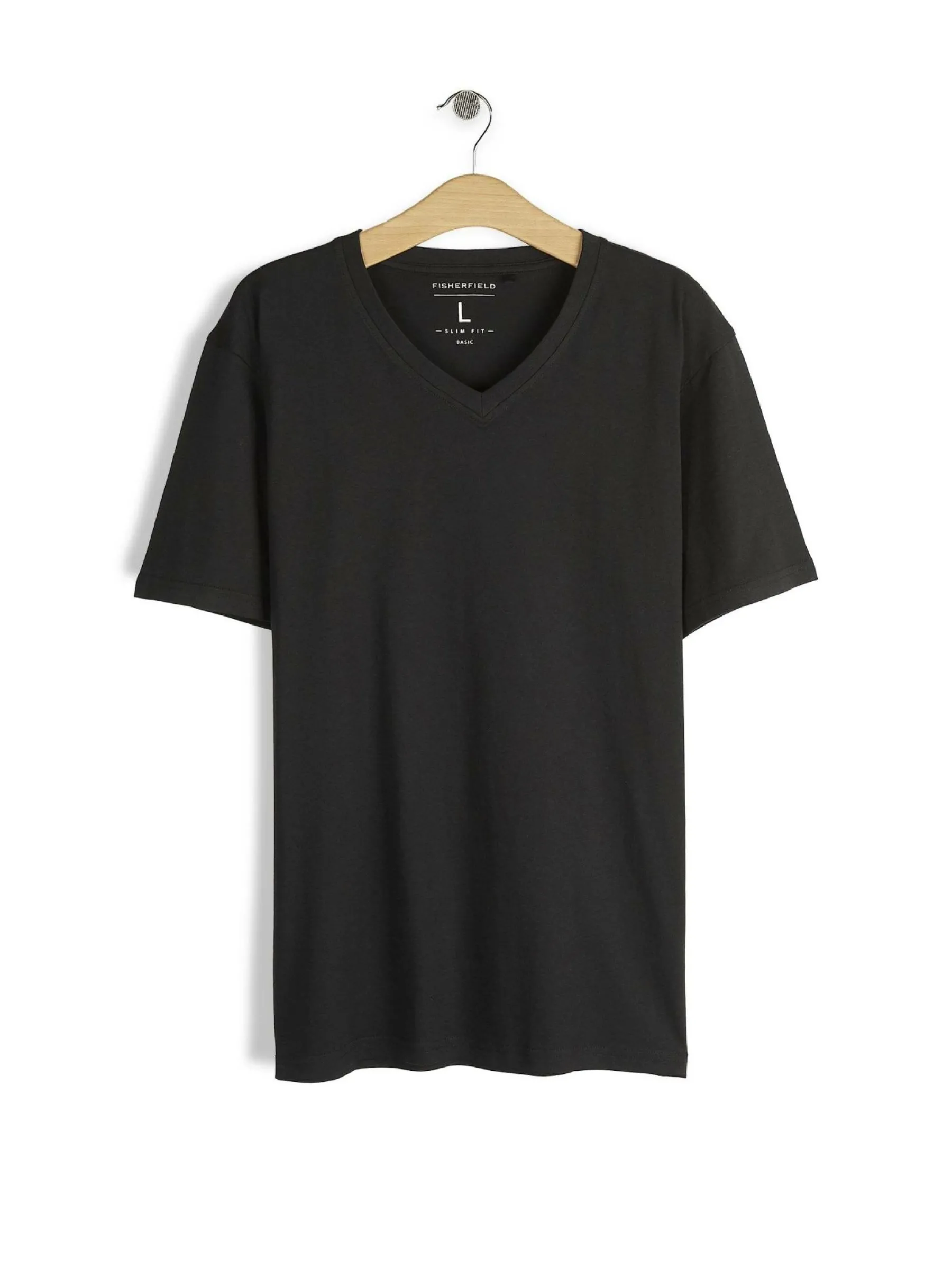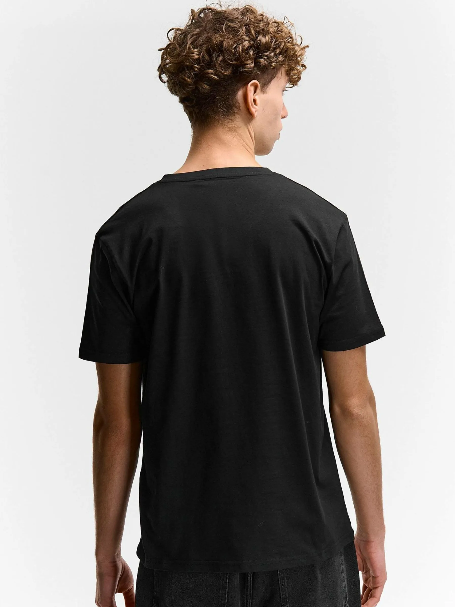 Kolor: czarnyKrój: regularTyp: koszulkaRekaw: krótki rękawPattern style: pojedynczy kolorDetal: nad głową, v-neckMa…