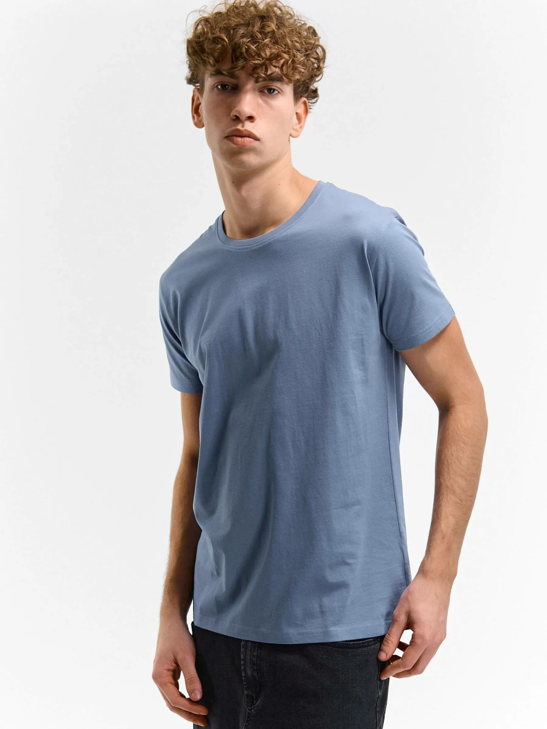 Kolor: niebieskiKrój: regularTyp: koszulkaRekaw: krótki rękawPattern style: pojedynczy kolorDetal: nad głowąMateria…