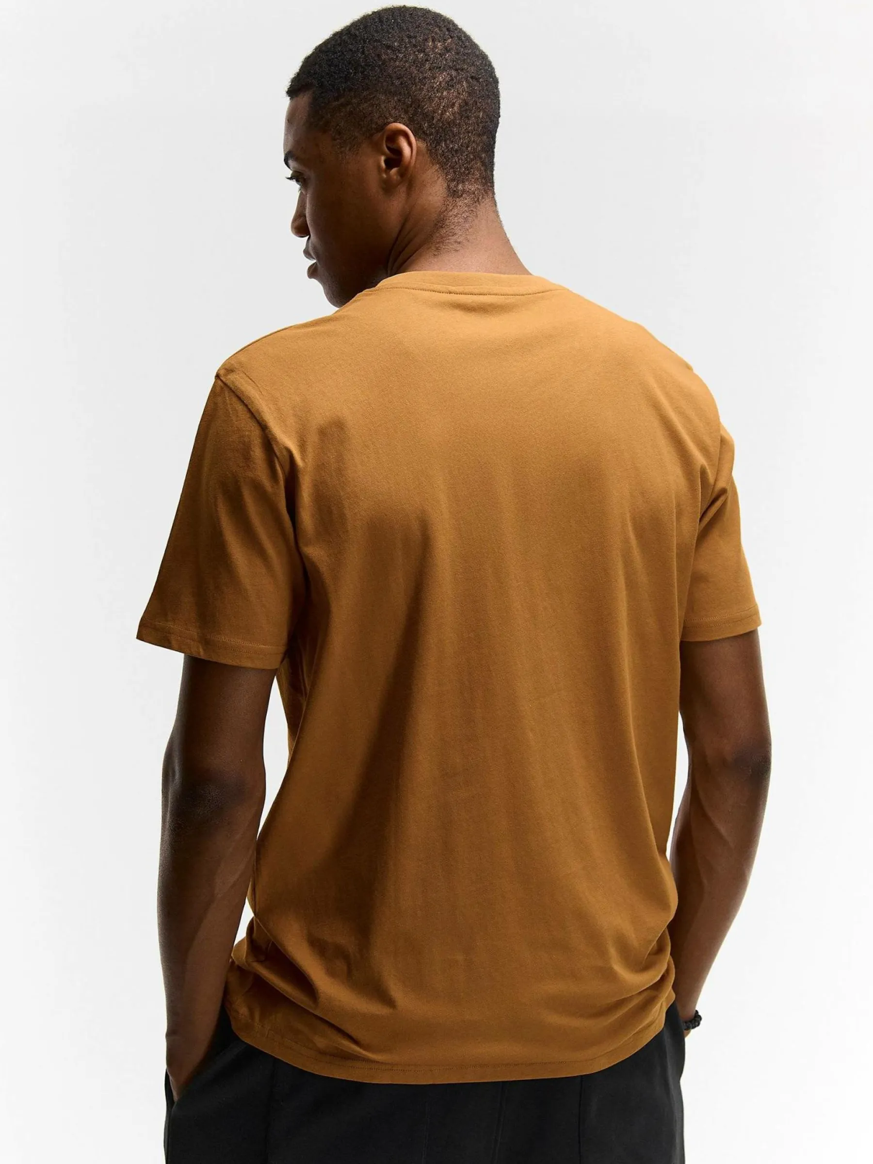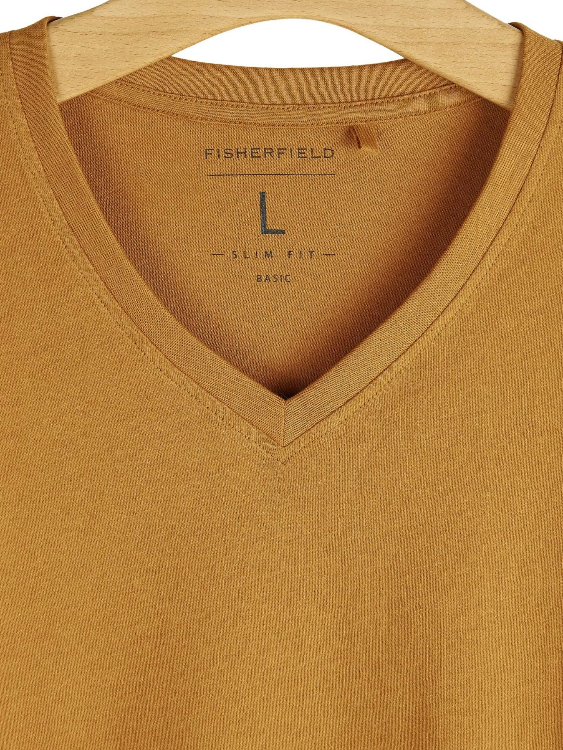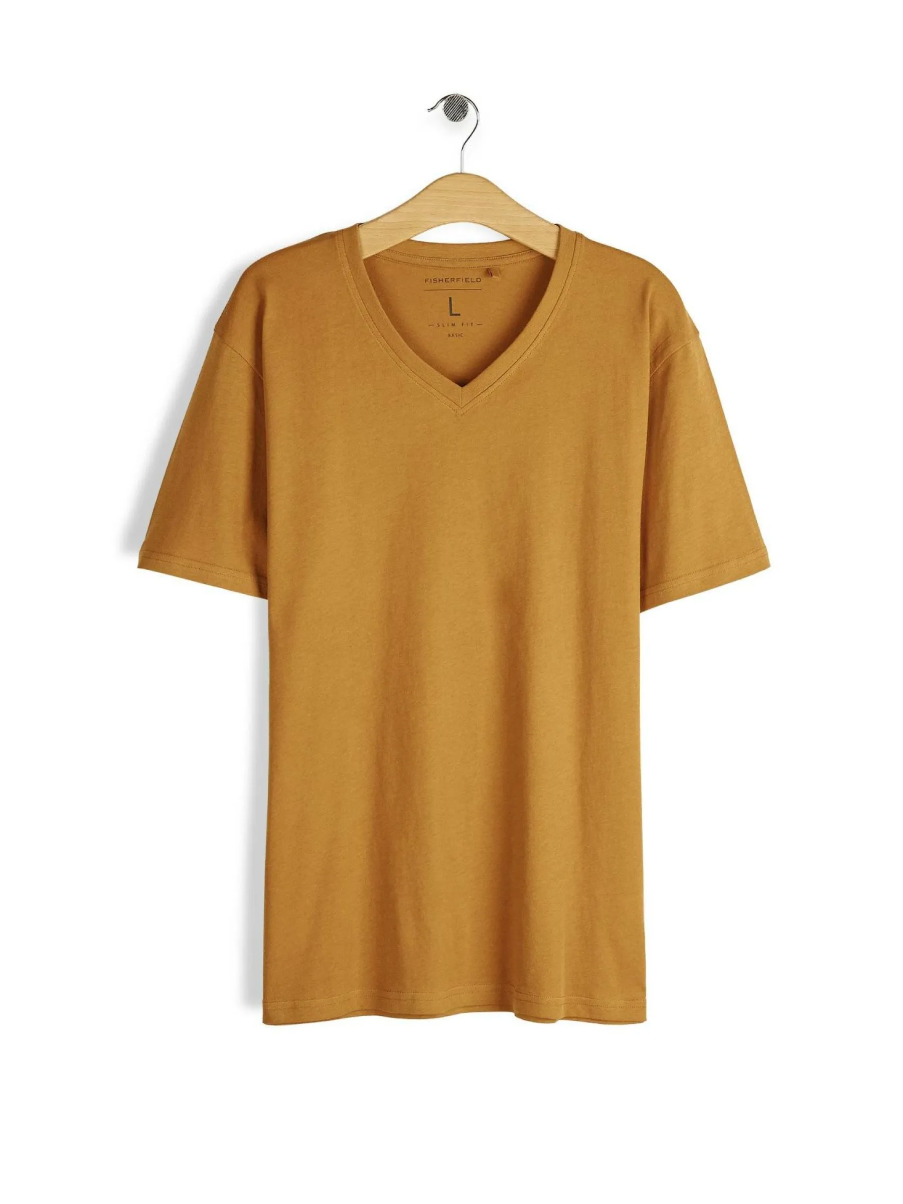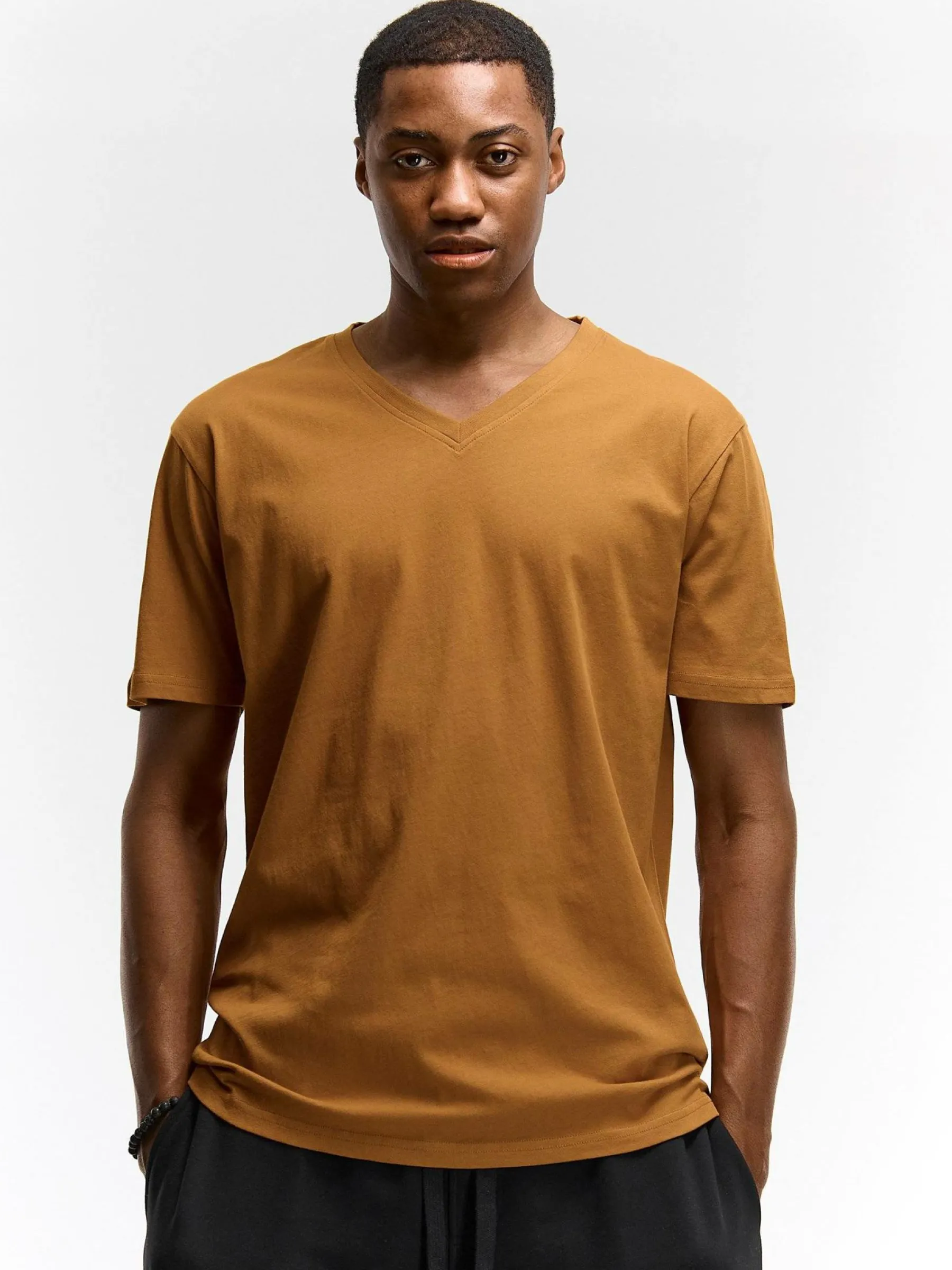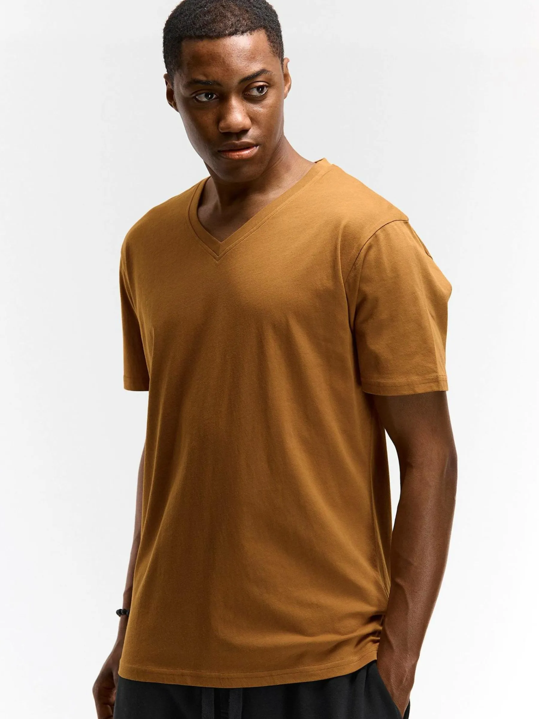 Kolor: brązowyKrój: regularTyp: koszulkaRekaw: krótki rękawPattern style: pojedynczy kolorDetal: v-neck, nad głową…