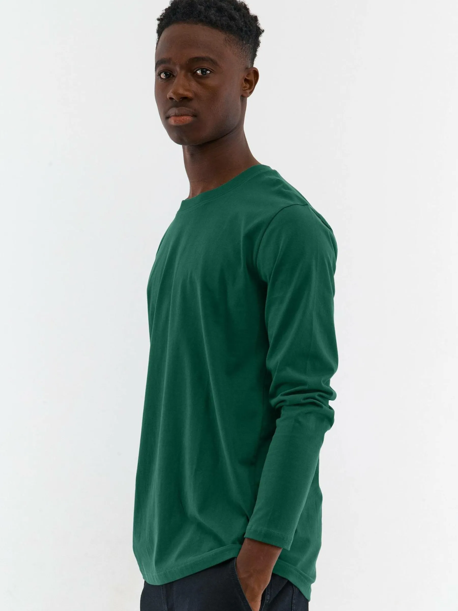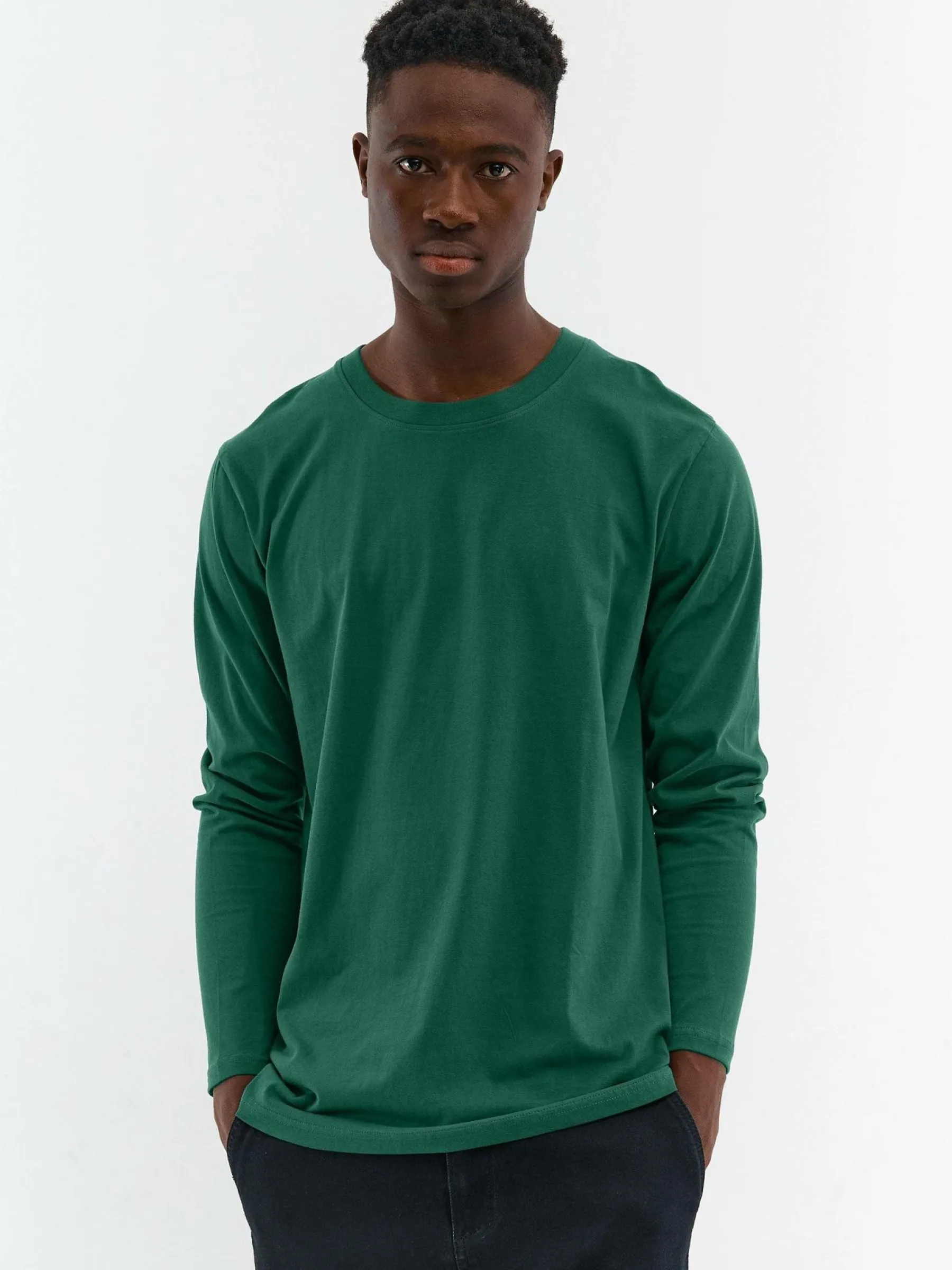 Kolor: zielonyKrój: slimTyp: koszulkaRekaw: długi rękawPattern style: pojedynczy kolorDetal: nad głowąMateriał: ba…
