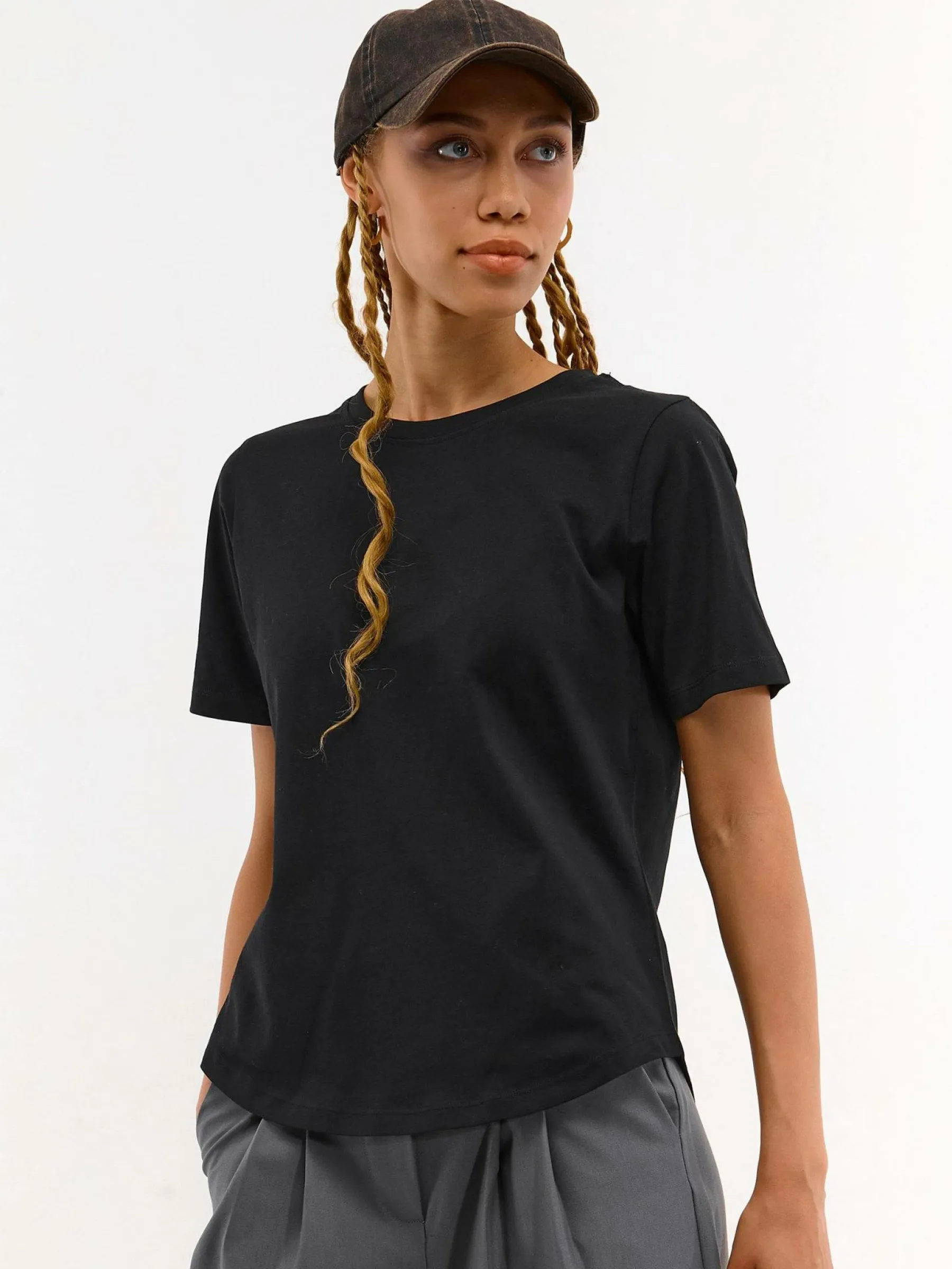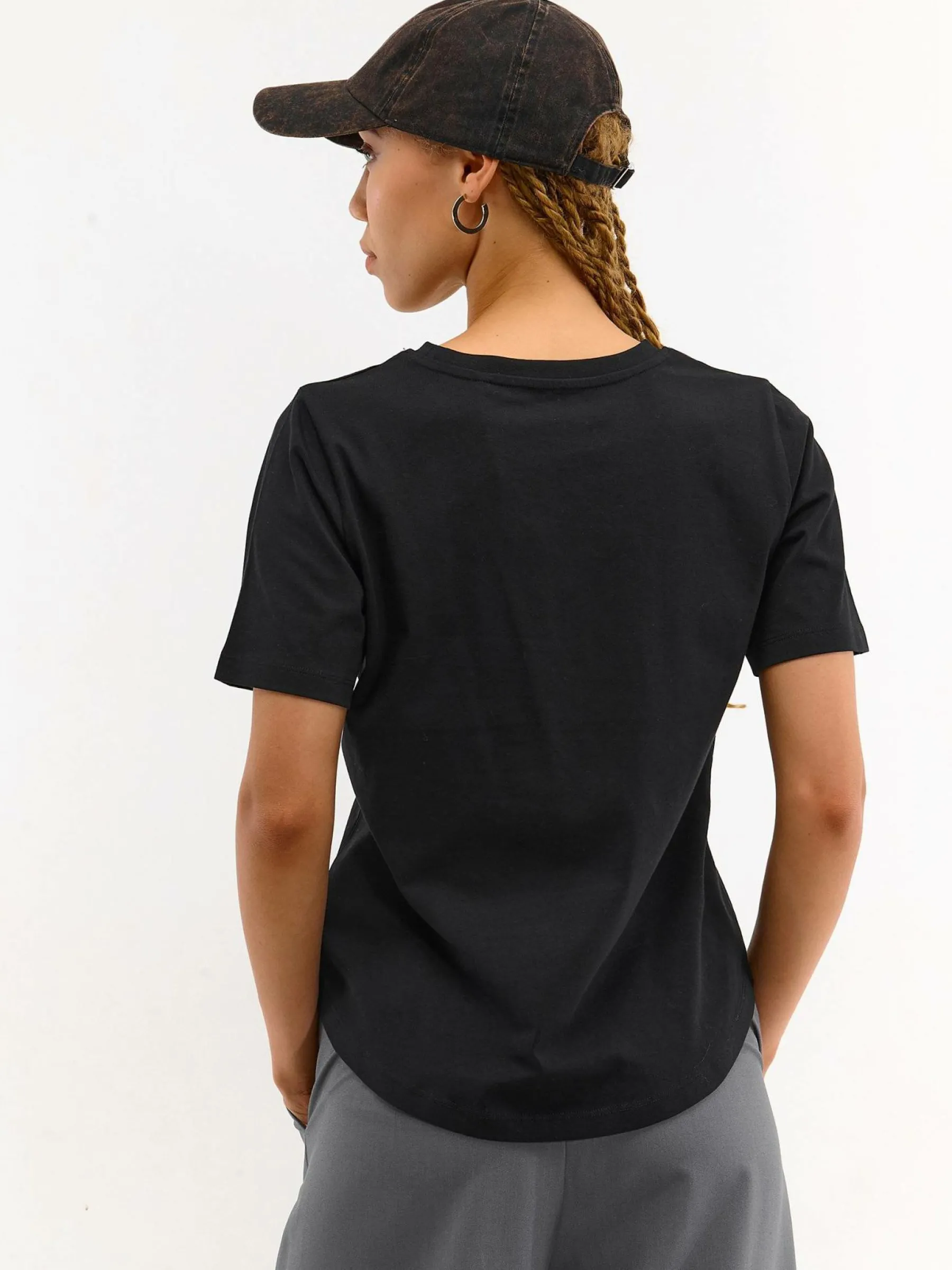 Kolor: czarnyKrój: regularTyp: koszulkaRekaw: krótki rękawDługość: krótkiPattern style: pojedynczy kolorDetal: na…