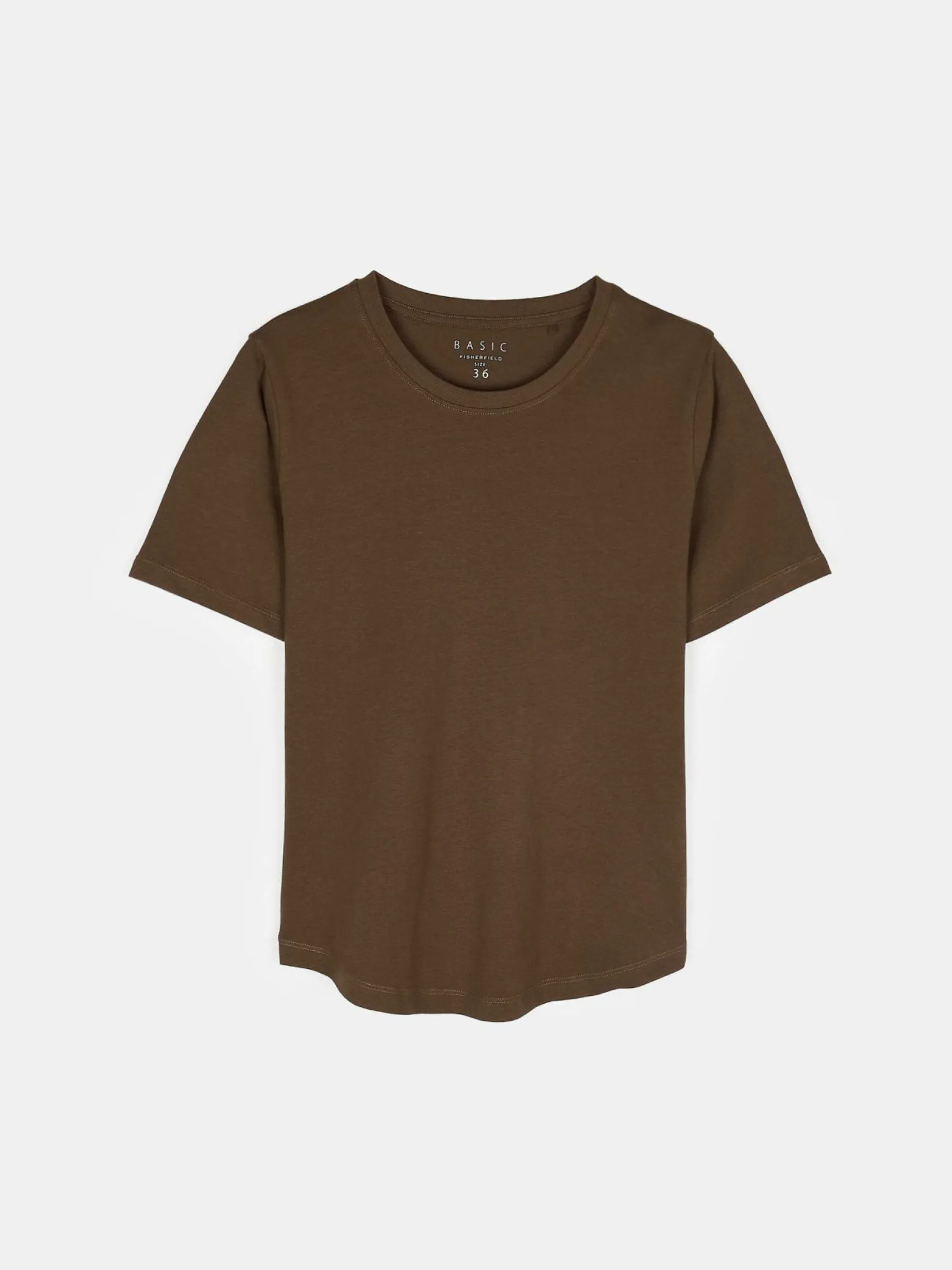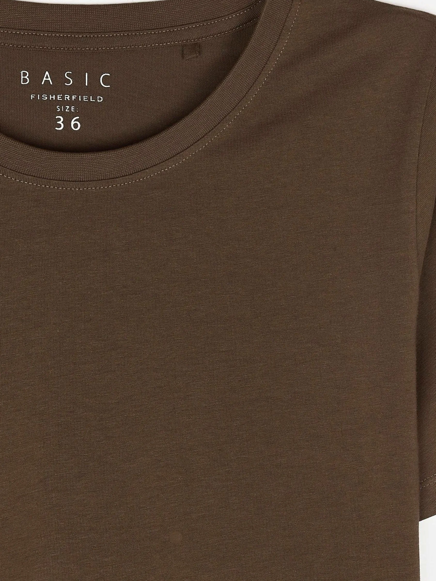 Kolor: brązowyKrój: regularTyp: koszulkaRekaw: krótki rękawDługość: krótkiPattern style: pojedynczy kolorDetal: …
