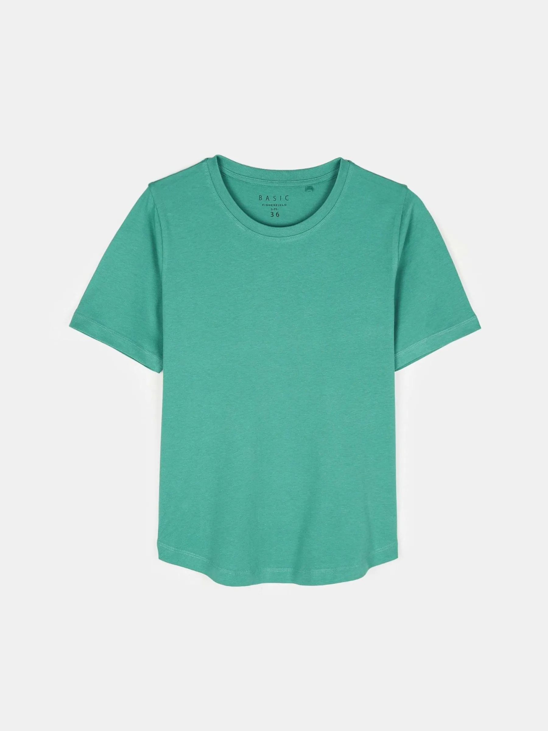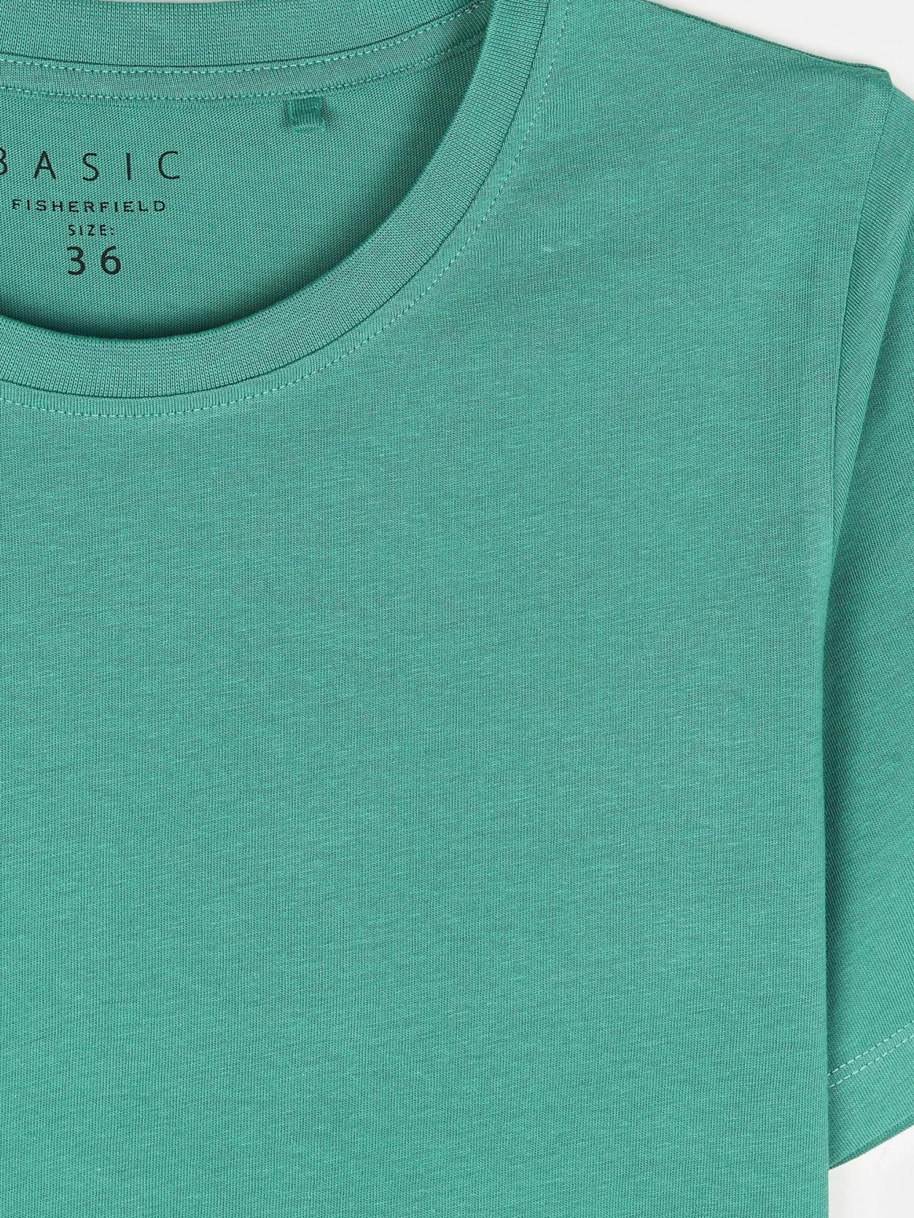 Kolor: zielonyKrój: regularTyp: koszulkaRekaw: krótki rękawDługość: krótkiPattern style: pojedynczy kolorDetal: n…
