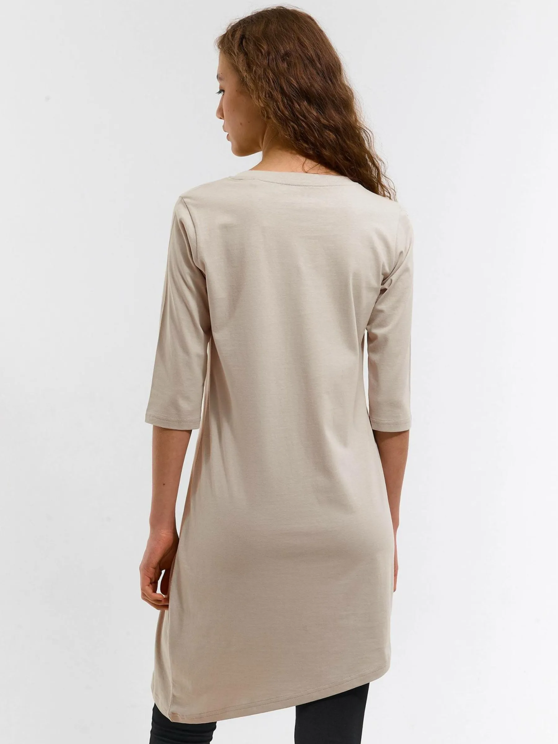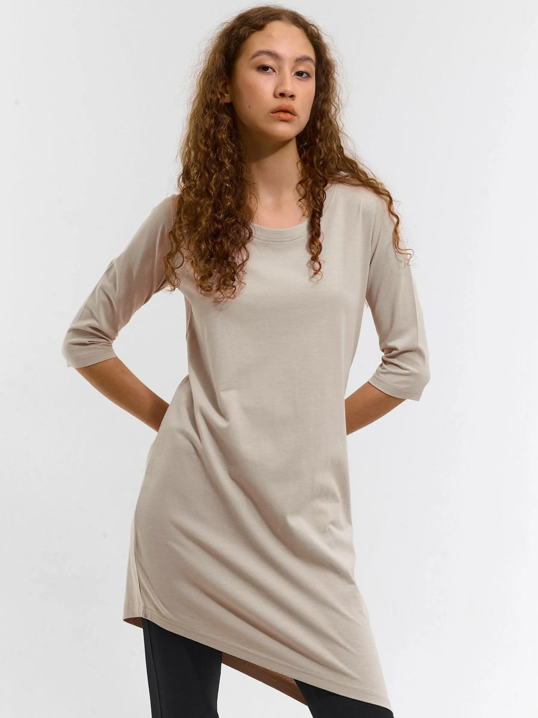 Kolor: szaryKrój: asymetryczneTyp: koszulkaRekaw: rękaw 3/4Długość: dlugiePattern style: pojedynczy kolorDetal: nad…
