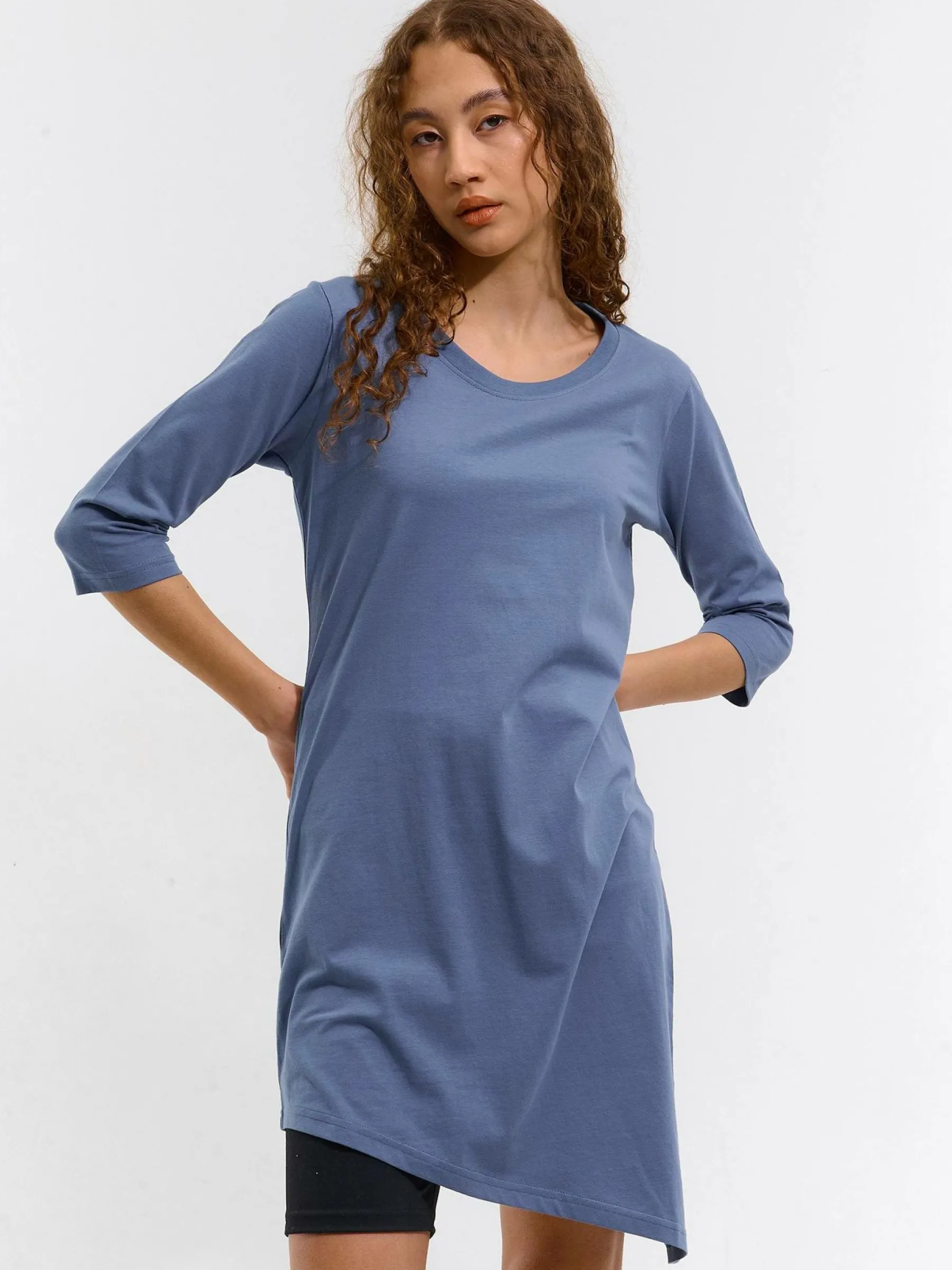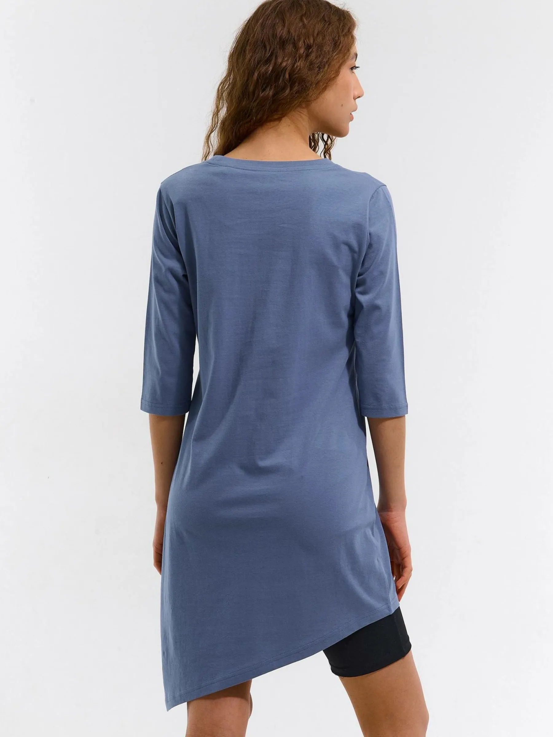 Kolor: niebieskiKrój: asymetryczneTyp: koszulkaRekaw: rękaw 3/4Długość: dlugiePattern style: pojedynczy kolorDetal:…
