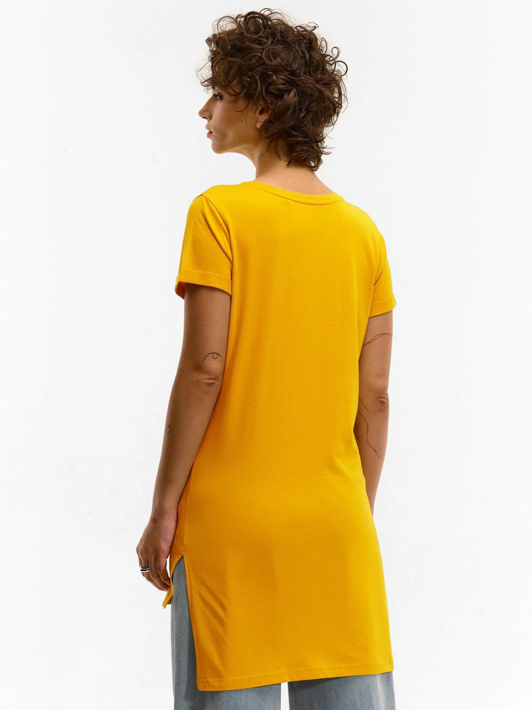 Kolor: żółtyKrój: regular, asymetryczneTyp: koszulkaRekaw: krótki rękawDługość: dlugiePattern style: pojedynczy…