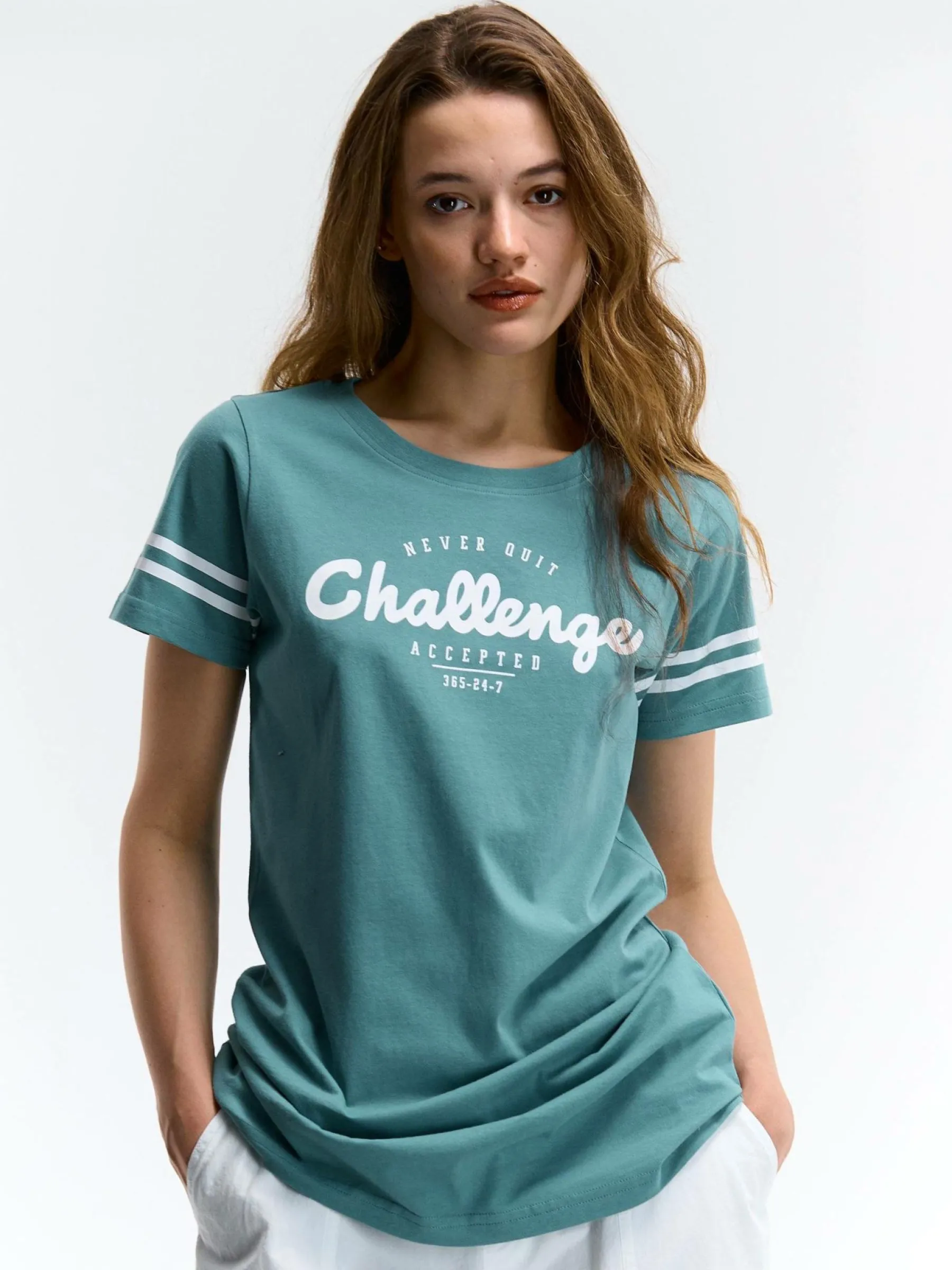 Kolor: zielonyKrój: regularTyp: koszulkaRekaw: krótki rękawDługość: dlugiePattern style: z nadrukiemDetal: nad gł…