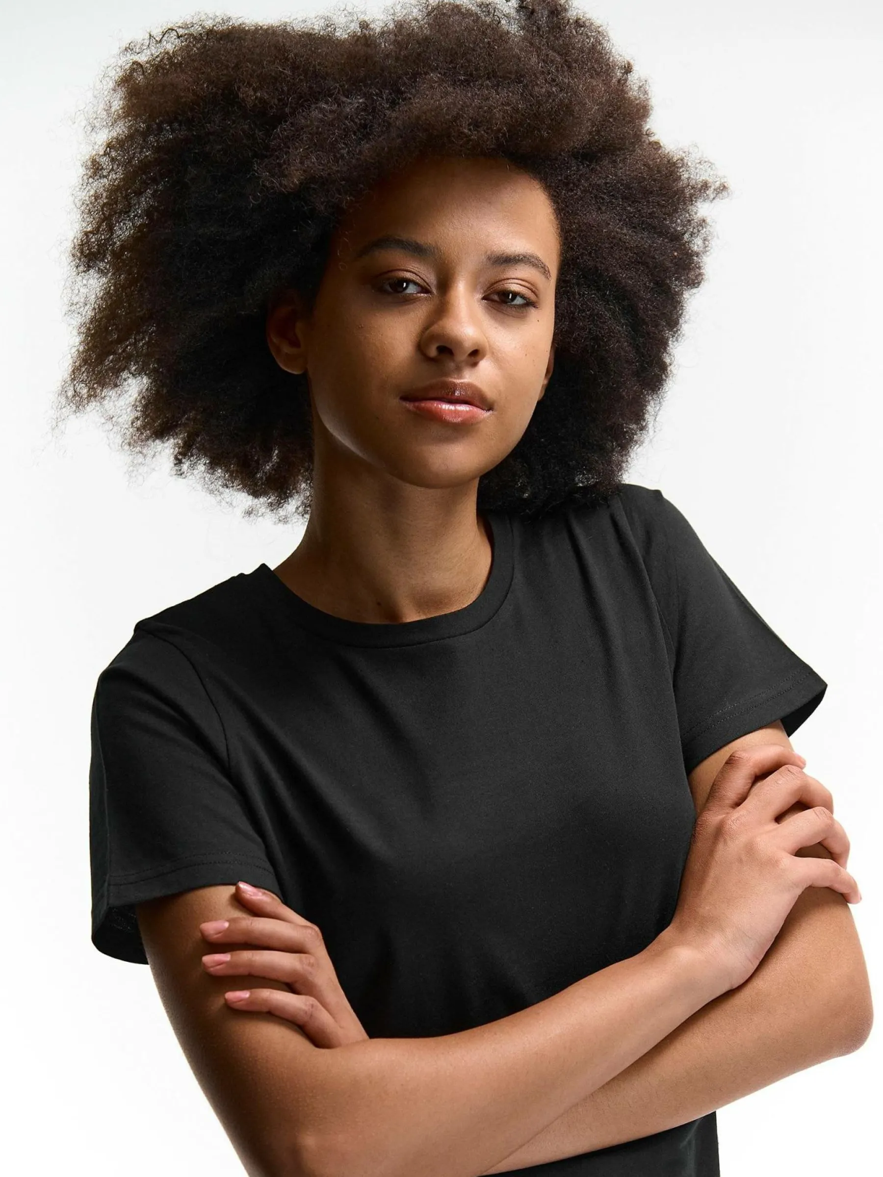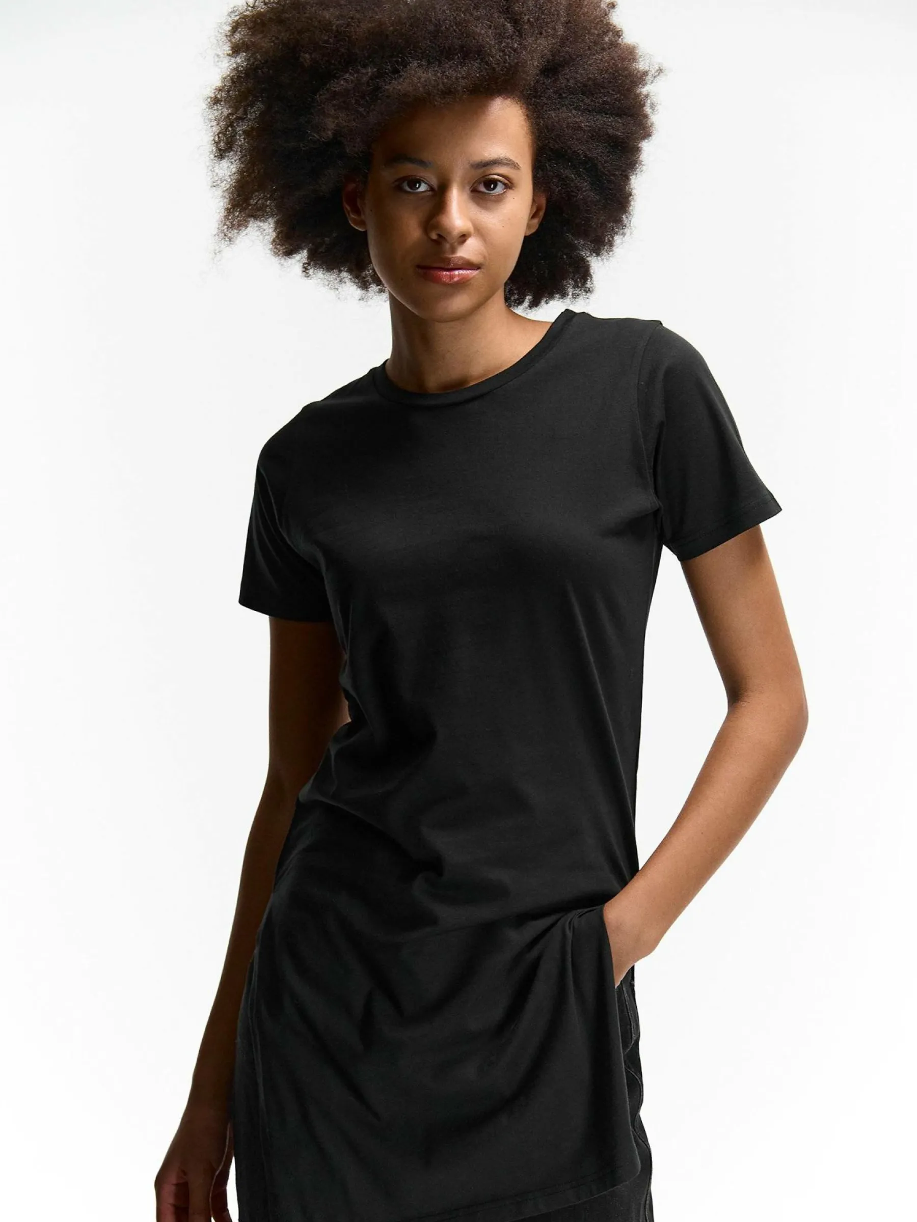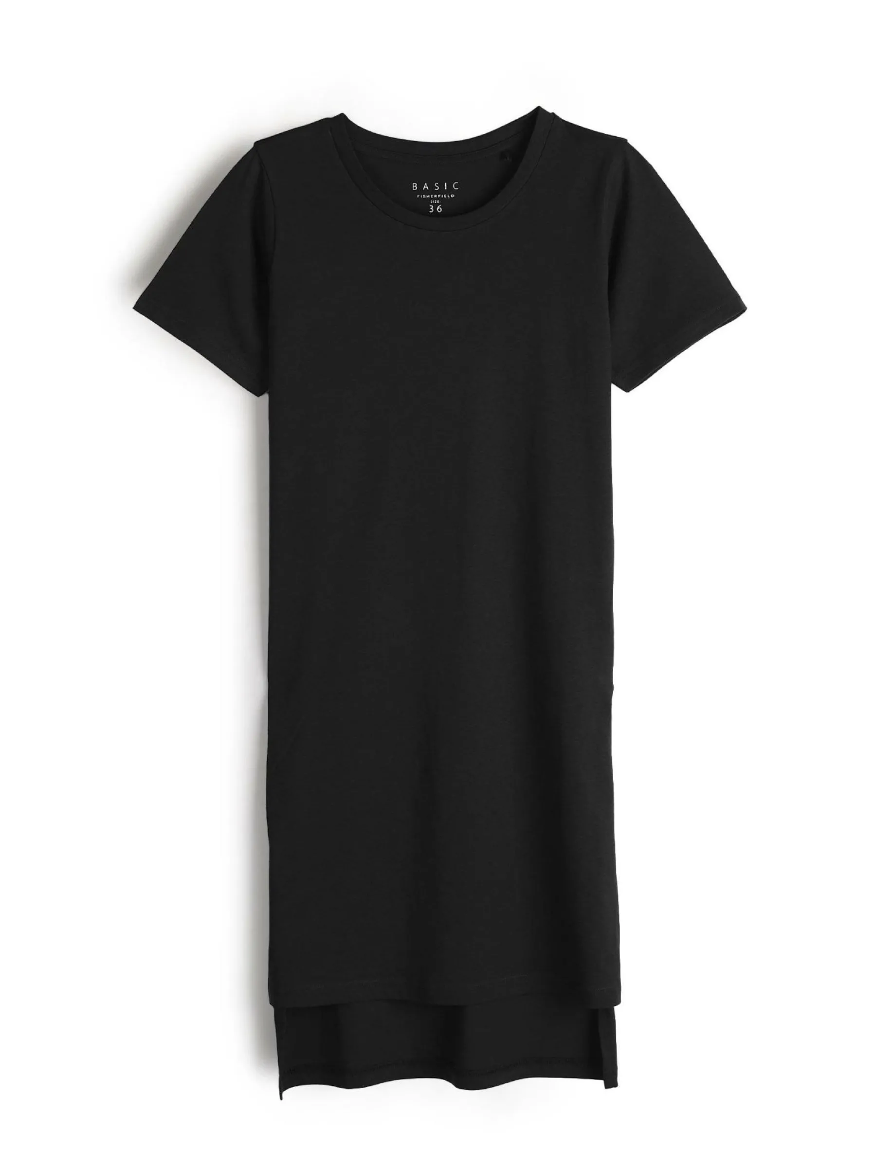 Kolor: czarnyKrój: regularTyp: koszulkaRekaw: krótki rękawDługość: dlugiePattern style: pojedynczy kolorDetal: nad…