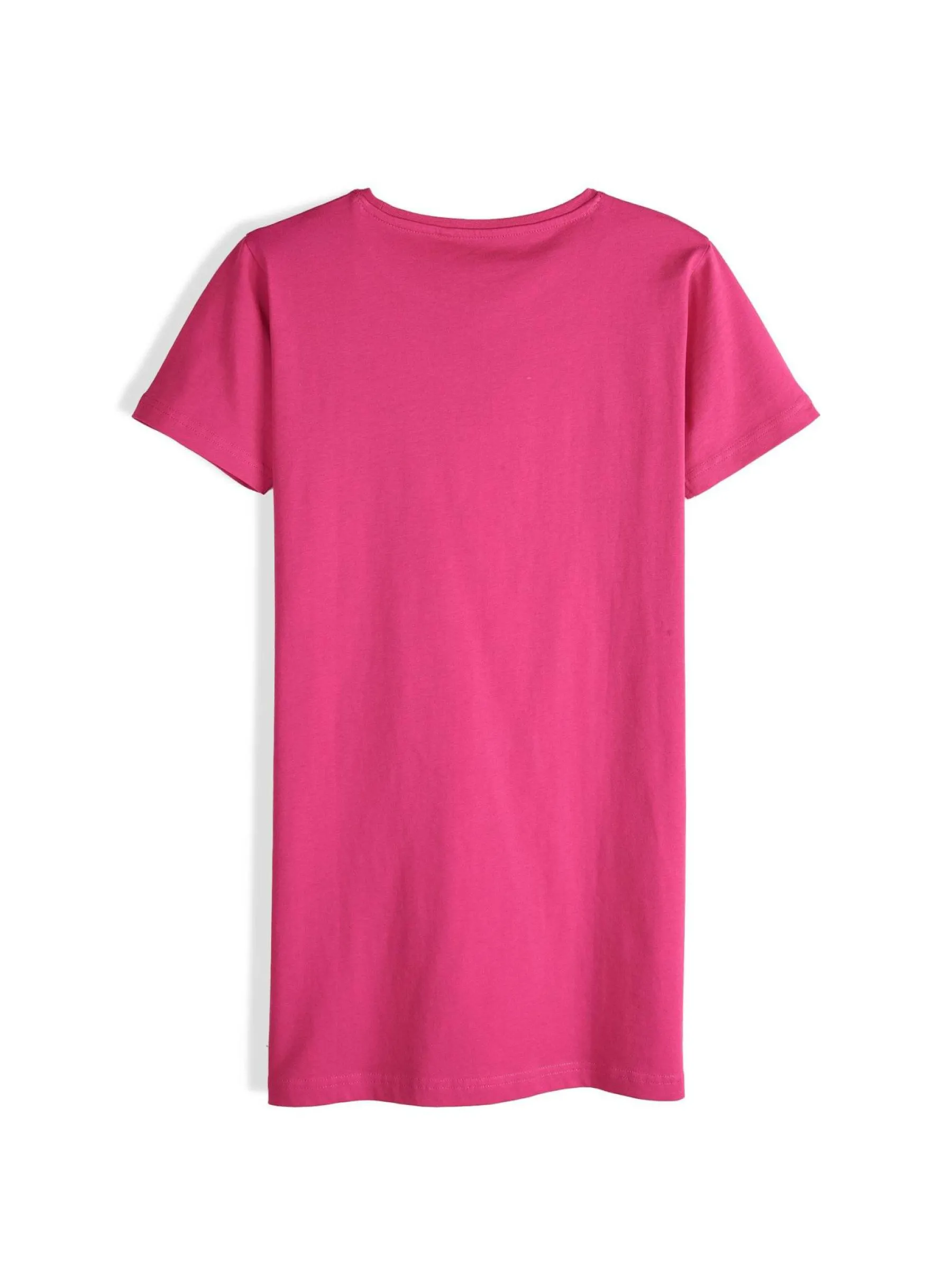 Kolor: różowyKrój: regularTyp: koszulkaRekaw: krótki rękawDługość: dlugiePattern style: pojedynczy kolorDetal: n…